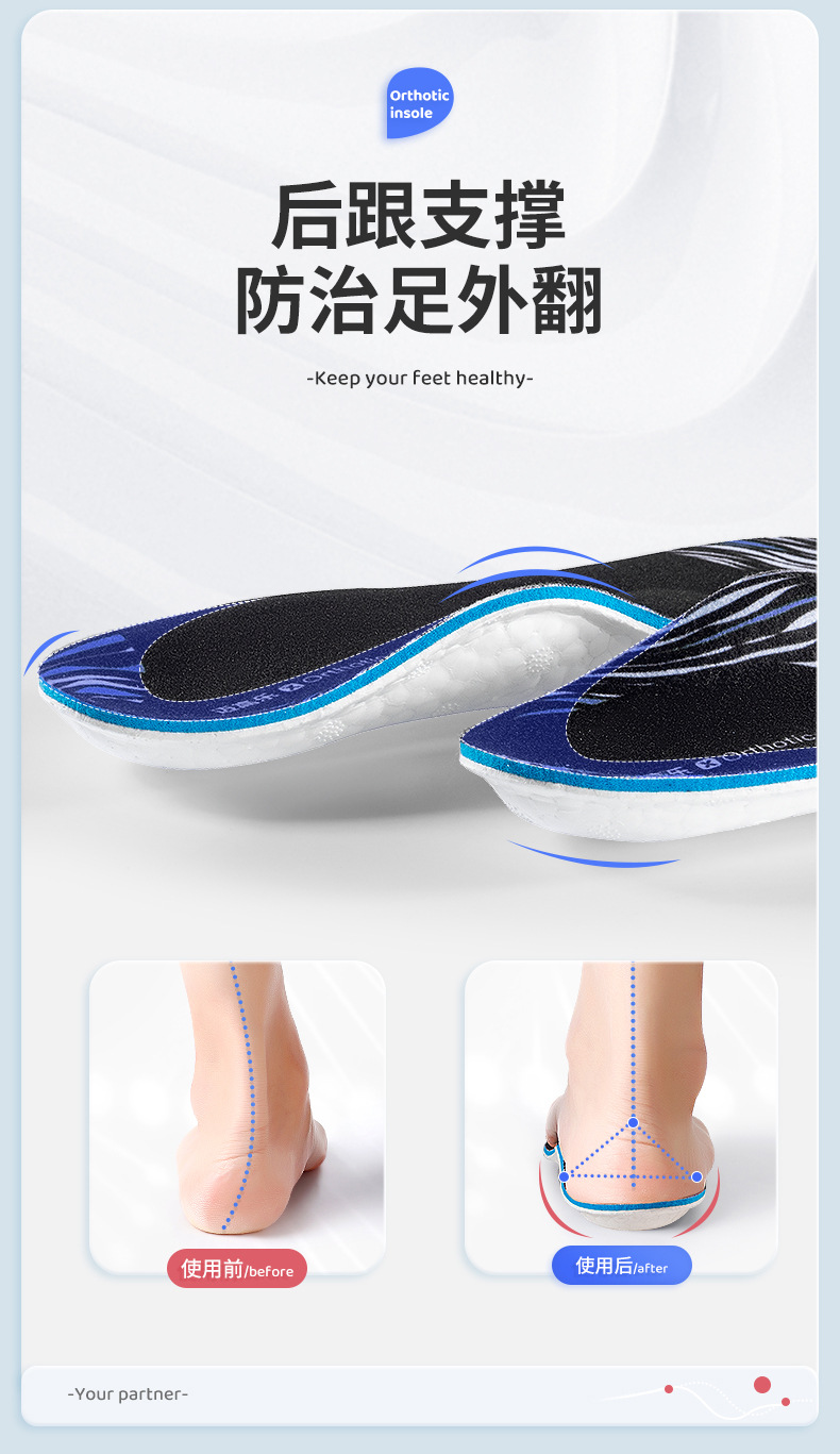 편평한 발 교정 깔창 높은 아치 지원 편평한 발 교정 다리 보조기 송아지 난교스토어 가기