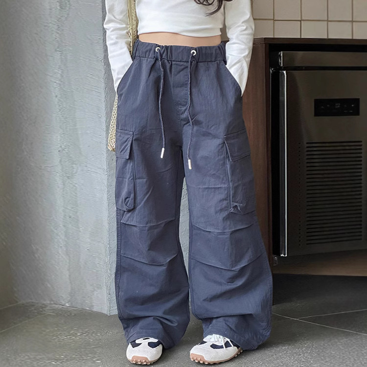 소녀 바지 봄과 가을 2025 새로운 도착 넓은 다리 캐주얼 바지 어린 소녀 트렌디 쿨 올 매치 크레인 바지스토어 가기