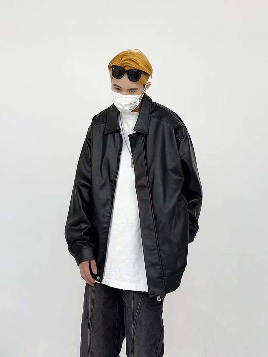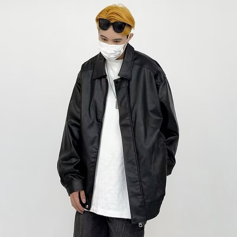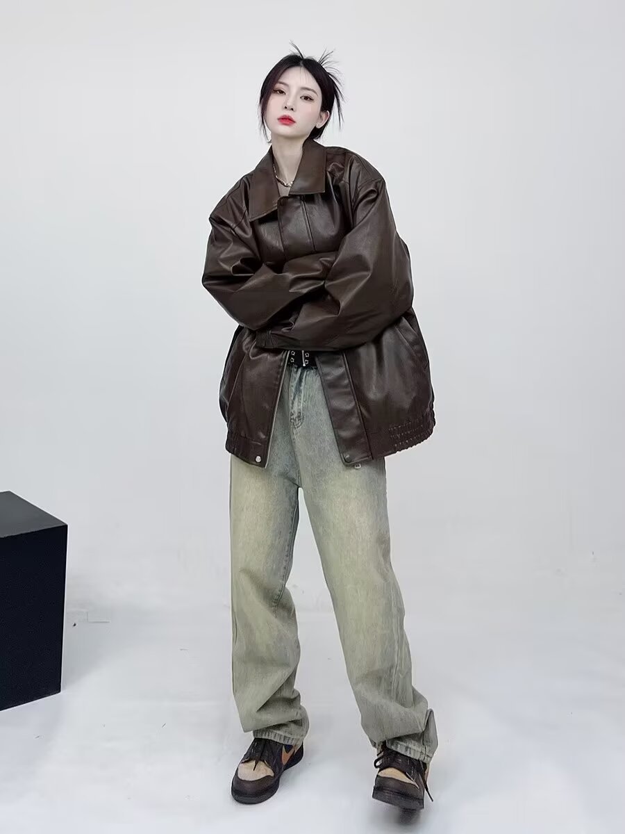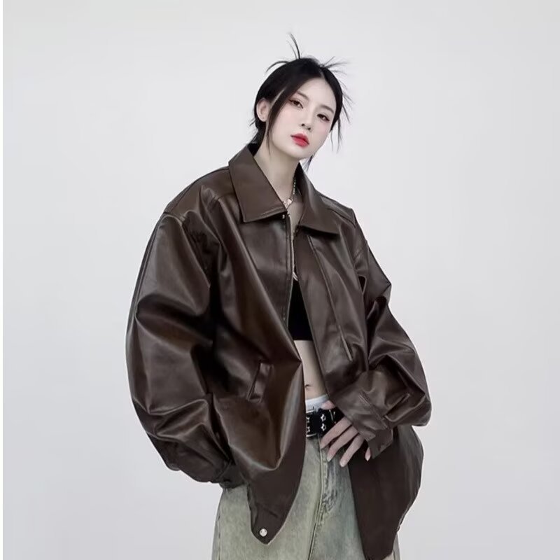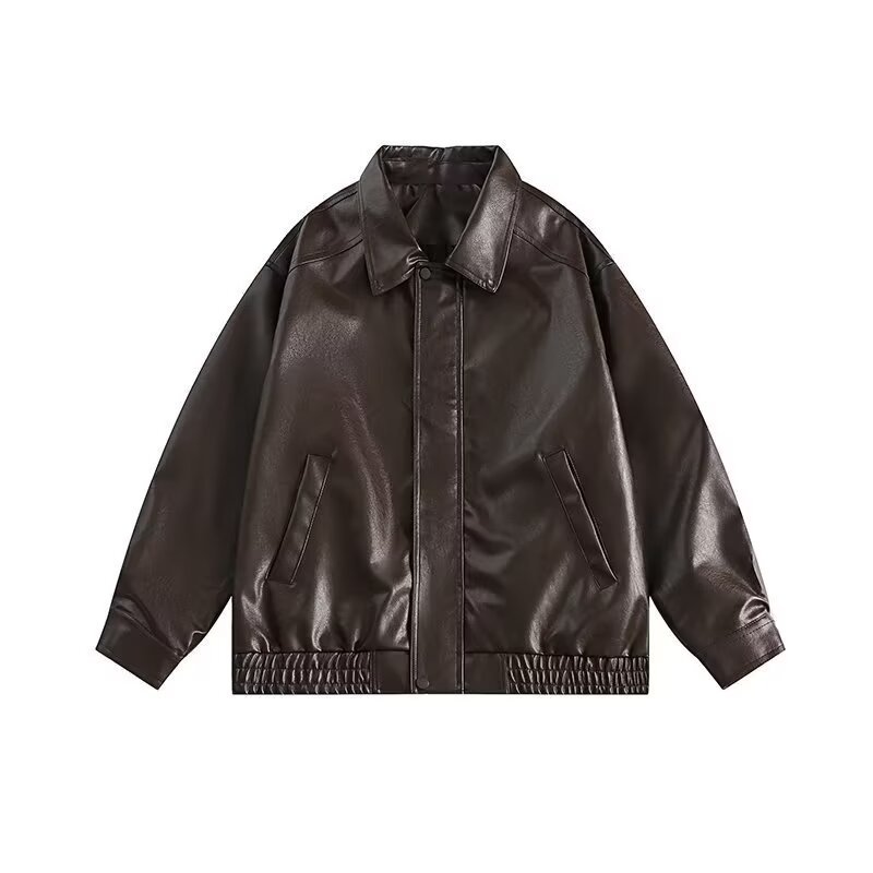 남성과 여성을 위한 레트로 브라운 가죽 자켓 2024 봄, 가을 PU 루즈 가죽 자켓 오토바이 자켓 유럽과 미국 스타일의 복고풍 스타일스토어 가기