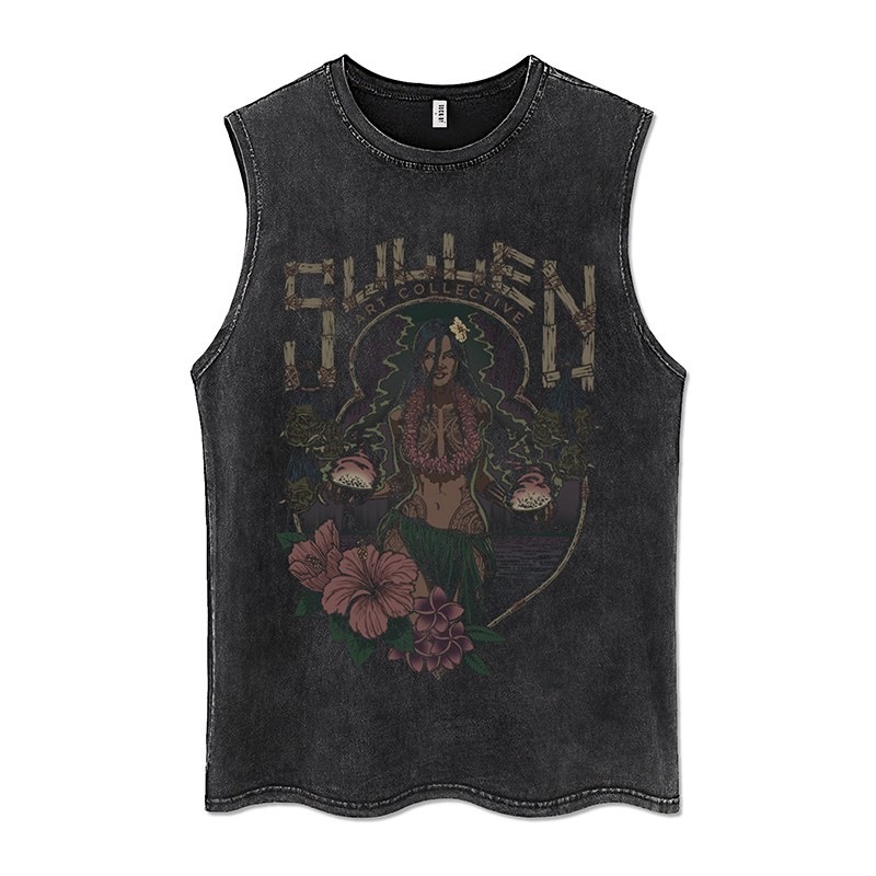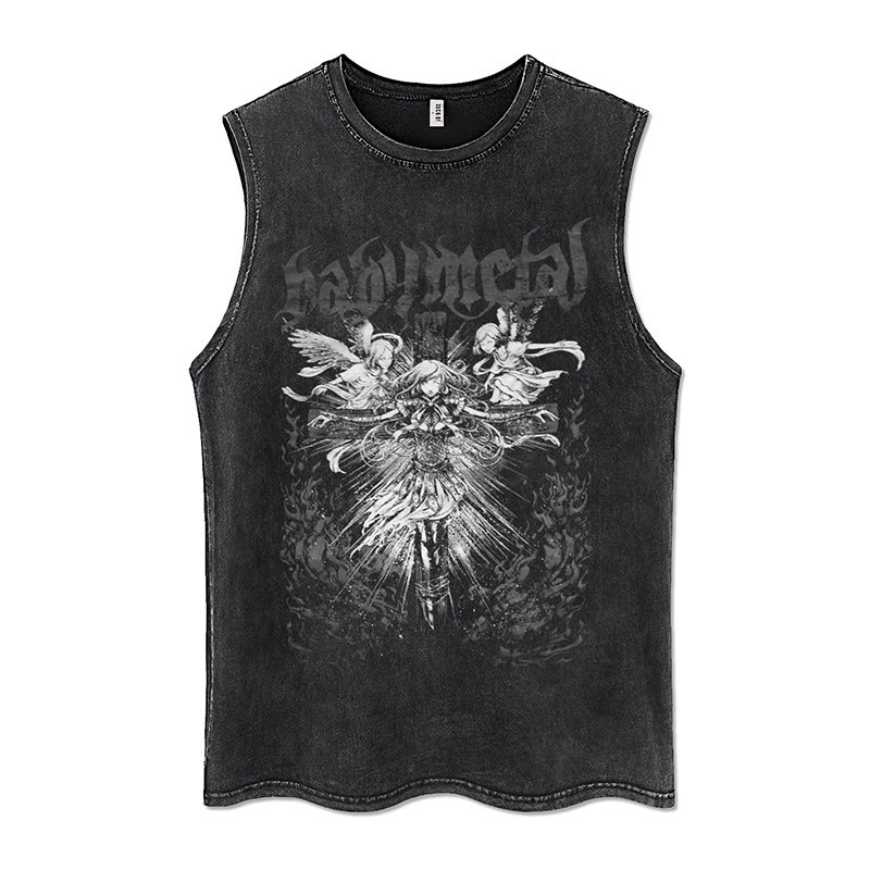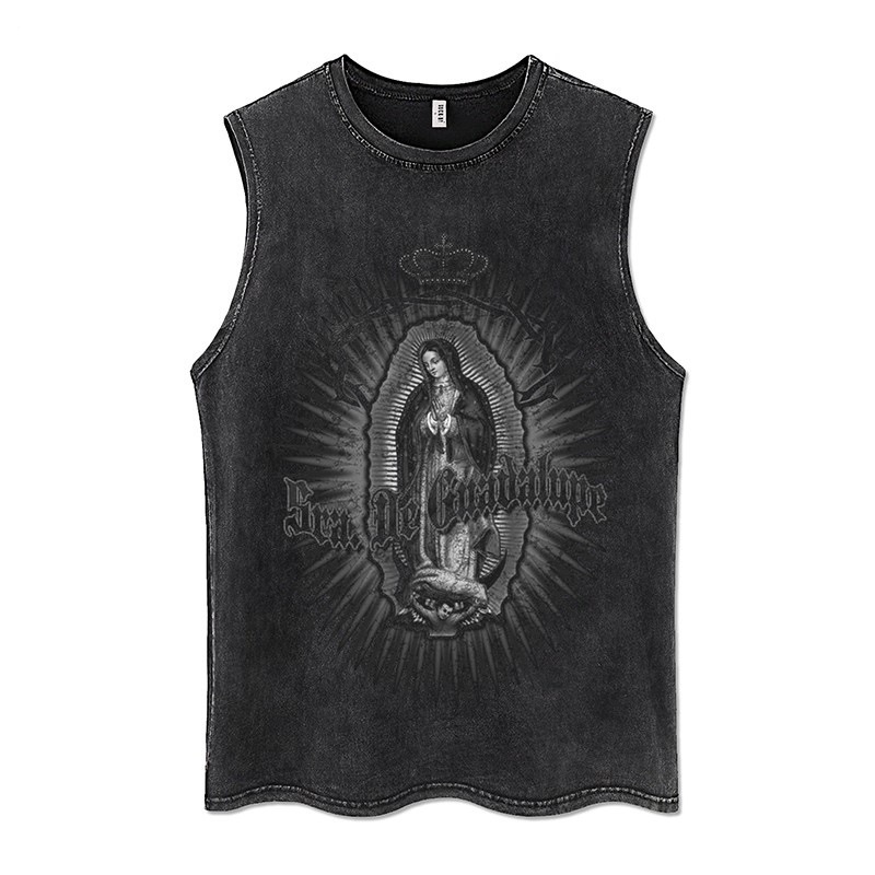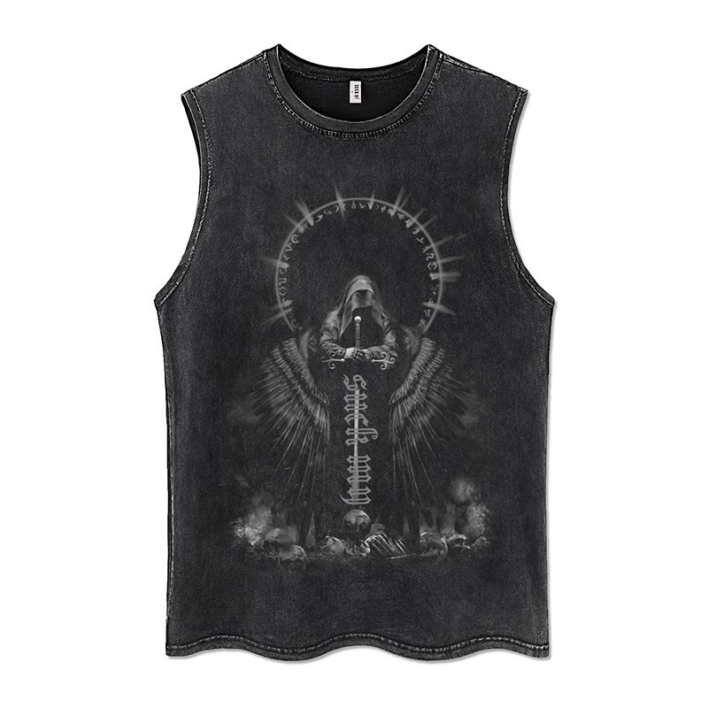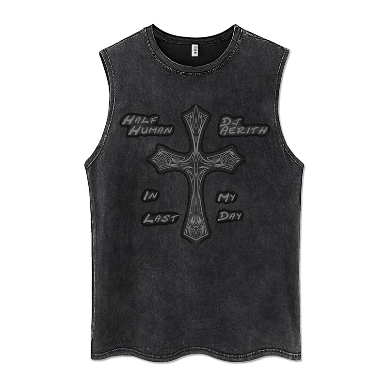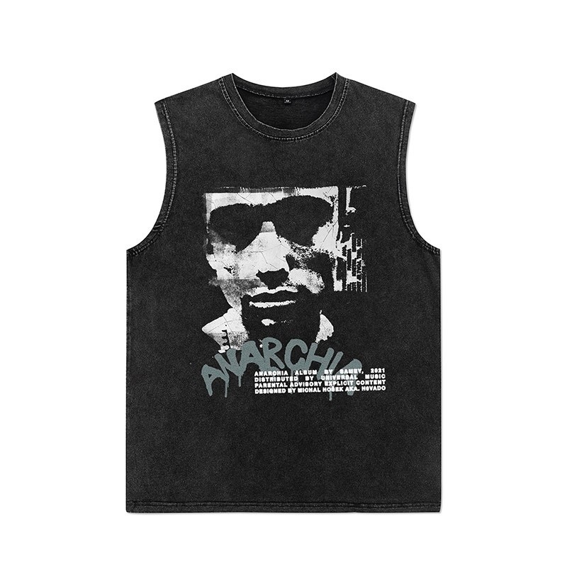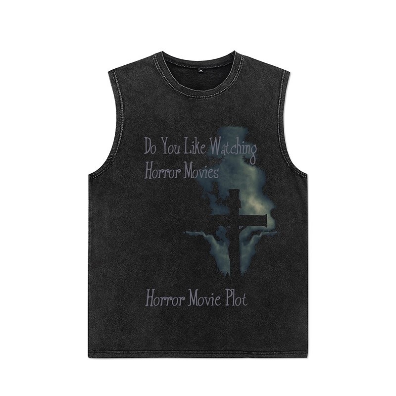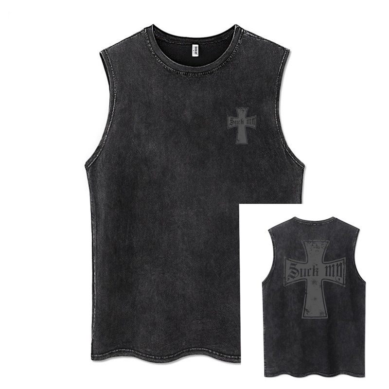 유럽과 미국의 다크 Hiphop은 오래된 민소매 티셔츠 남자 힙합 아메리칸 Ins 트렌디 루즈 스포츠 조끼