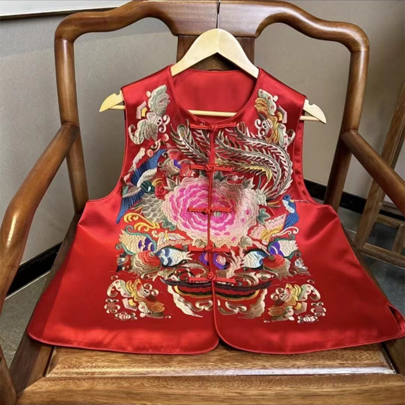 중국 자수 중공업 골든 피닉스 조끼 여성 2025 년 봄과 가을 새로운 우아한 조끼 버클 내셔널 스타일 레트로 웨이스트 코트스토어 가기