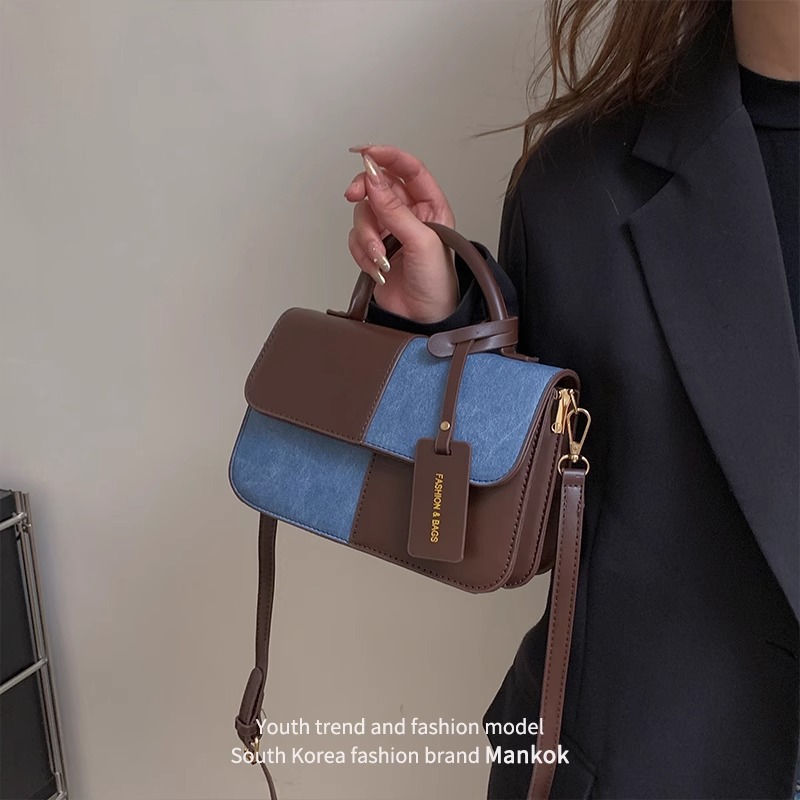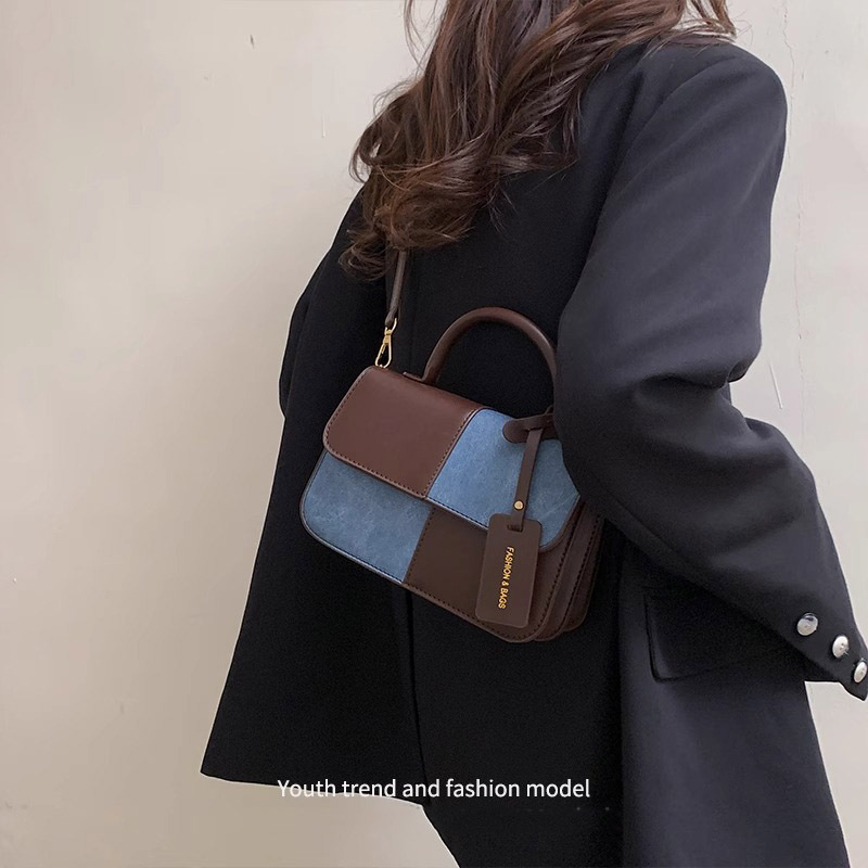 하이 엔드 센스 백 여자 2025 새로운 도착 패셔블 올 매치 숄더 크로스 바디 백 캐주얼 콘트라스트 컬러 스티칭 휴대용 소형 스퀘어 백스토어 가기