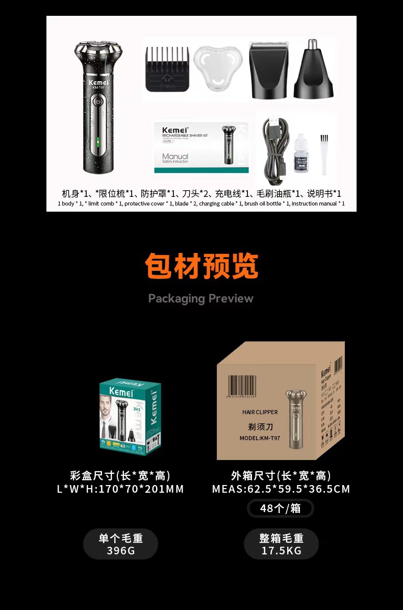 코미 KM-T97 다기능 휴대용 세탁기 전기 면도기 왕복 플로팅 헤드 빠른 충전 면도기