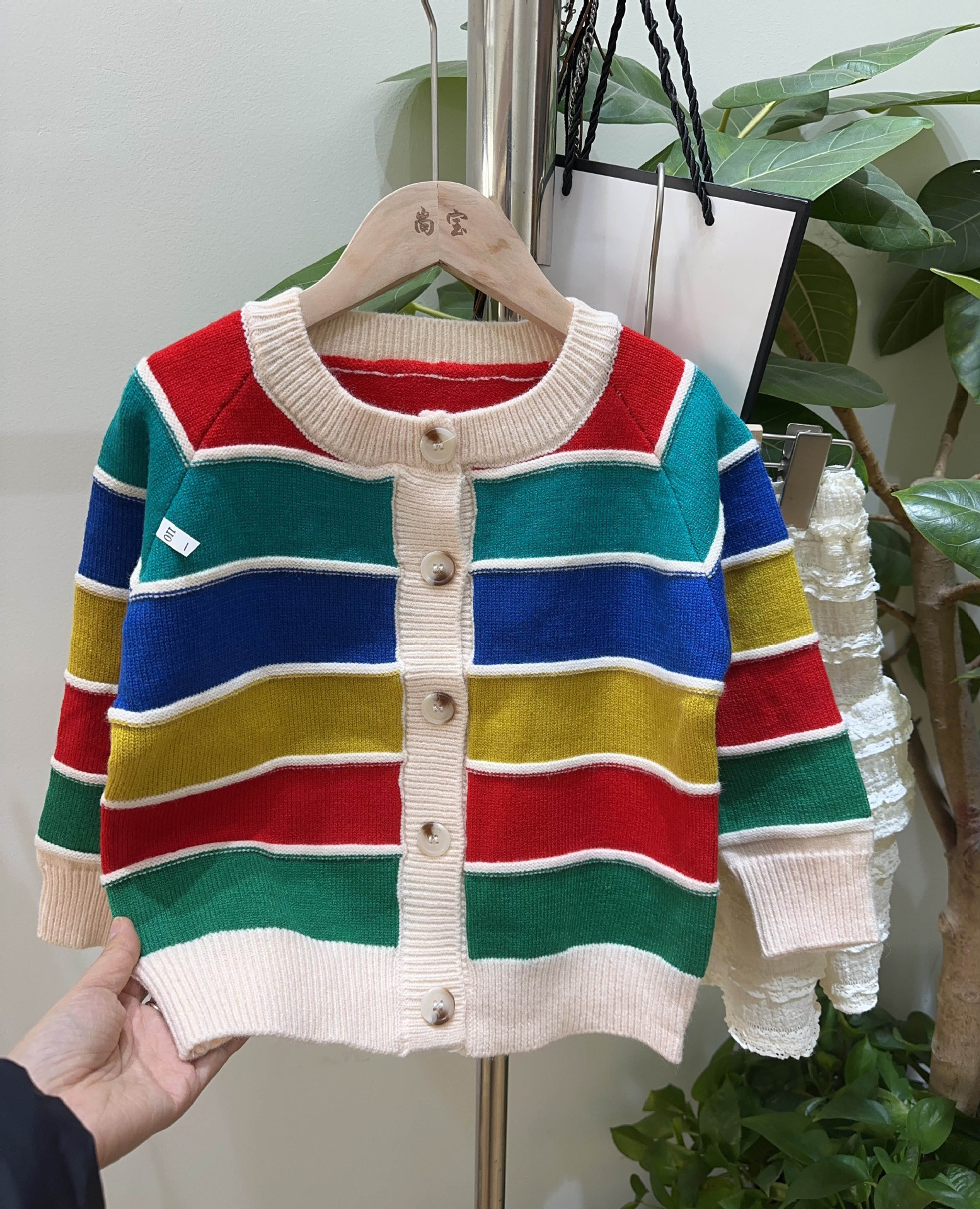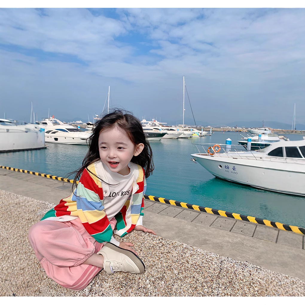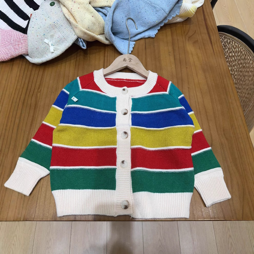 소녀의 니트 카디건 봄과 가을 2025 새로운 어린이 서양식 탑 소녀의 세련된 가을과 겨울 무지개 스웨터 코트스토어 가기