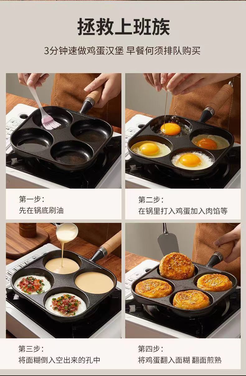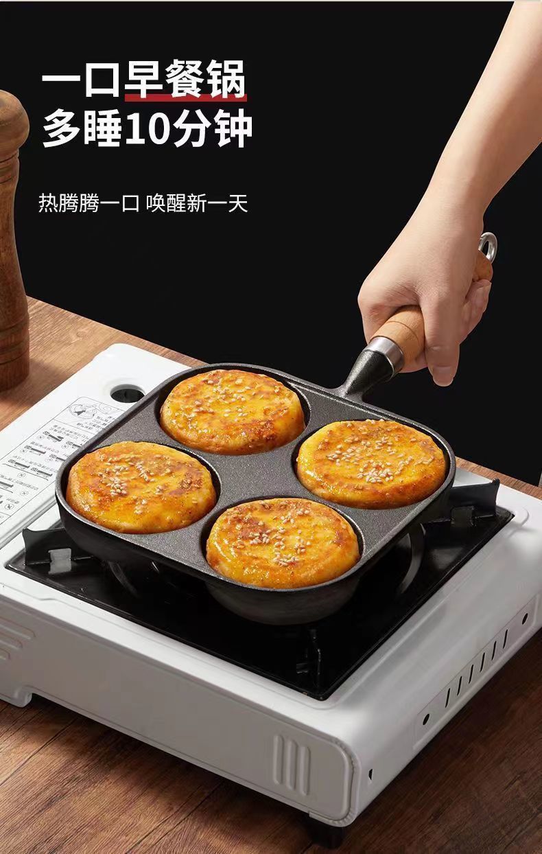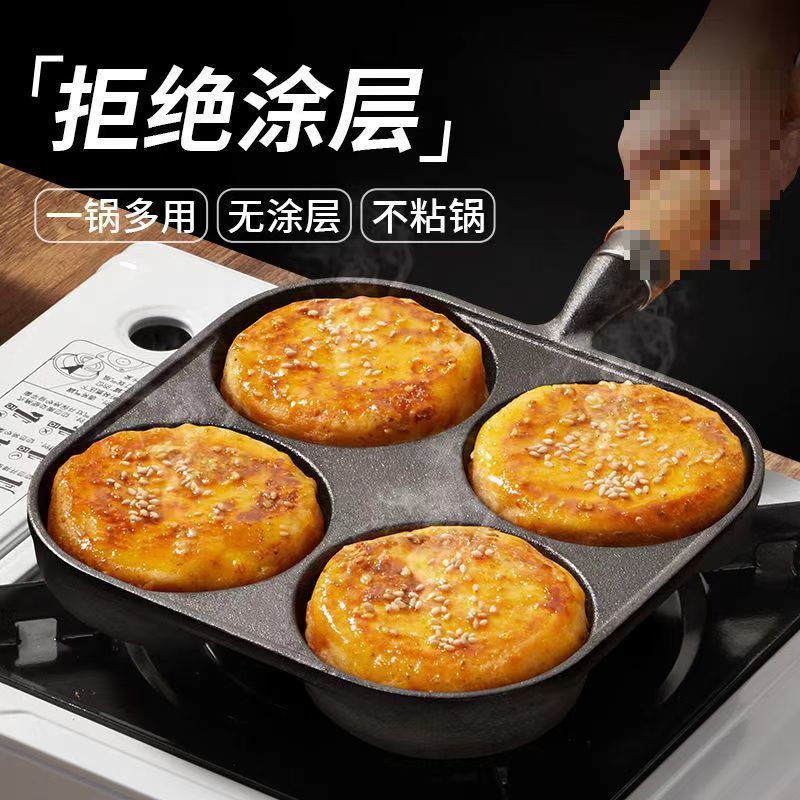 주철 4 홀 튀긴 계란 팬 계란 햄버거 팬 코팅되지 않은 계란 인공물 계란 만두 팬 비 스틱 팬 프라이팬스토어 가기
