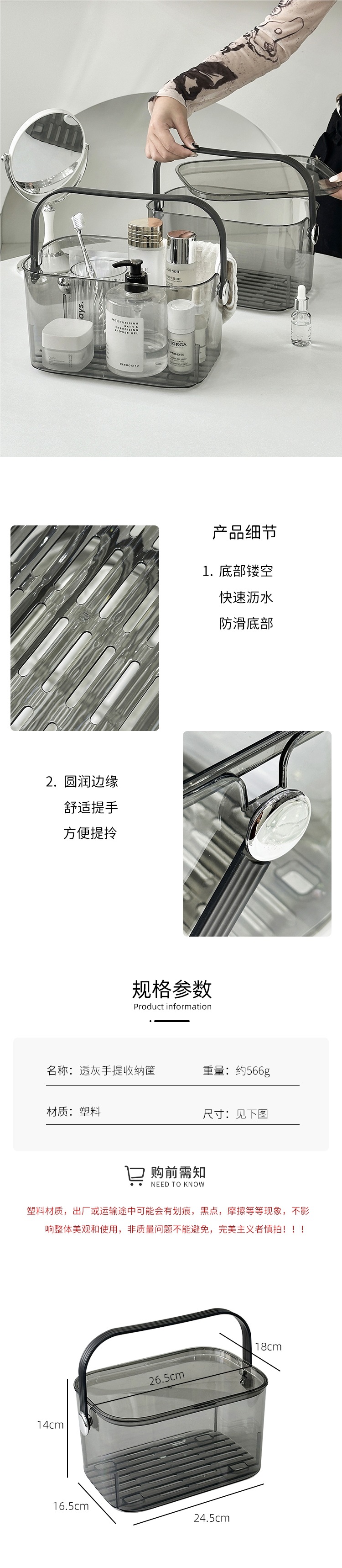 • 투명한 회색 휴대용 목욕 바구니 2개, 두꺼운 소재