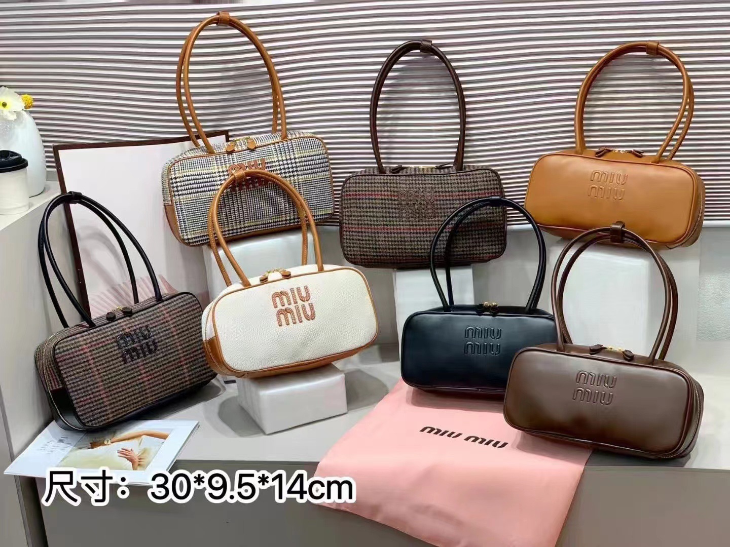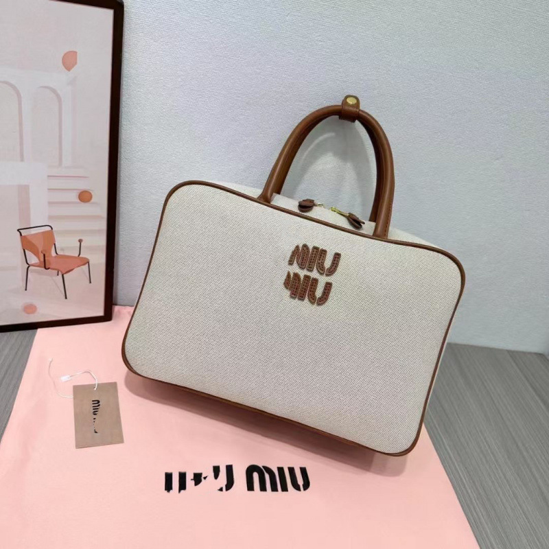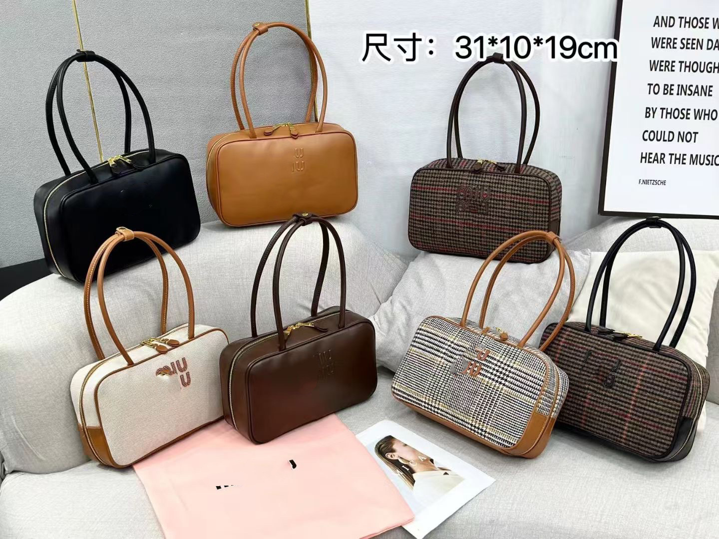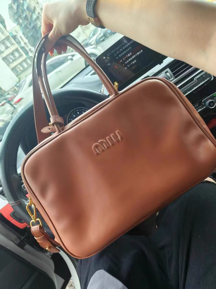 2024 새로운 miini Miujia 여성용 가방 보스턴 서류 가방 휴대용 남성과 여성의 같은 스타일 캐주얼 패션 여행 가방