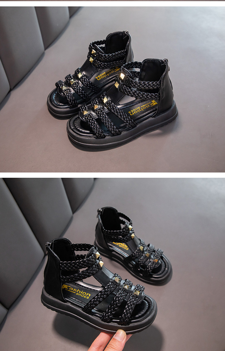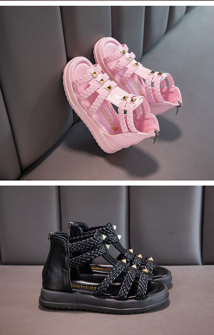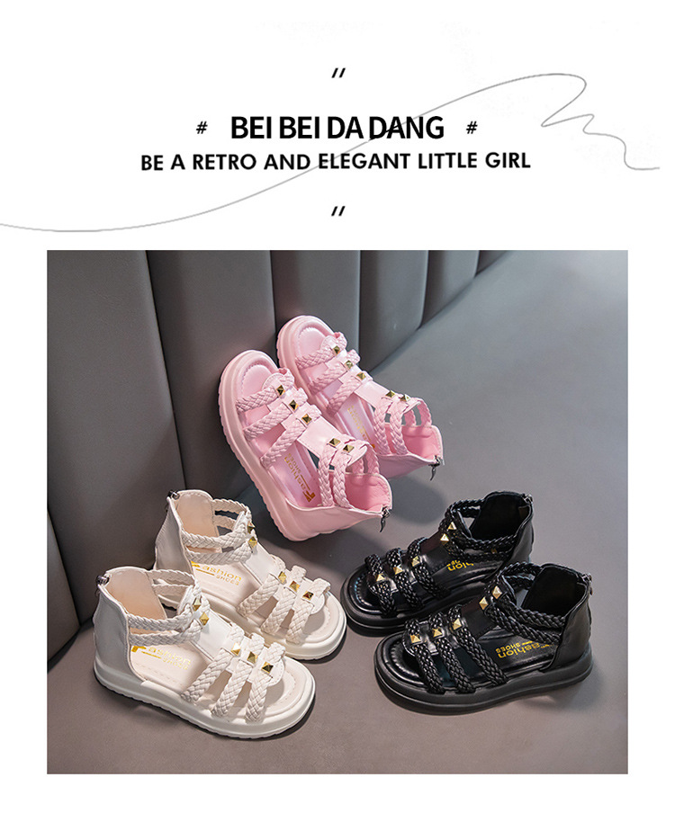 와우 맞춤형 여아 샌들 새로운 패션 오픈토 공주 신발 중대형 어린이용 부드러운 밑창 여자아이 로마 신발스토어 가기