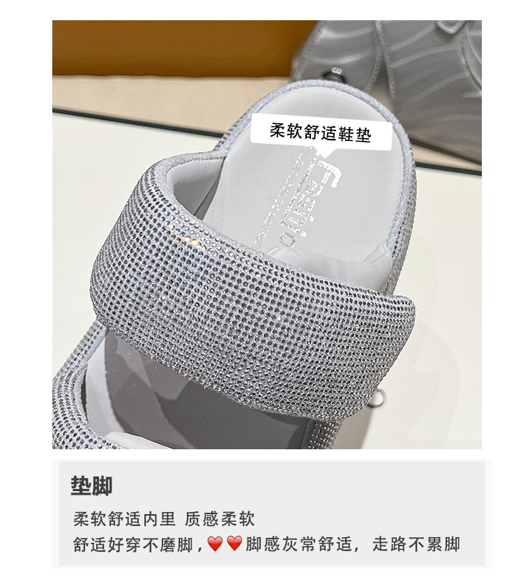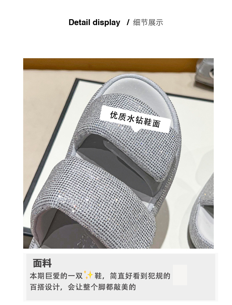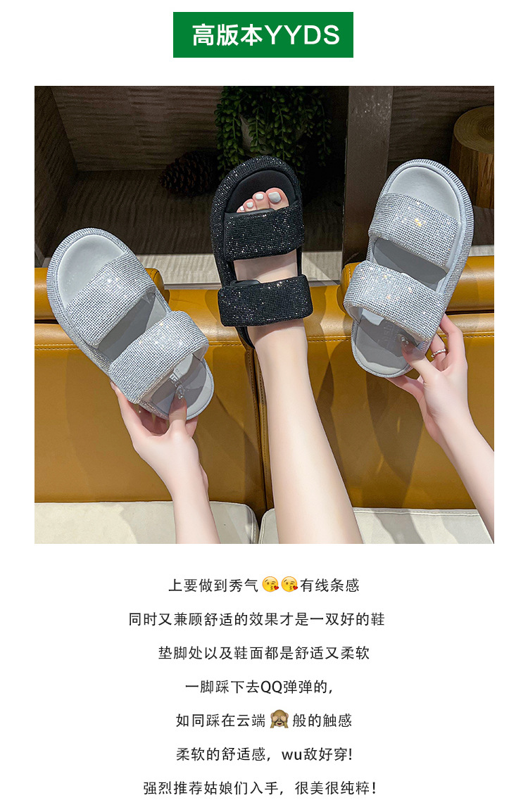 2025 년 여름 새로운 라인 스톤 한 단어 벨크로 두꺼운 바닥 올 매치 고급 오픈 토 비치 샌들 아우터웨어 슬리퍼스토어 가기