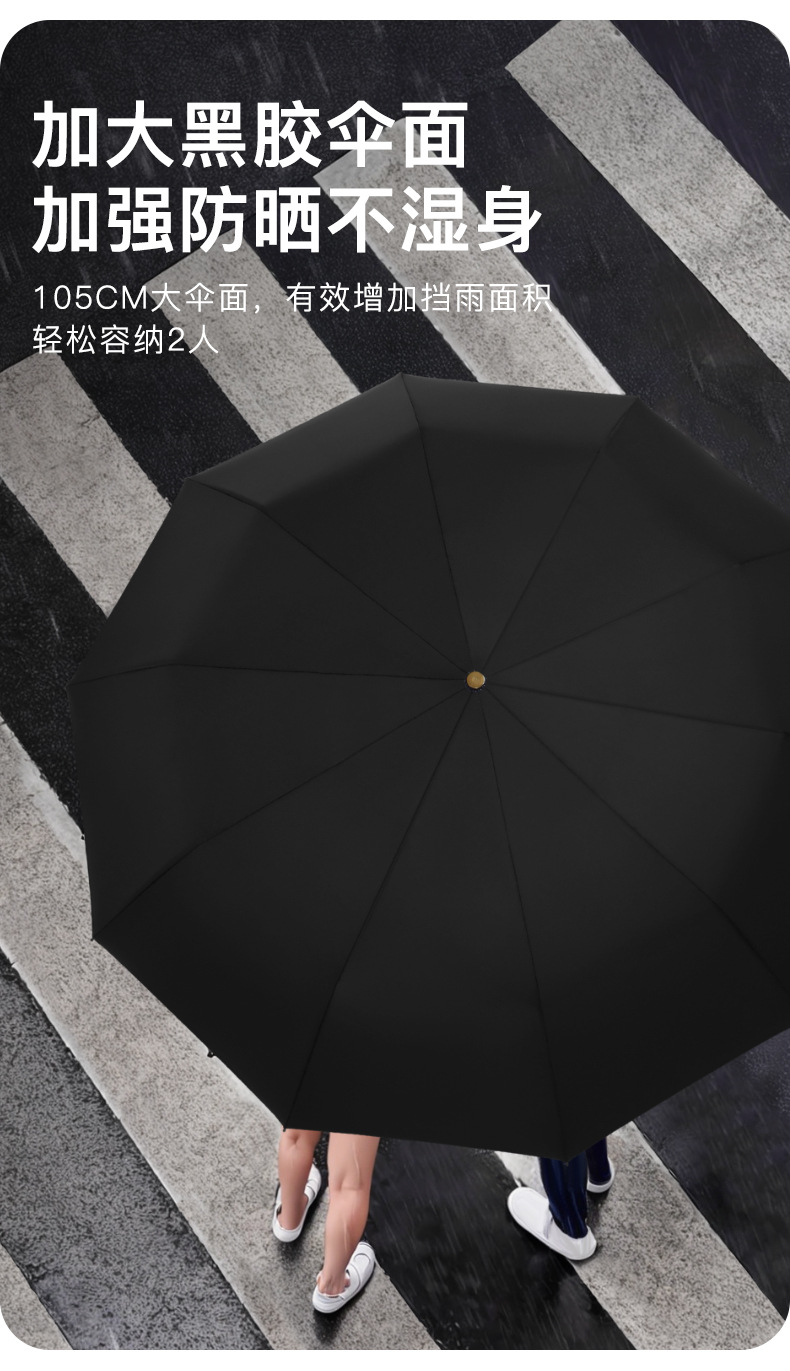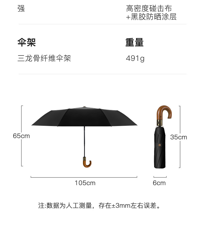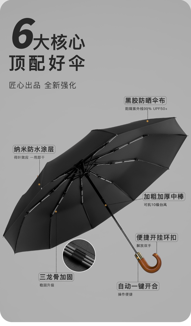 자동 후크 나무 손잡이 우산 사업 남자의 우산 자외선 방지 및 비 방지 이중 목적 접히는 우산 솔리드 우드 3 배 우산스토어 가기