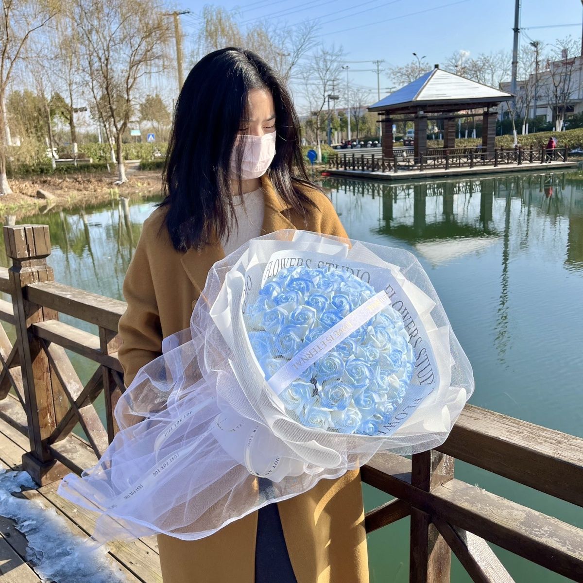 [공장 도매] 꽃다발 아이스 블루 로즈 비누 불멸의 꽃다발 발렌타인 데이 여자 친구를위한 선물