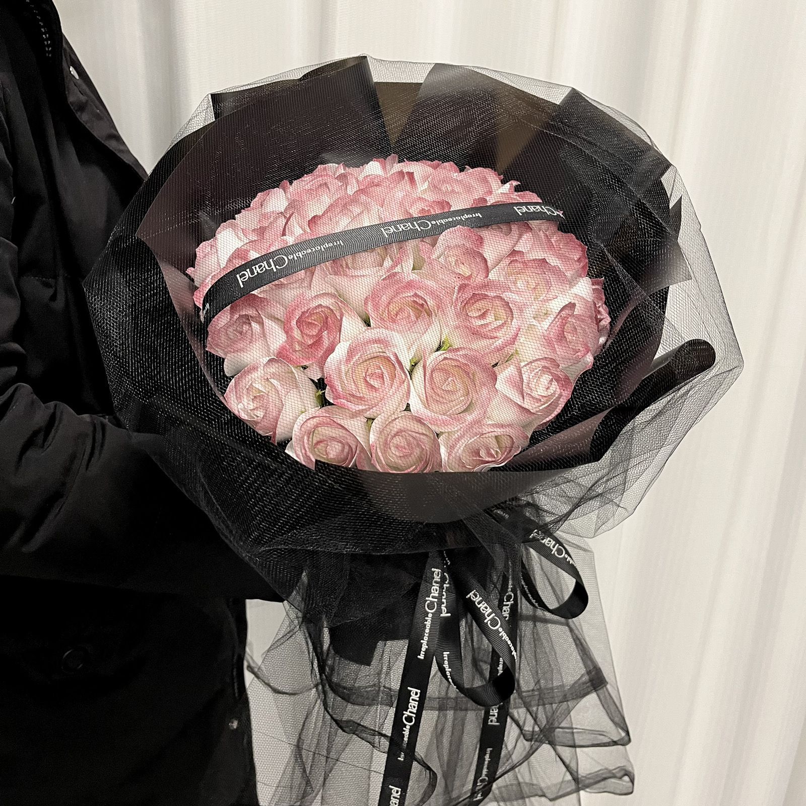 • [피어나는 아름다움] 제임스 블랙 33송이 + 축하카드 스트링 조명