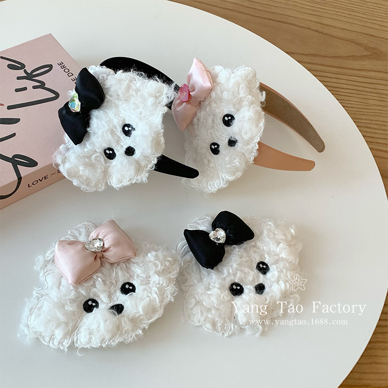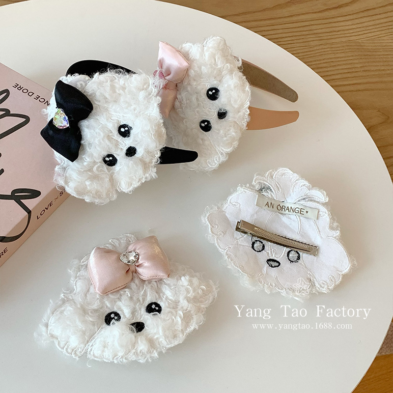 귀여운 후크 개 헤어핀 헤어 밴드 여성 일본 틈새 활 사이드 클립 소녀의 심장 만화 봉제 헤어 액세서리스토어 가기