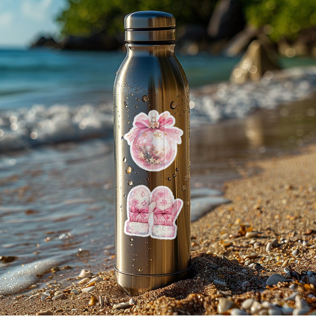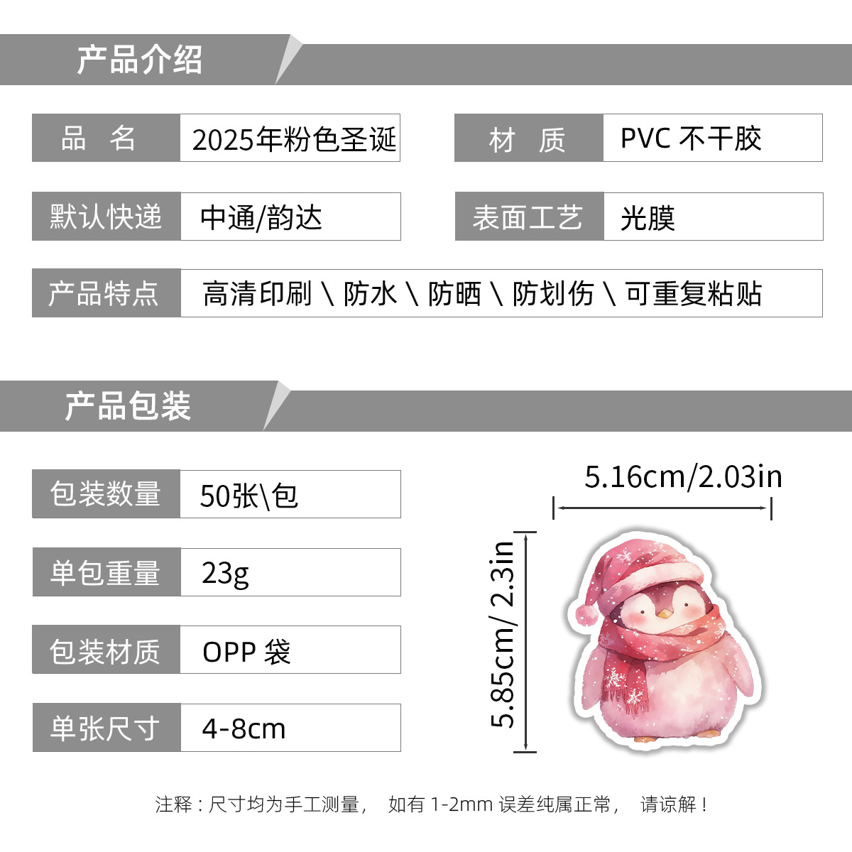 국경 50 북유럽 핑크 크리스마스 낙서 스티커 물 컵 휴대 전화 방수 장식 스티커 휴일 스티커