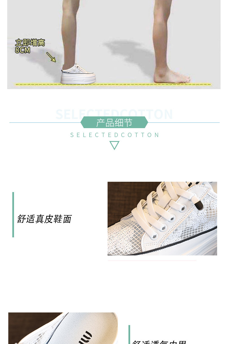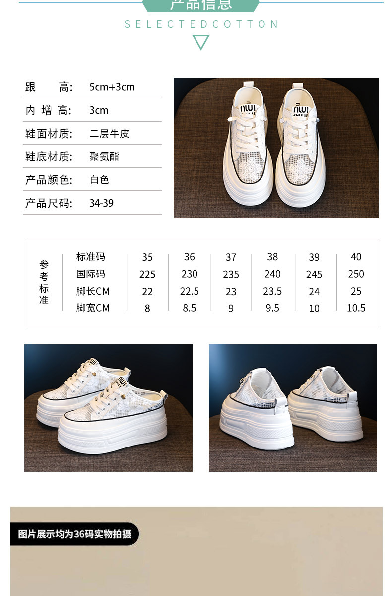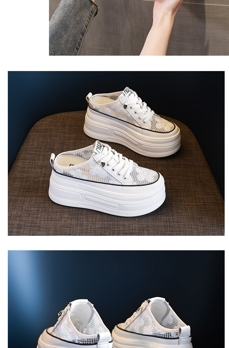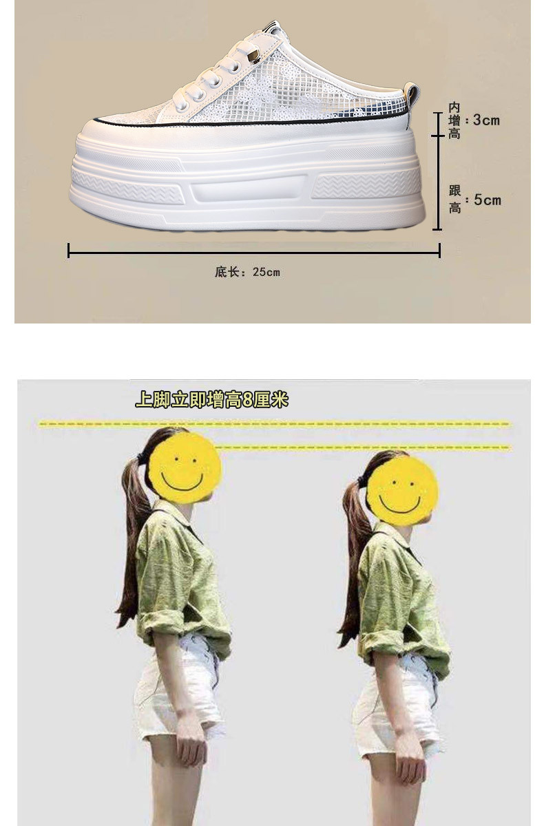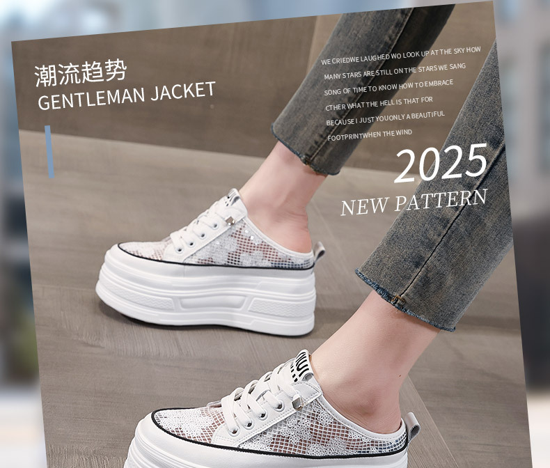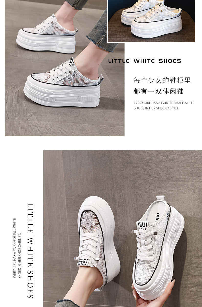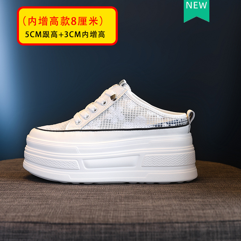 2025 년 여름 새로운 도착 하프 토우 높이를 높이는 가죽 메쉬 할로우 작은 싱글 레이어 신발 두꺼운 밑창 웨지 캐주얼 샌들 여성용 신발
