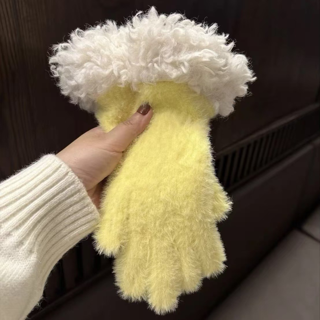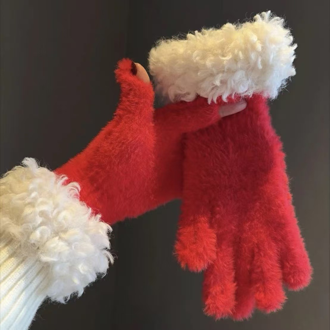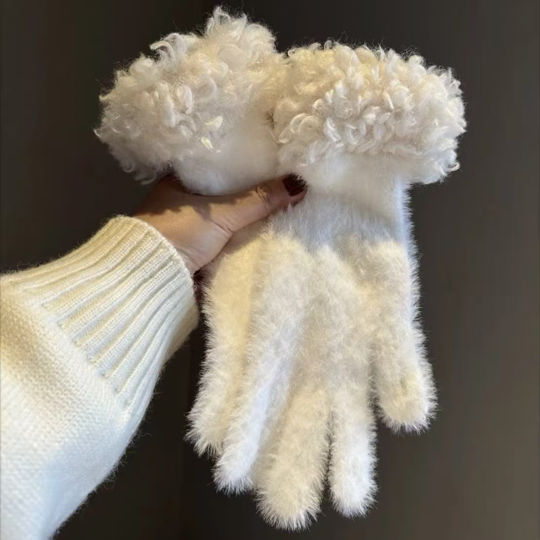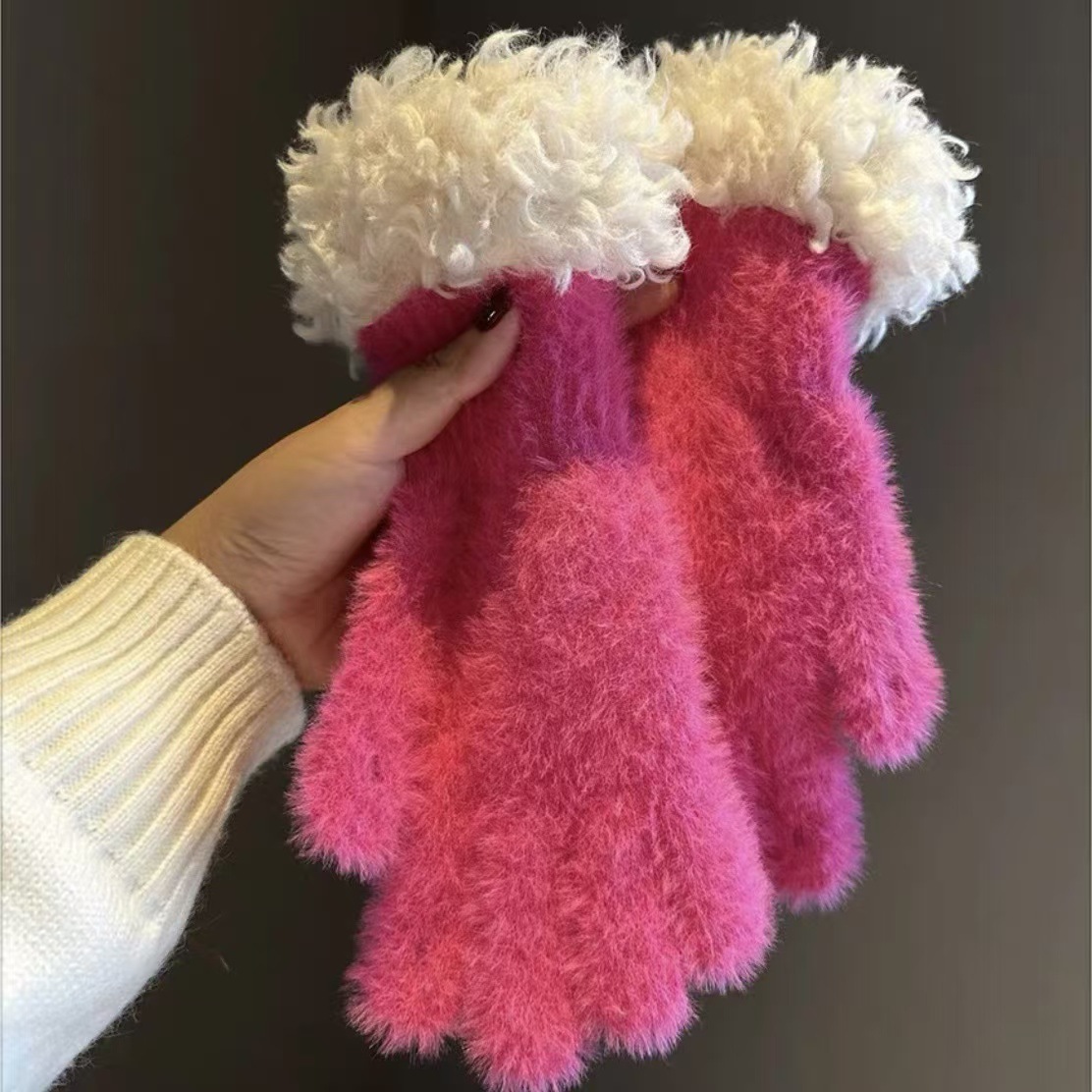 봉제 가장자리 장갑 여성의 겨울 2024 새로운 한국 스타일 니트 따뜻한 사이클링 5 손가락 분리 터치 스크린 방풍 감기스토어 가기