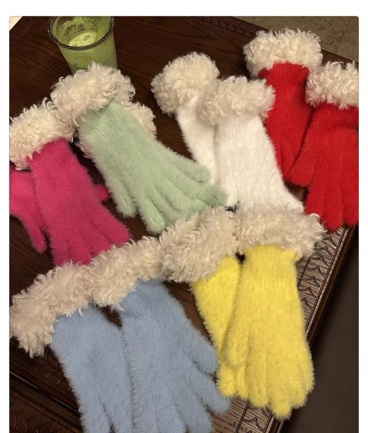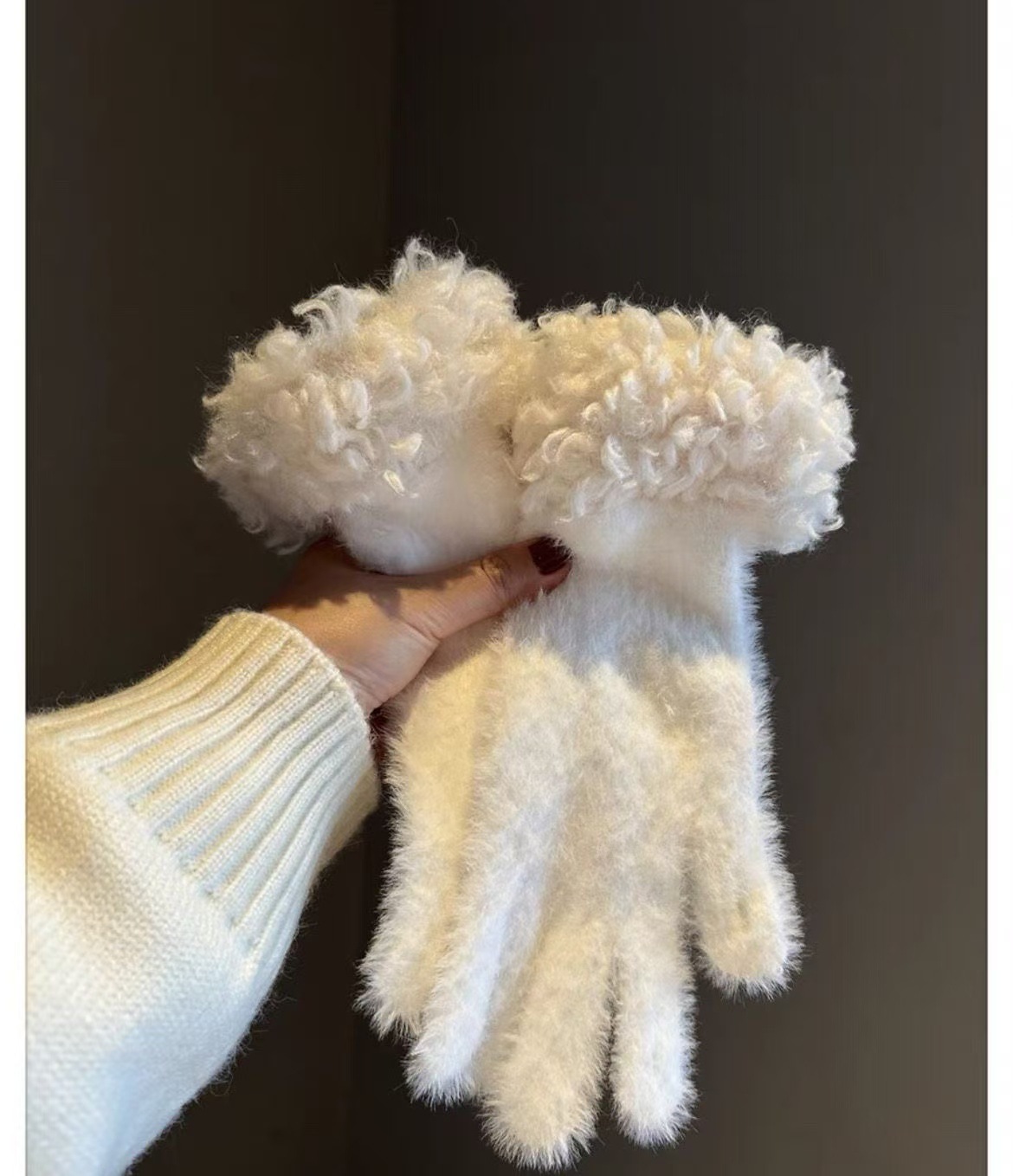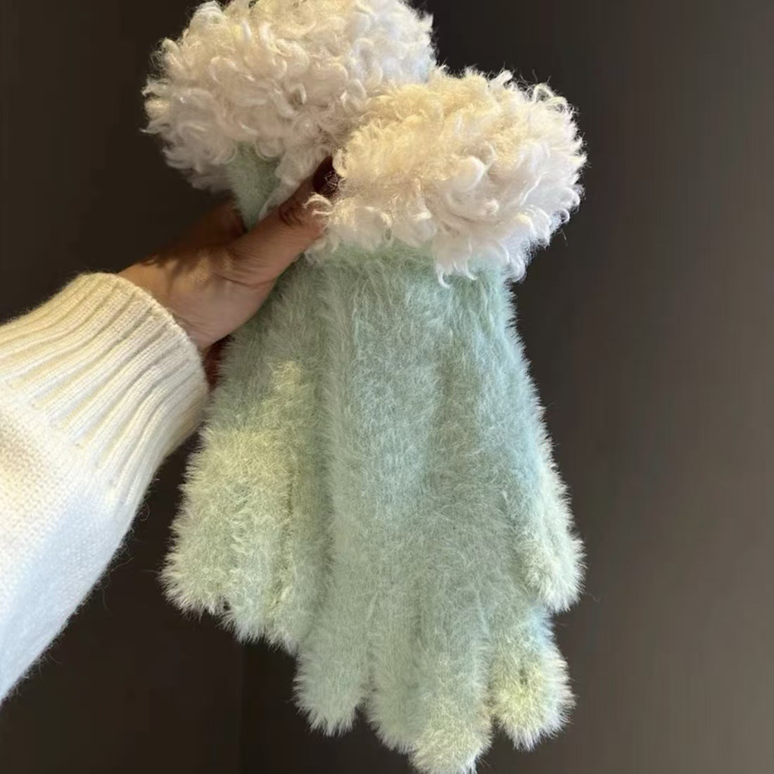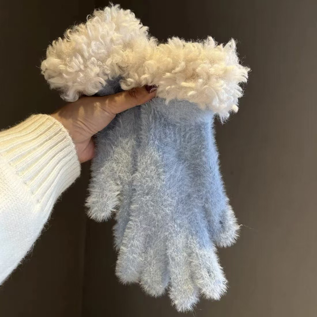 봉제 가장자리 장갑 여성의 겨울 2024 새로운 한국 스타일 니트 따뜻한 사이클링 5 손가락 분리 터치 스크린 방풍 감기스토어 가기
