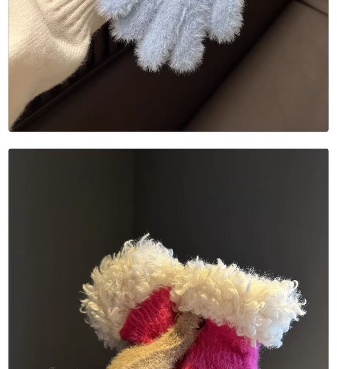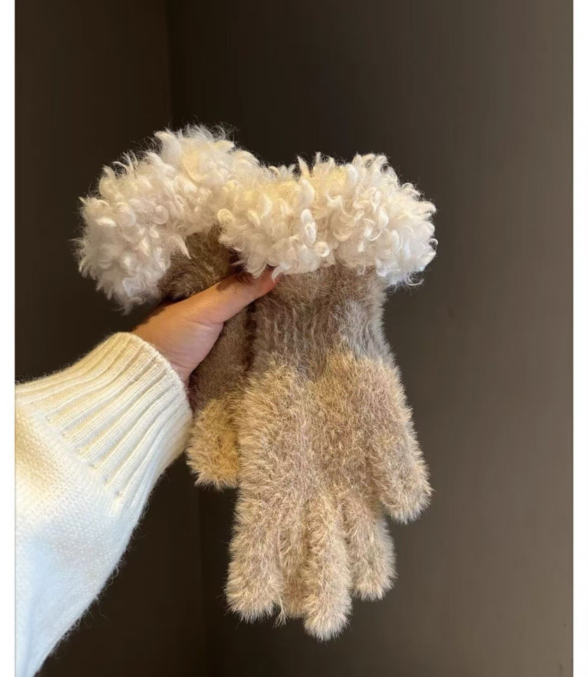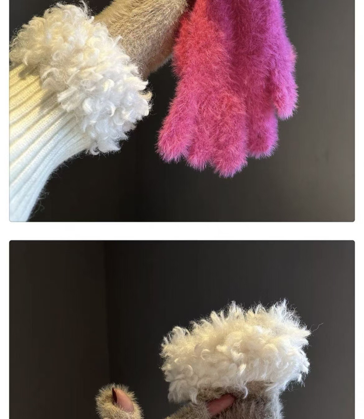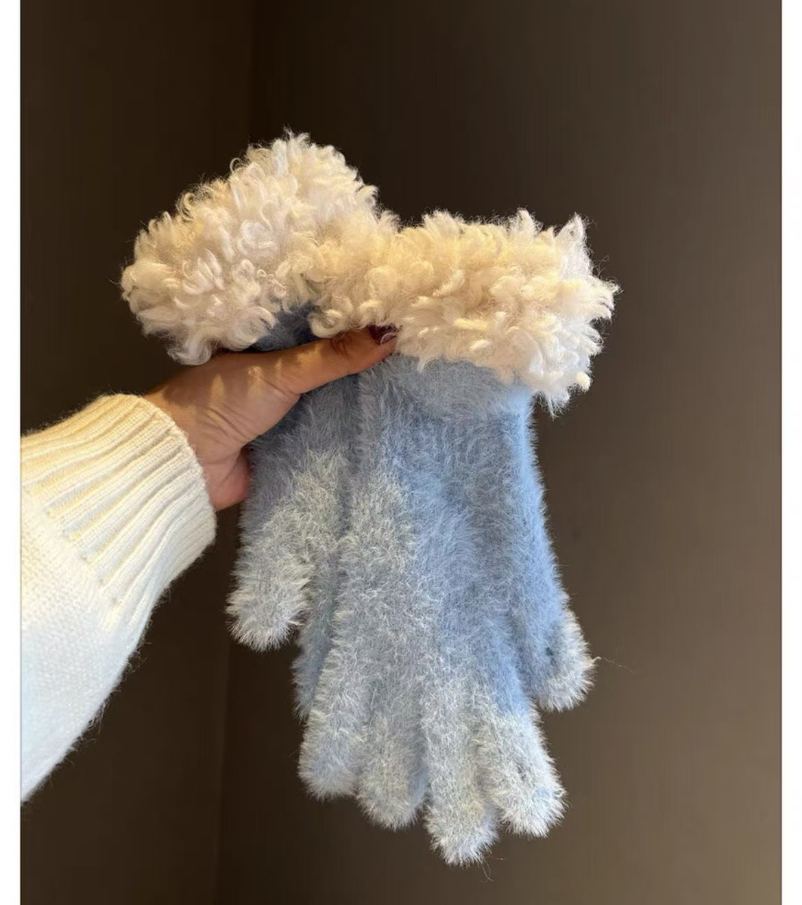 봉제 가장자리 장갑 여성의 겨울 2024 새로운 한국 스타일 니트 따뜻한 사이클링 5 손가락 분리 터치 스크린 방풍 감기스토어 가기