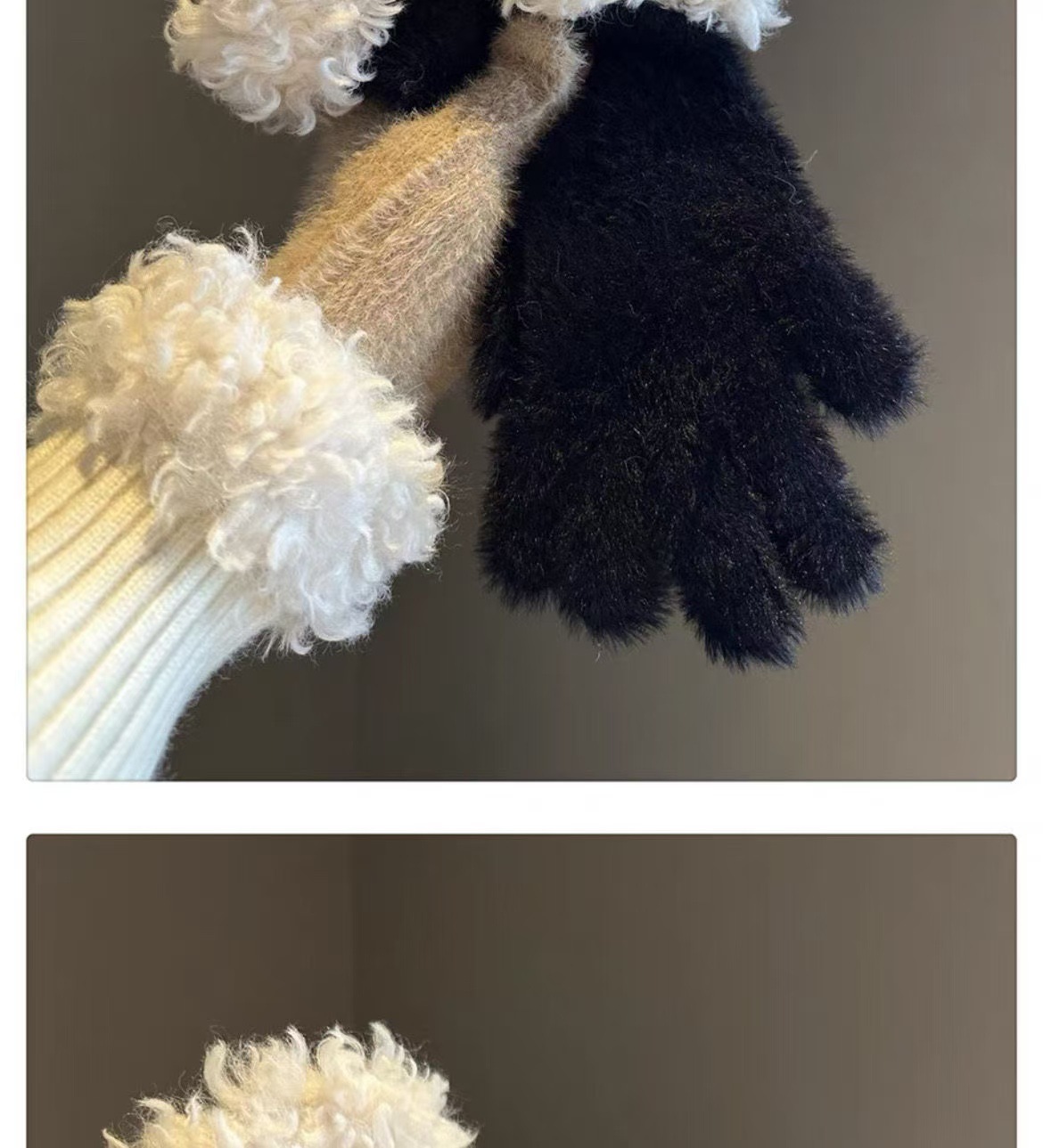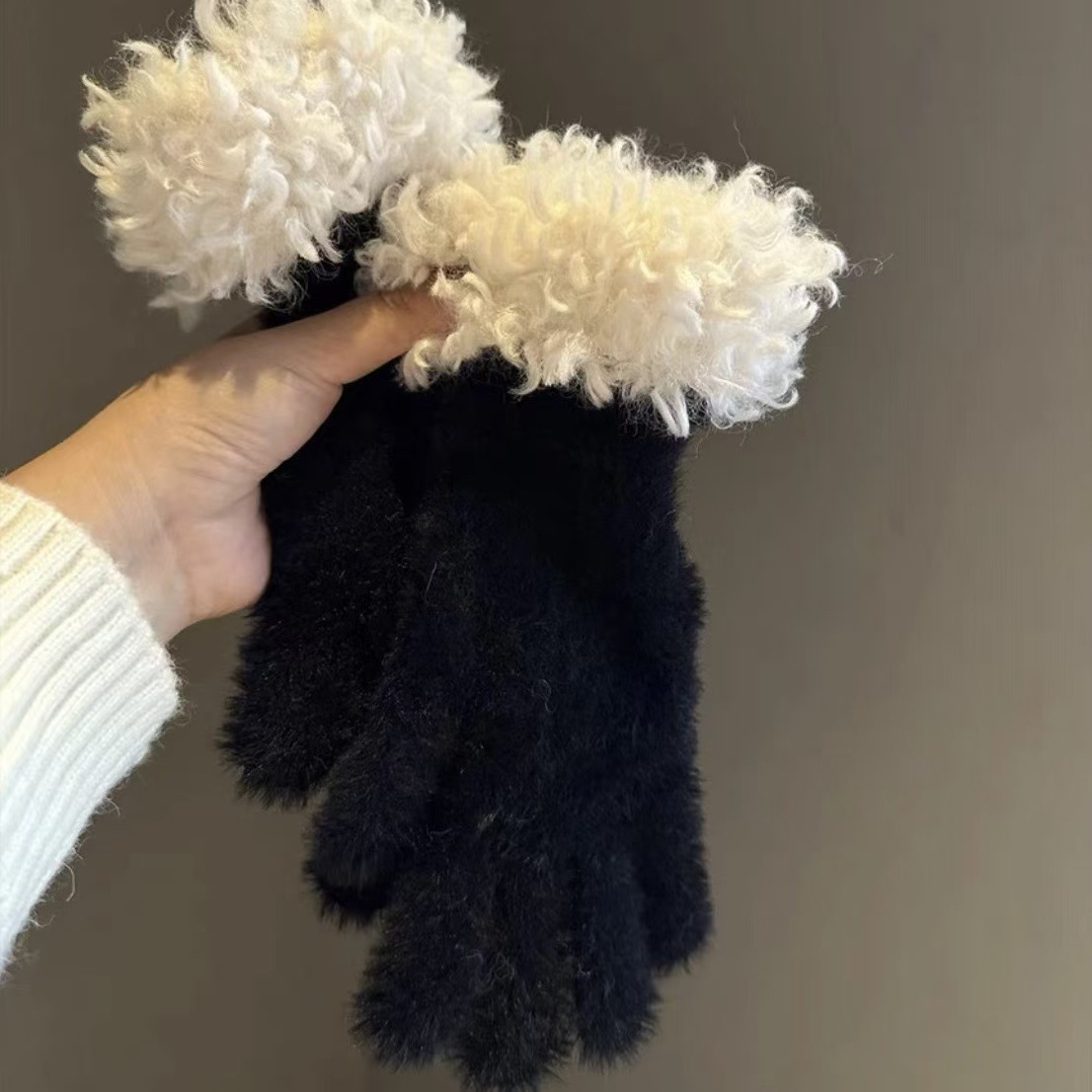 봉제 가장자리 장갑 여성의 겨울 2024 새로운 한국 스타일 니트 따뜻한 사이클링 5 손가락 분리 터치 스크린 방풍 감기