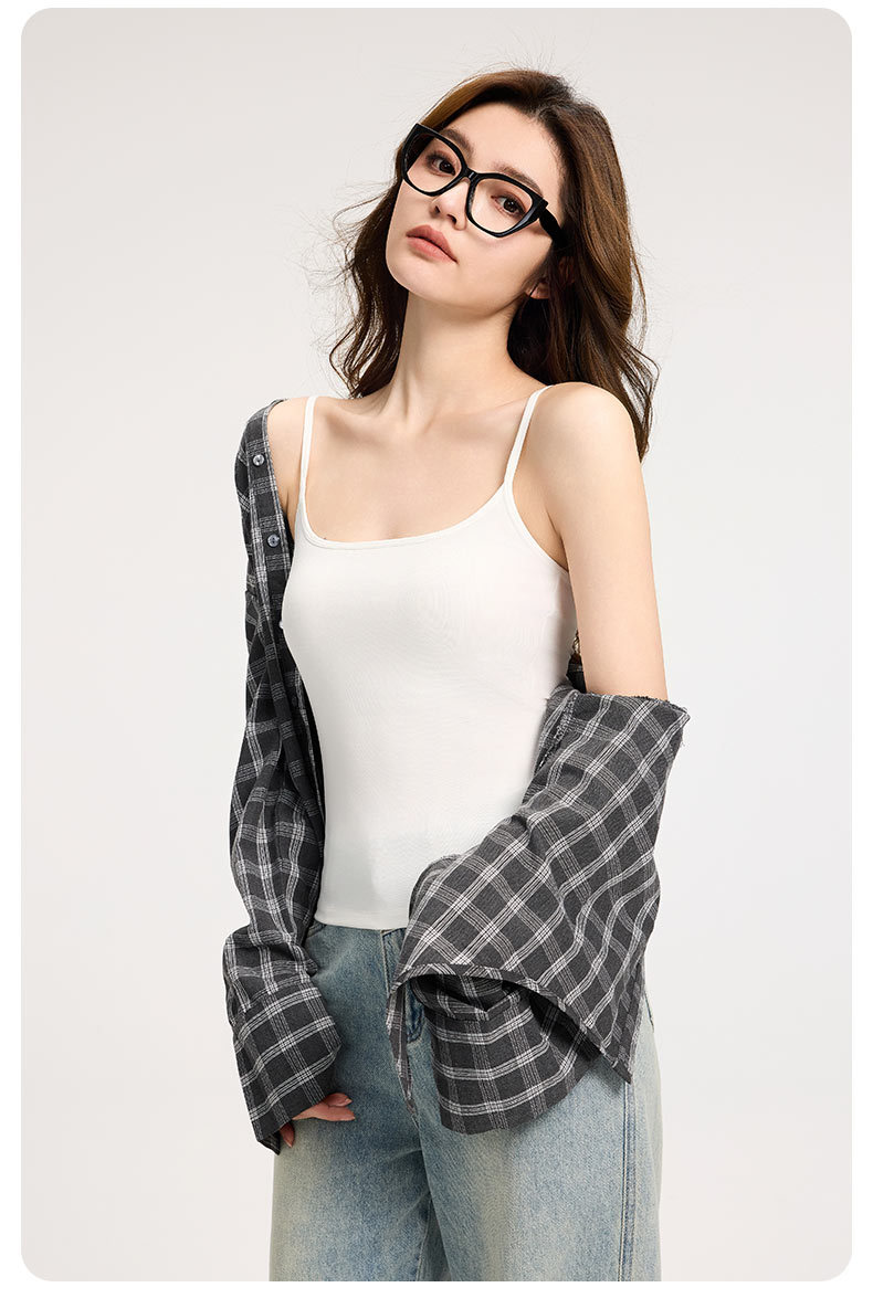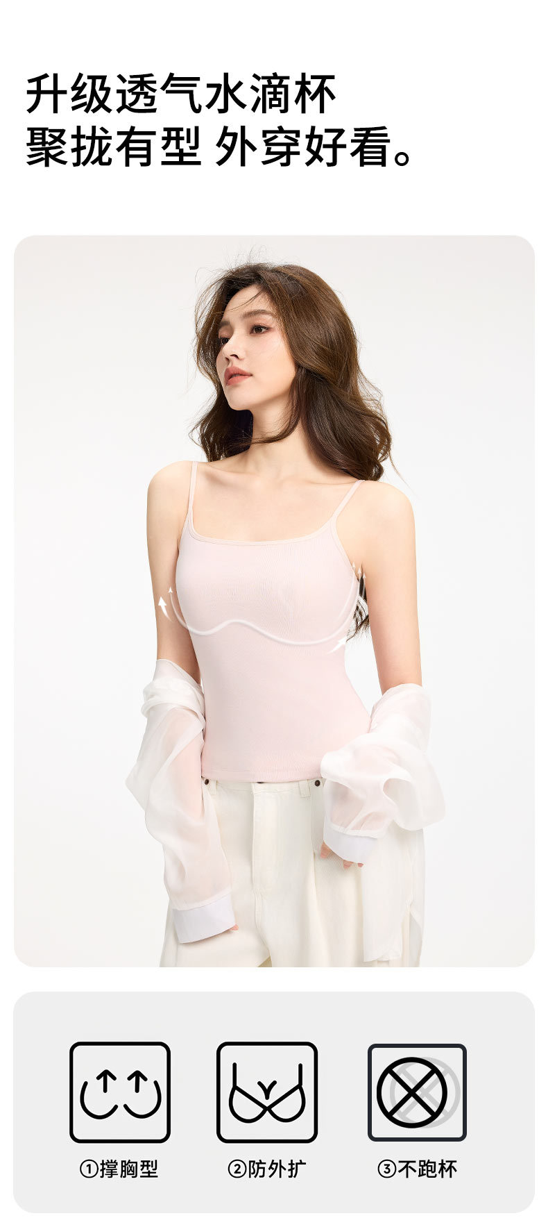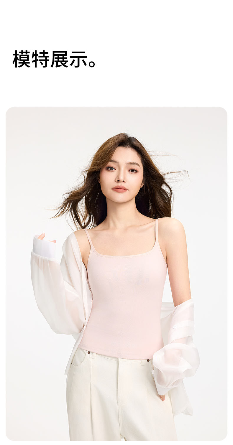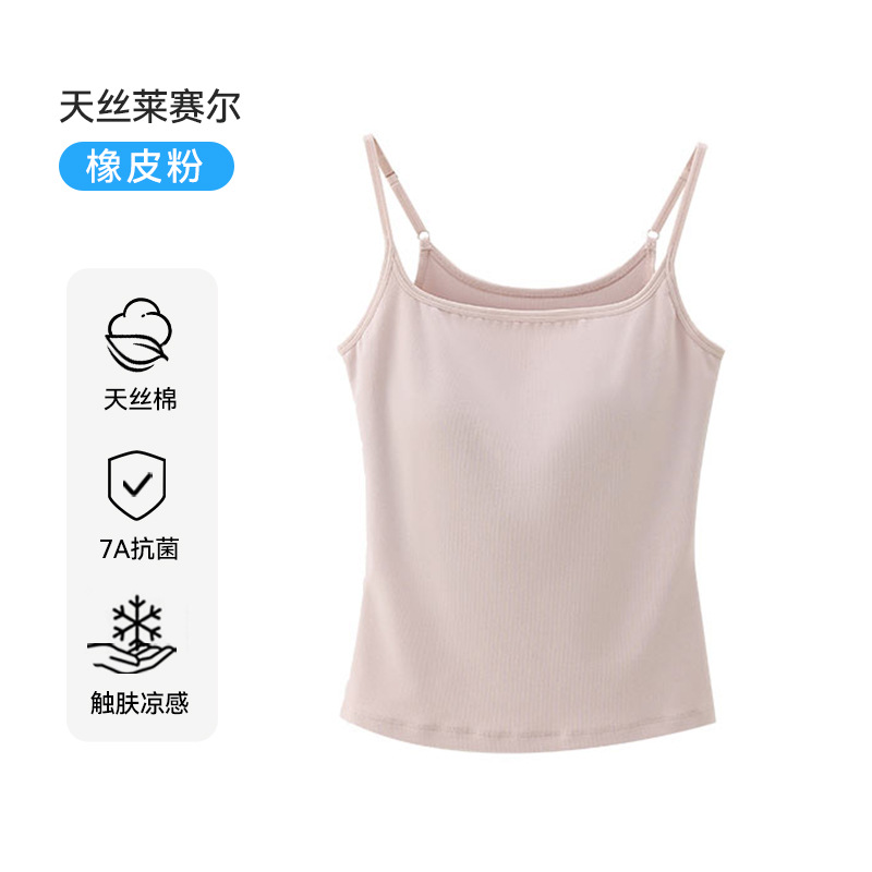 [7A 항균 리오셀] 여성용 가슴 패드가 있는 시원한 캐미솔, 라지 사이즈 이너웨어, 아름다운 뒷모습 화이트 탑스토어 가기