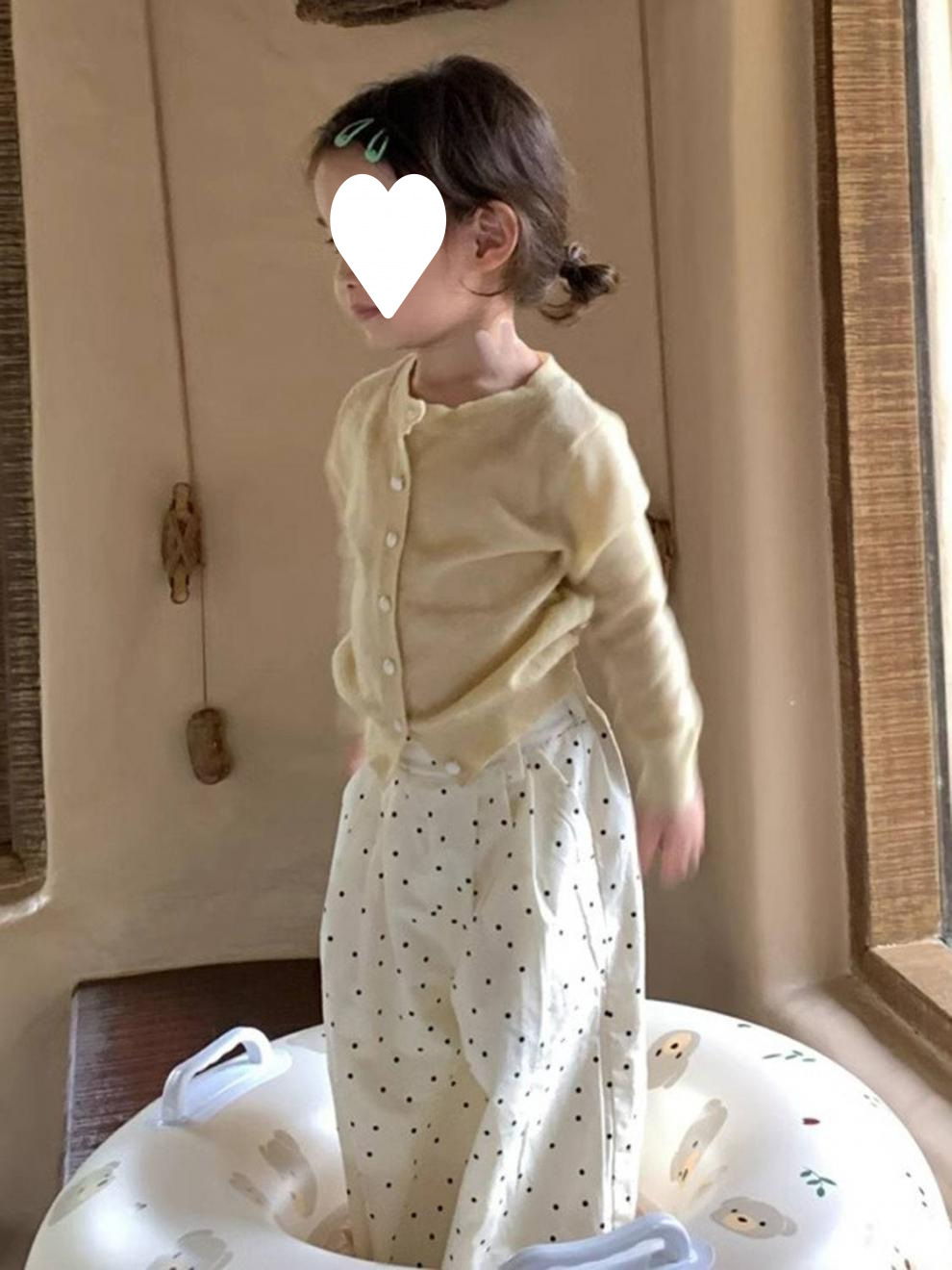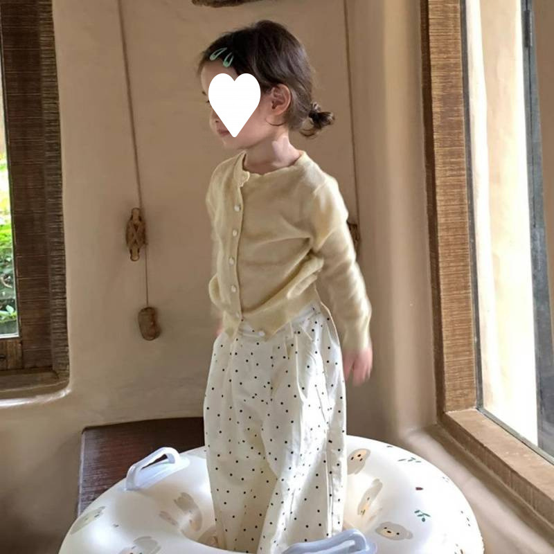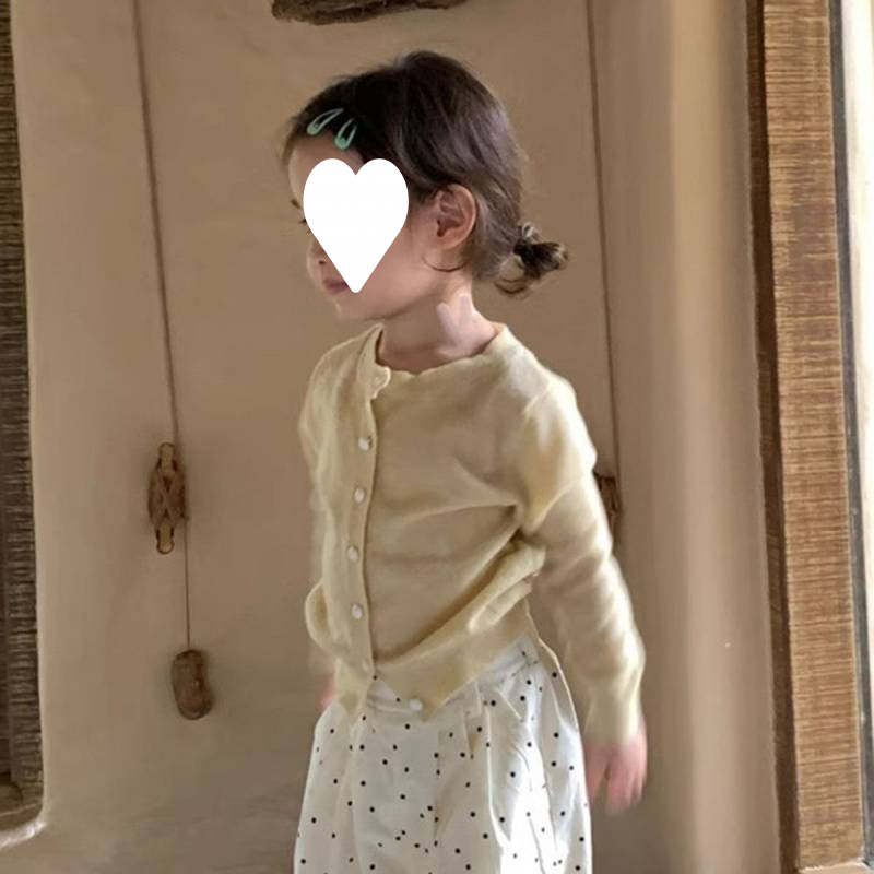 한국 아동복 소녀 우유 노란색 얇은 니트 카디건 2025 봄 새로운 어린이 서양식 스웨터 코트스토어 가기