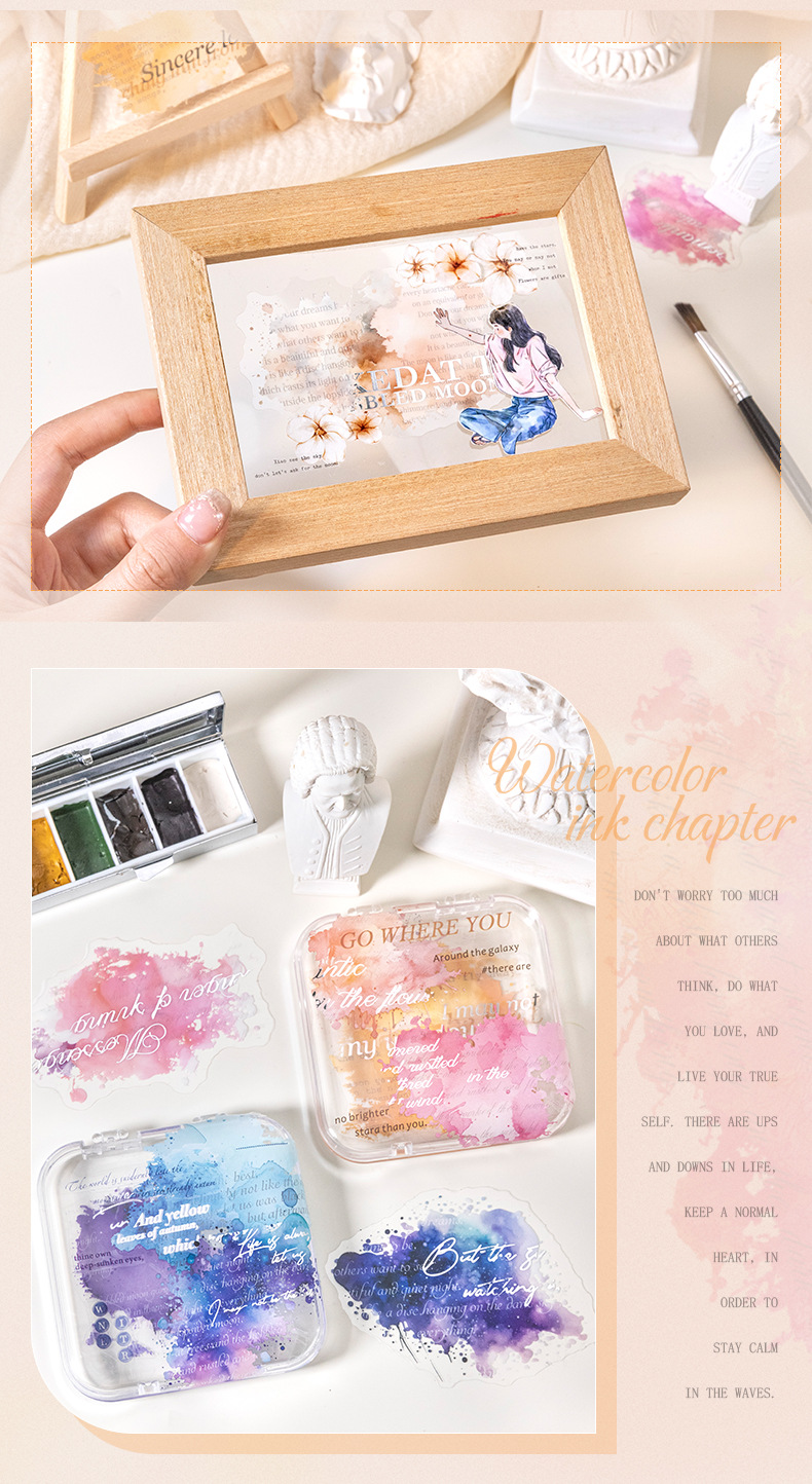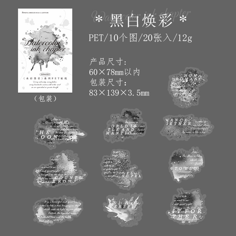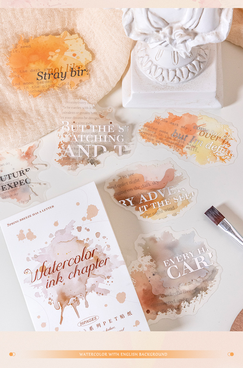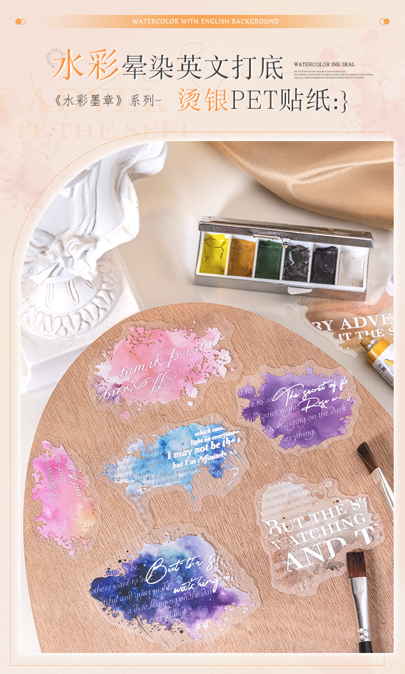 수채화 잉크 스탬프 핫 실버 PET 다이 컷 스티커 Ins 간단한 영어 기본 문자 Vimi Dye 손 계정 일기 장식스토어 가기