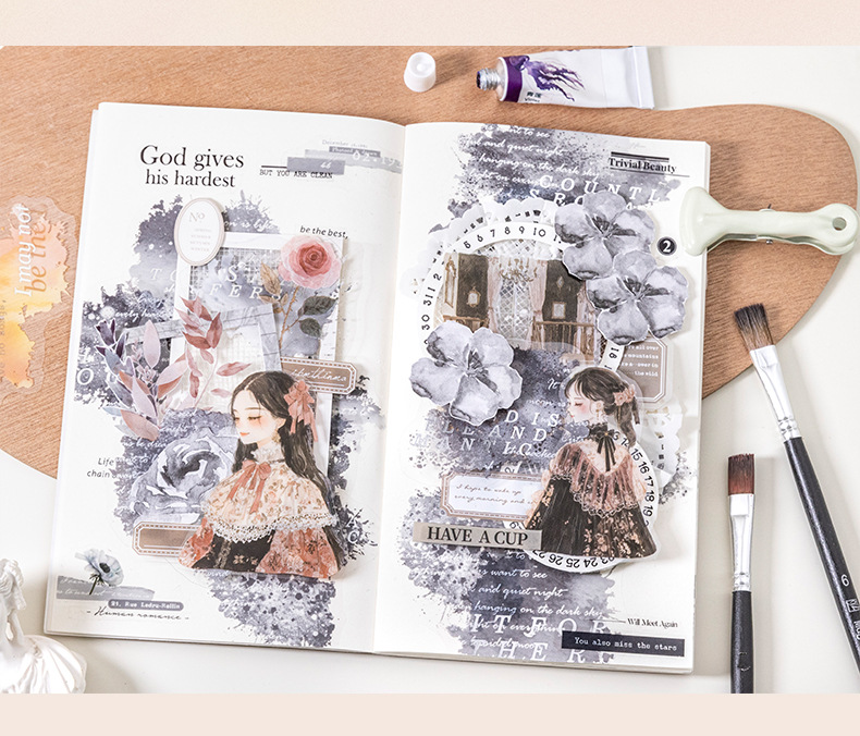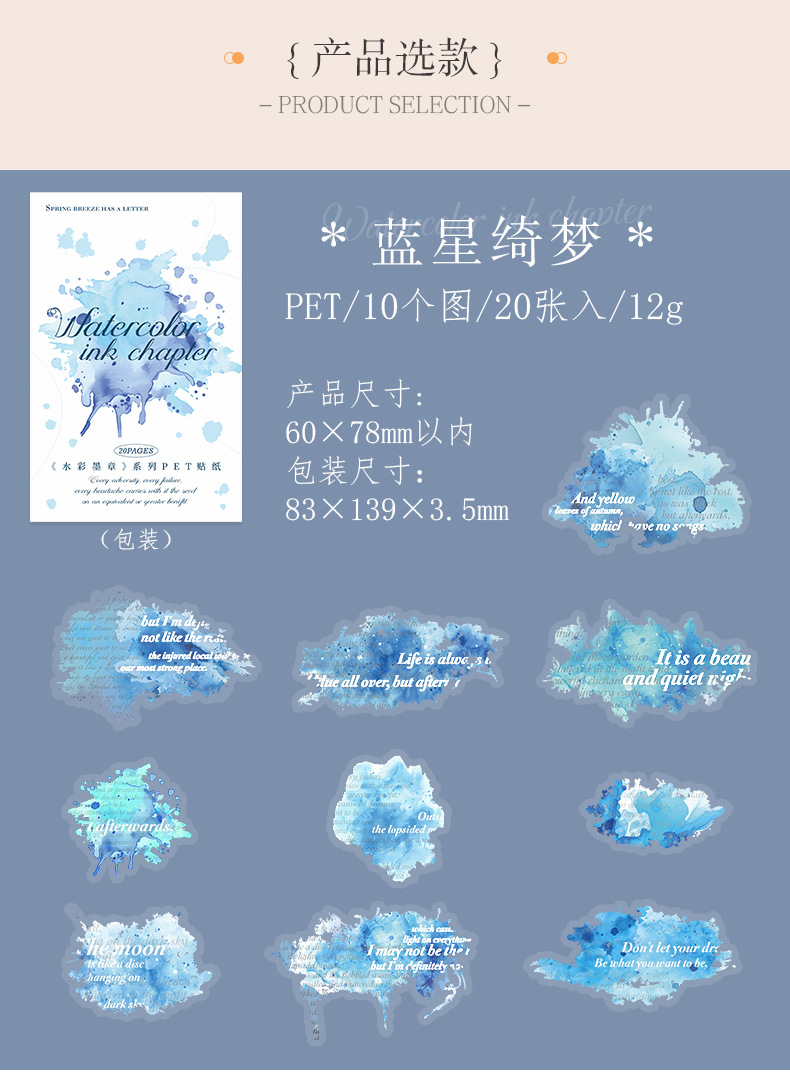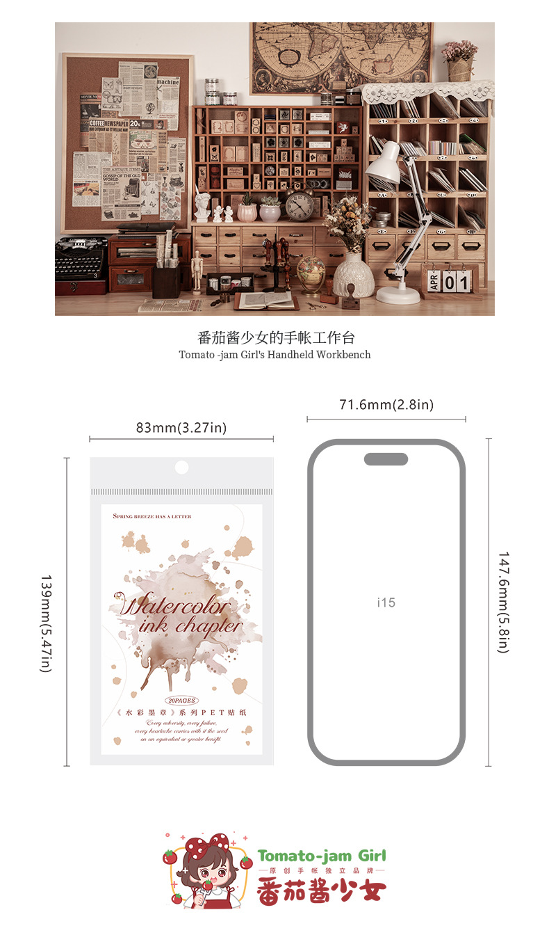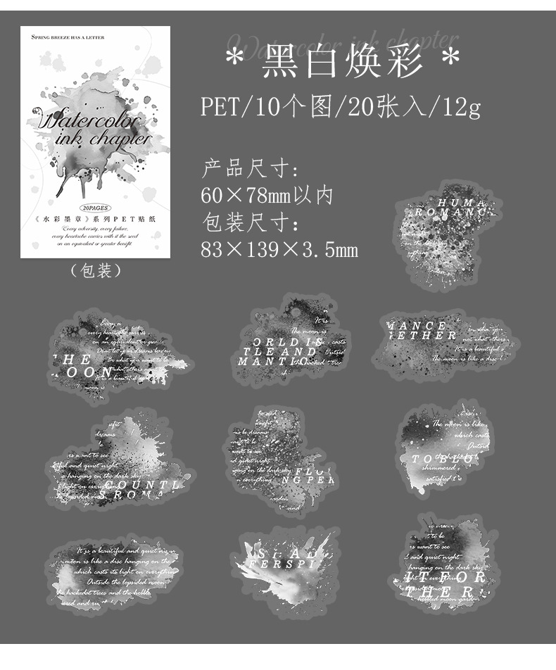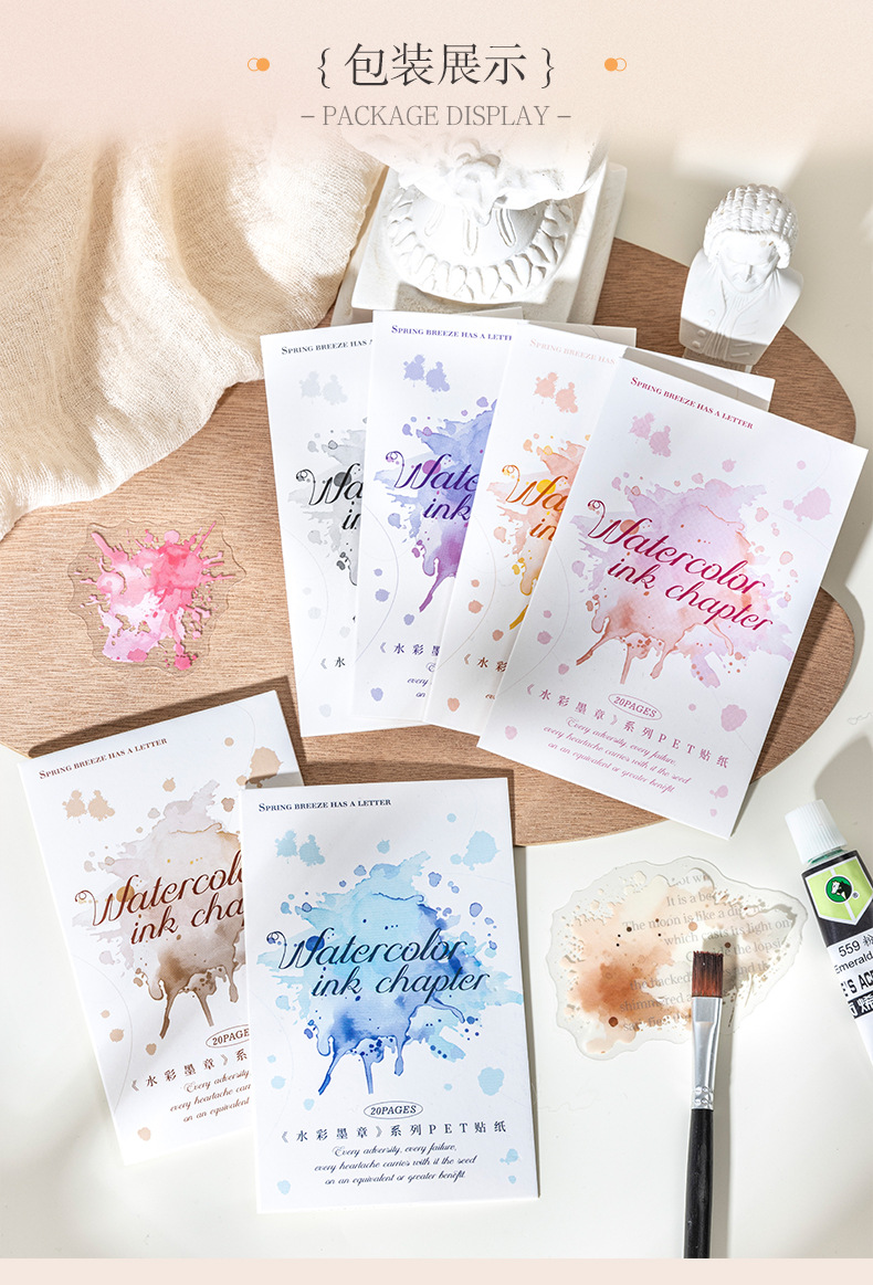 수채화 잉크 스탬프 핫 실버 PET 다이 컷 스티커 Ins 간단한 영어 기본 문자 Vimi Dye 손 계정 일기 장식스토어 가기