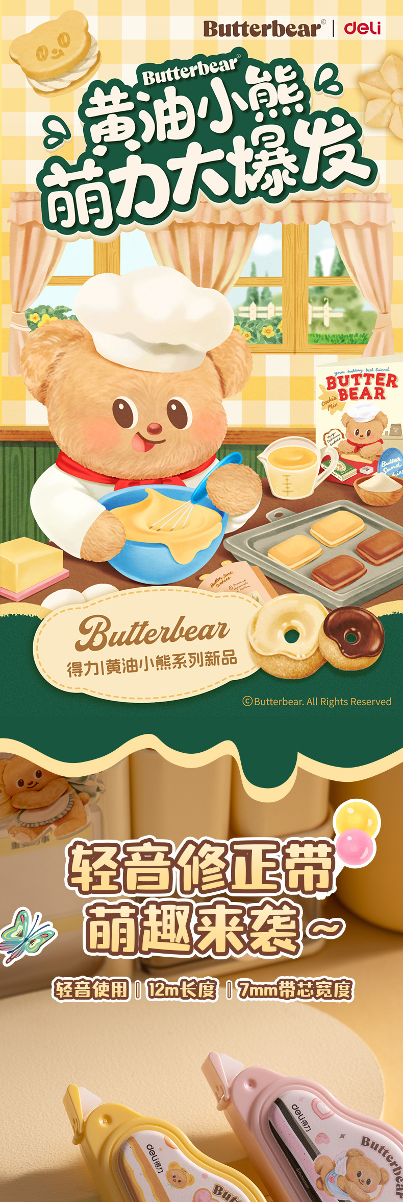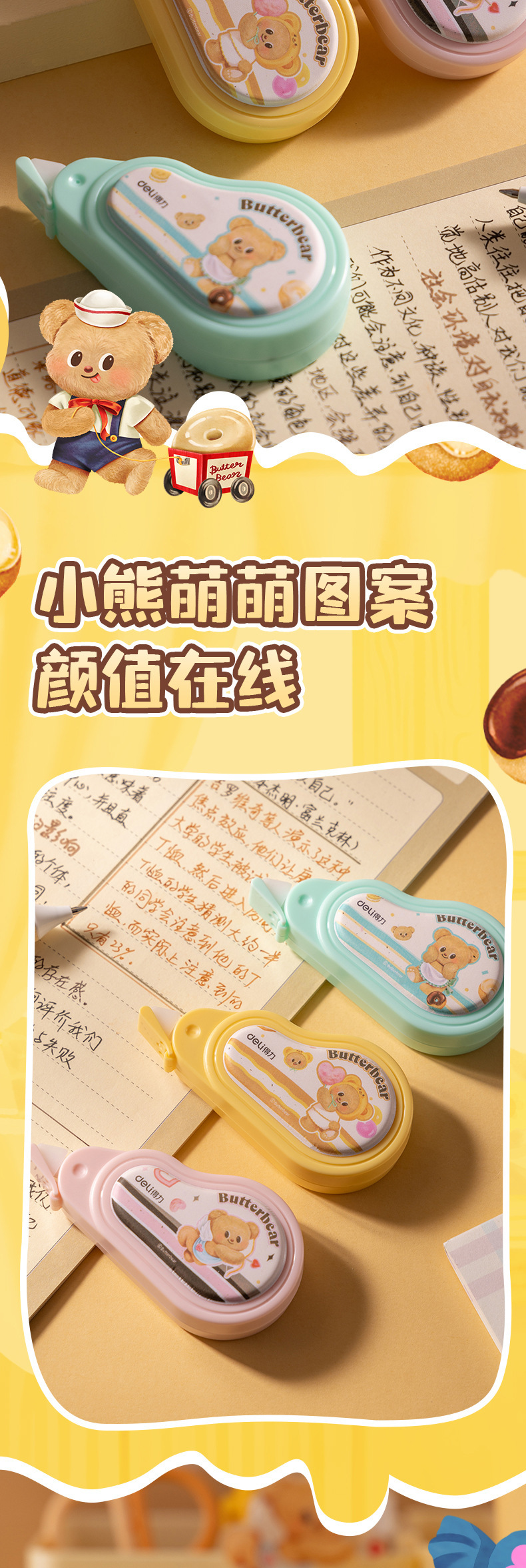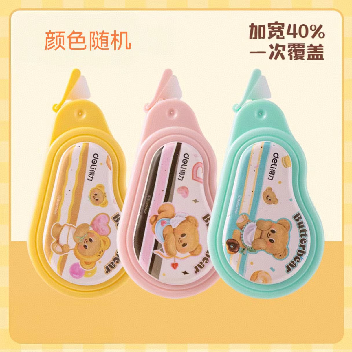 델리 HY120 버터 베어 큰 광대역 교정 테이프 대용량 저소음 교정 테이프 학생 교정 테이프스토어 가기