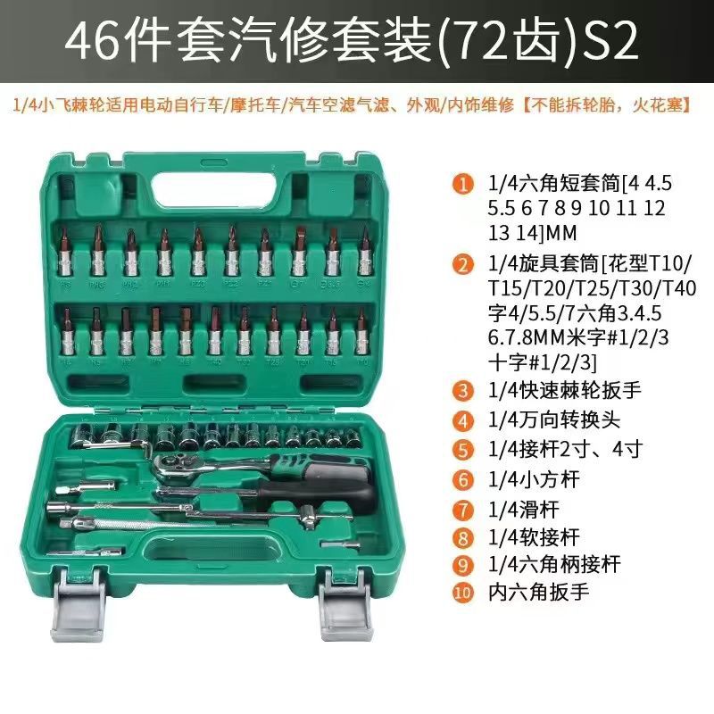 • 고급 자동차 수리 모델 [다기능 자동차 수리 세트] - 자동차 수리 모델 46PC [72톱니 래칫 S2 경화 비트]