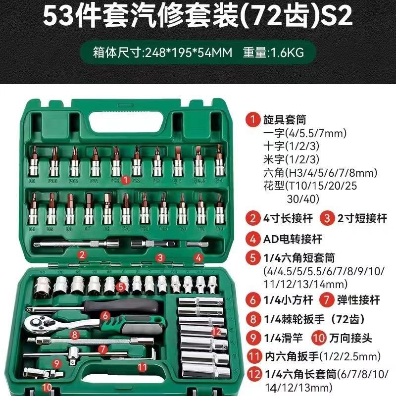 • 고급 자동차 수리 모델 [다기능 자동차 수리 세트] - 자동차 수리 모델 53PC [72톱니 래칫 S2 경화 비트]