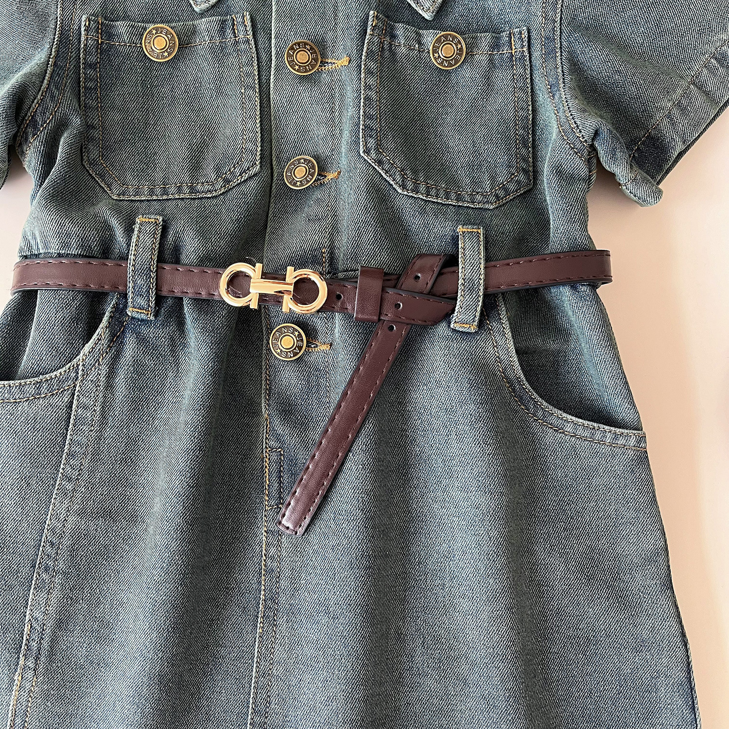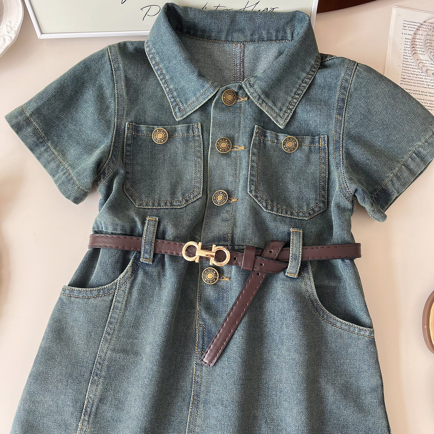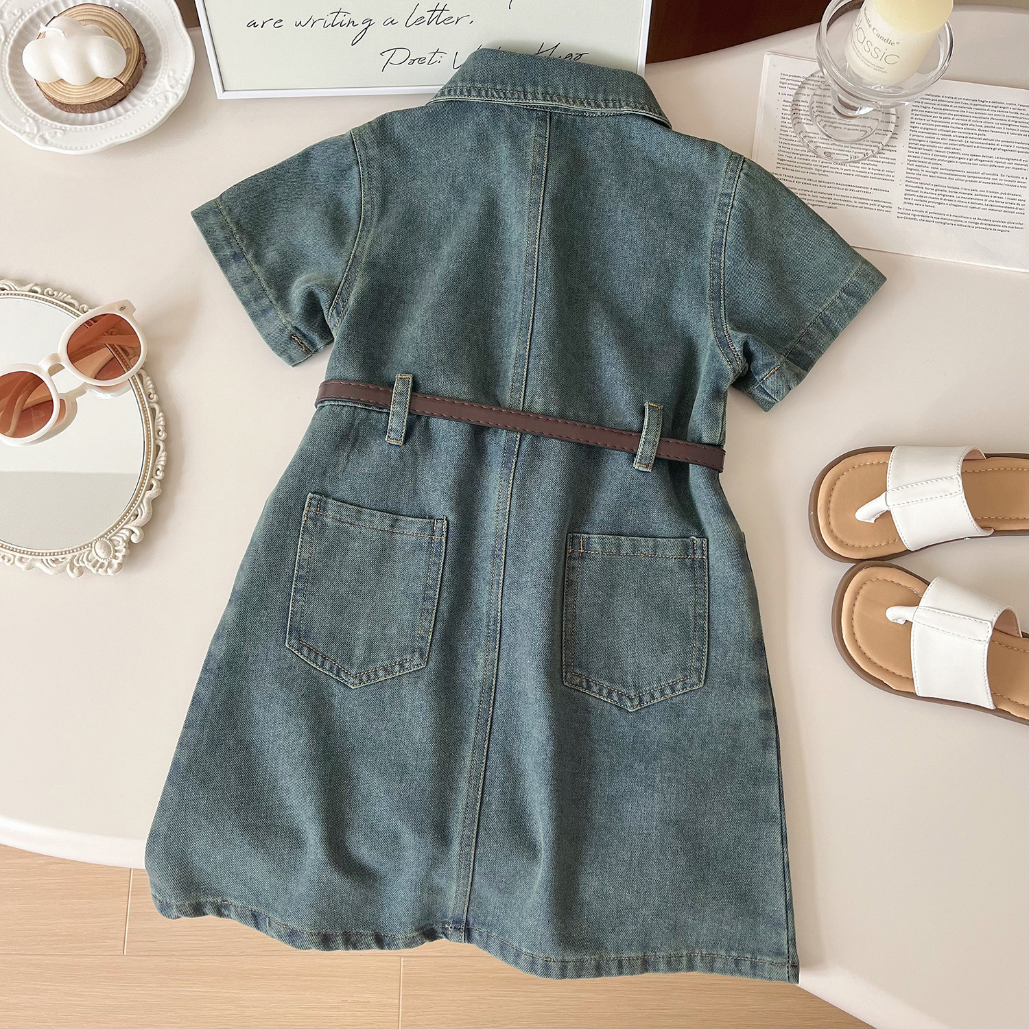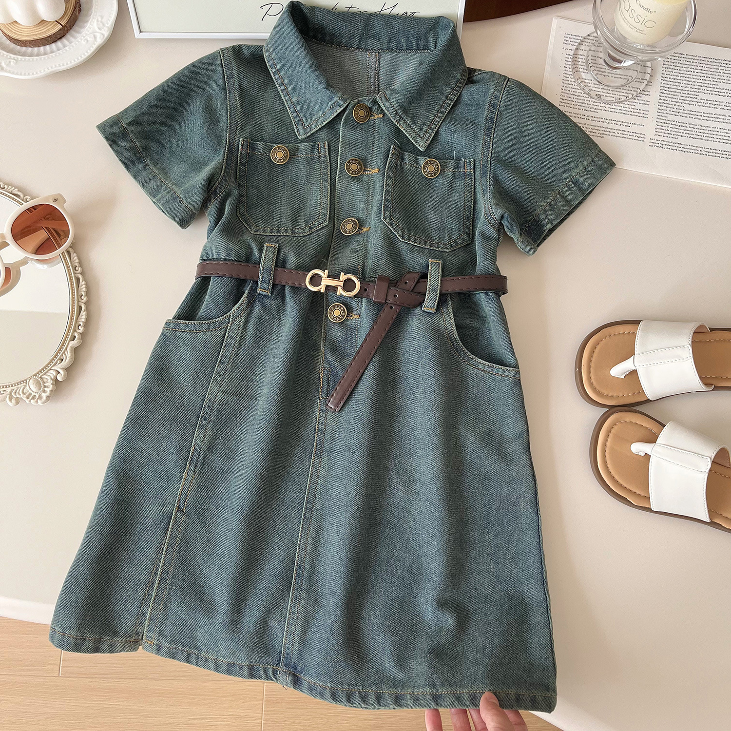 어린이 데님 원피스 새로운 여름 소녀 패션 귀여운 세척 부드러운 반팔 데님 원피스스토어 가기
