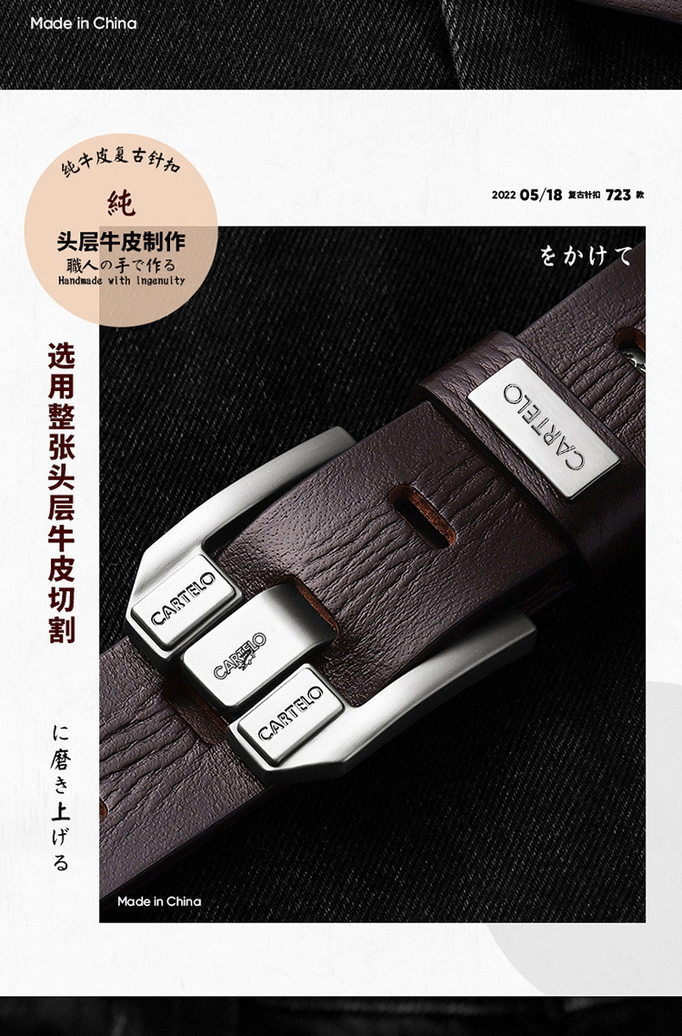 • 첫 번째 레이어 복고풍 스타일 713 블랙 버클 블랙 벨트