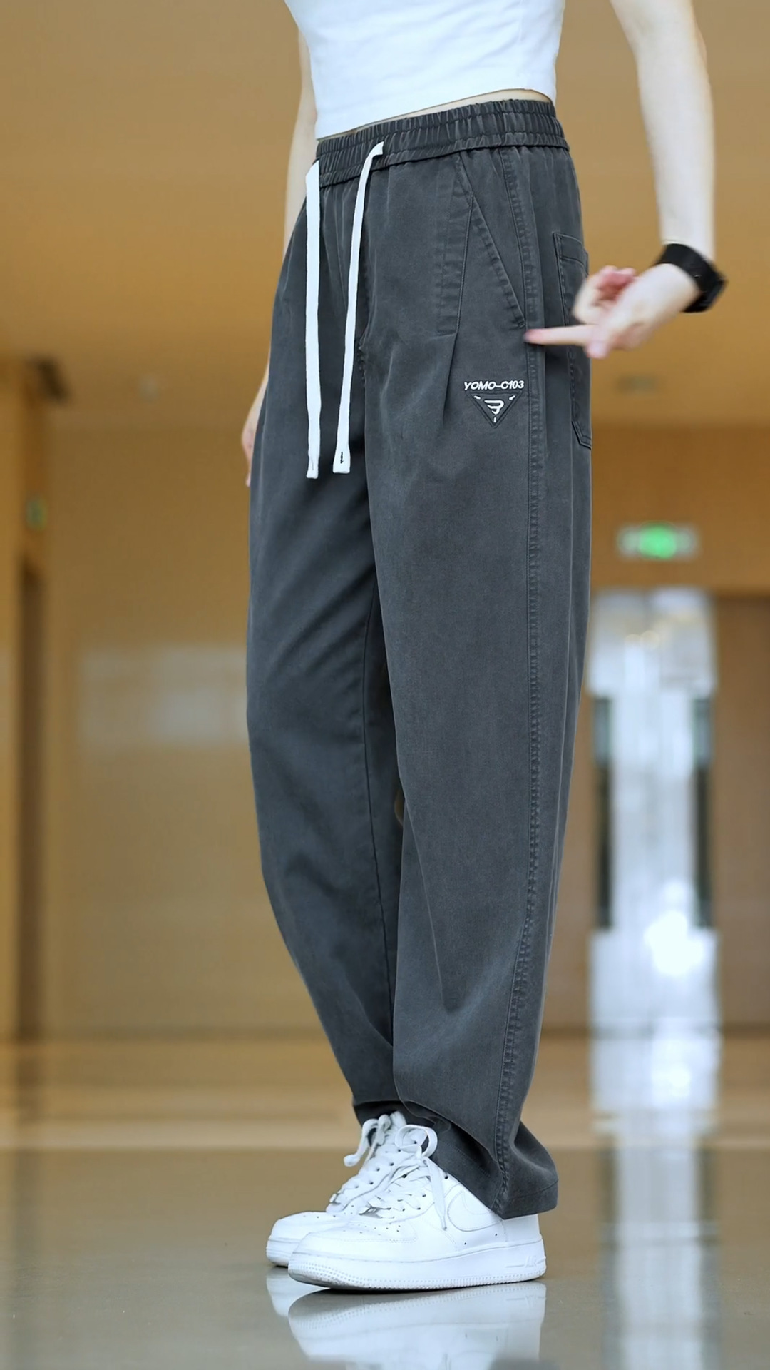Tencel Lyocell 바지 남자 2025 년 봄 새로운 느슨한 직선 캐주얼 바지 유행 작업복 넓은 다리 바지스토어 가기
