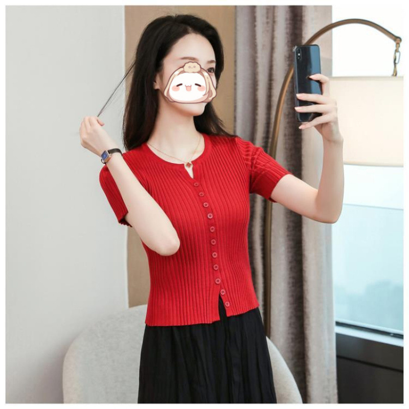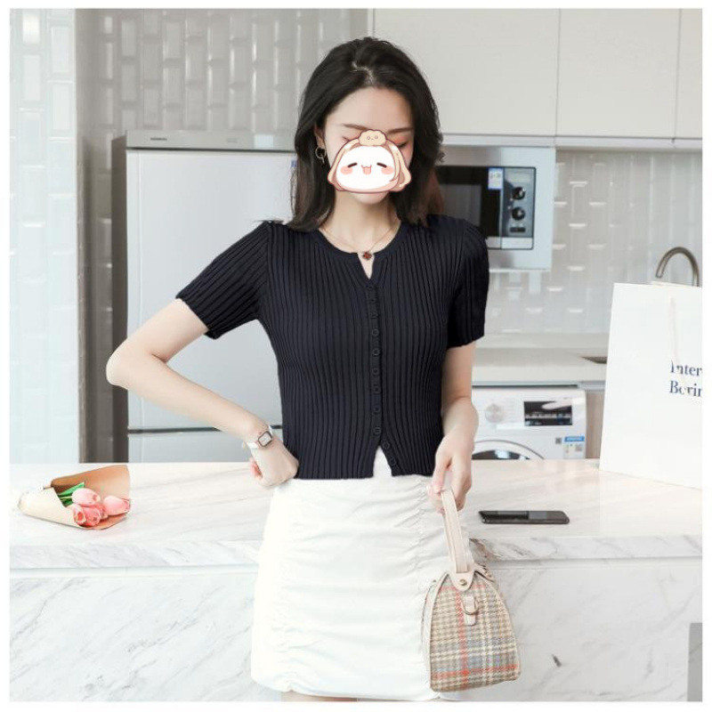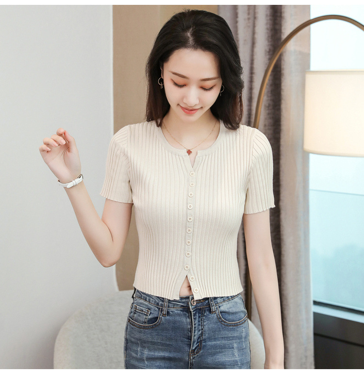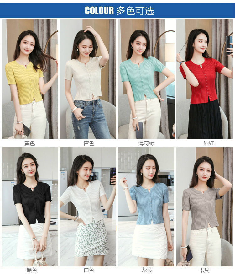 작은 얇은 니트 카디건 여자 2025 여름 올 매치 스커트 높은 허리 아이스 실크 티셔츠 쇼트 탑스토어 가기