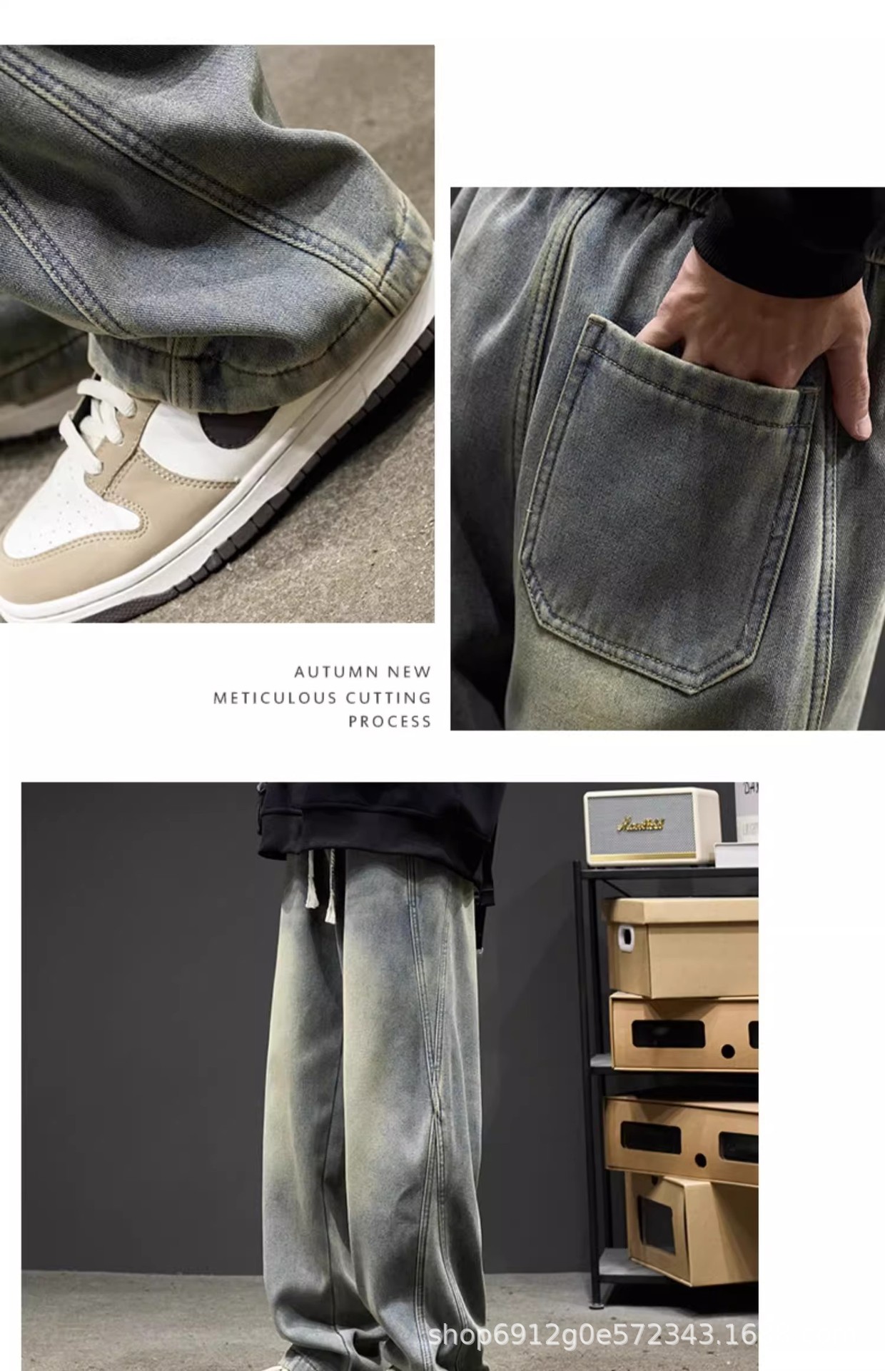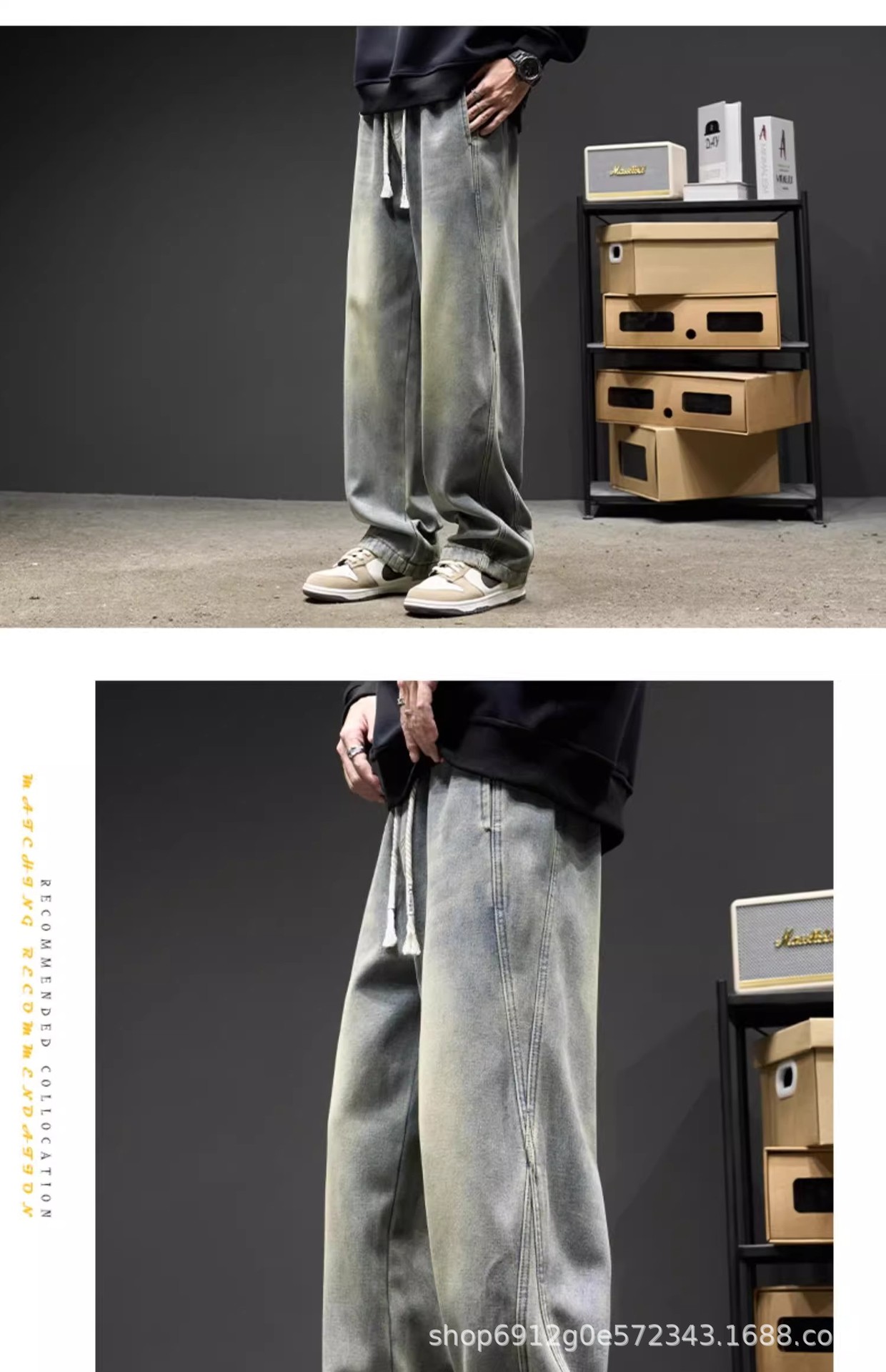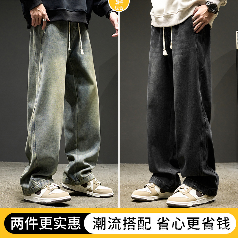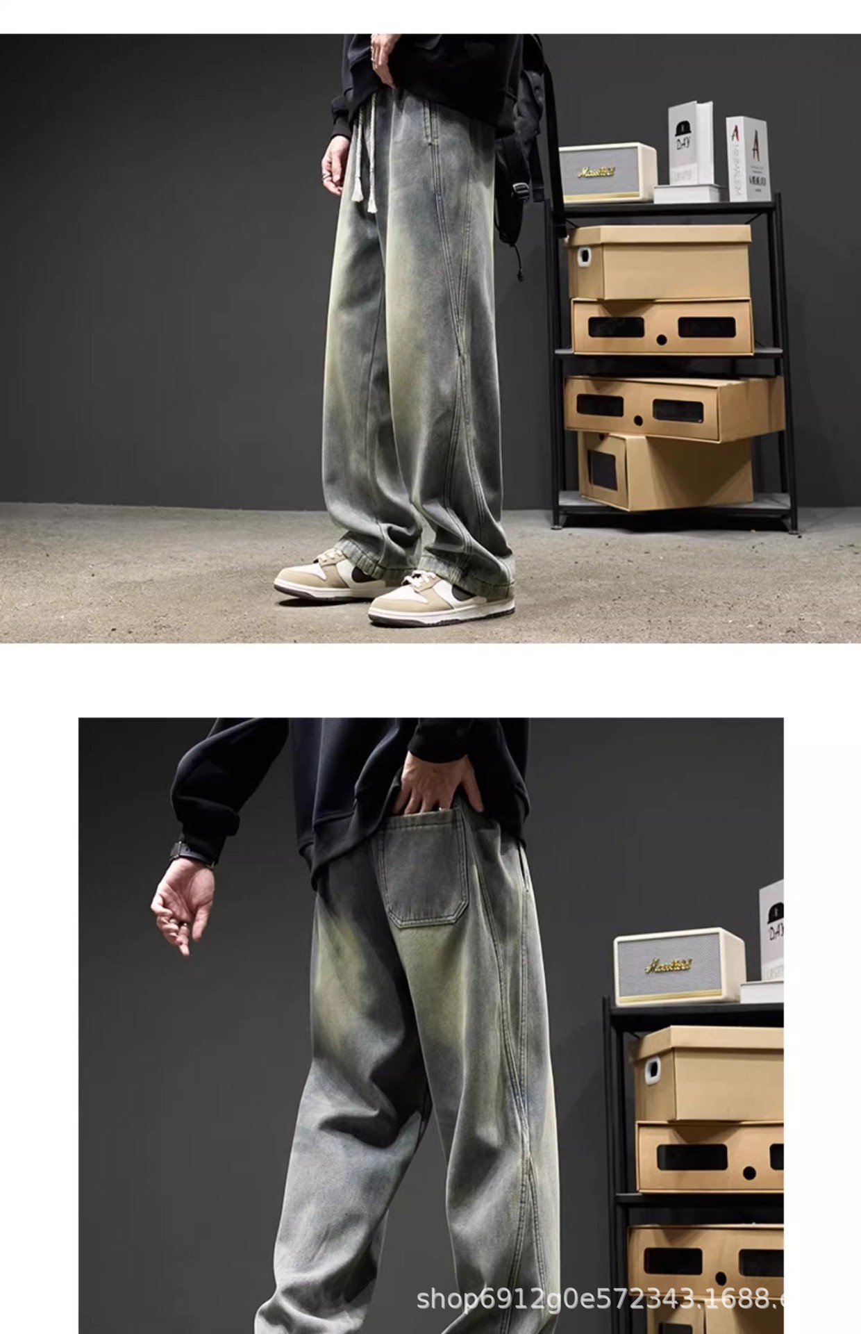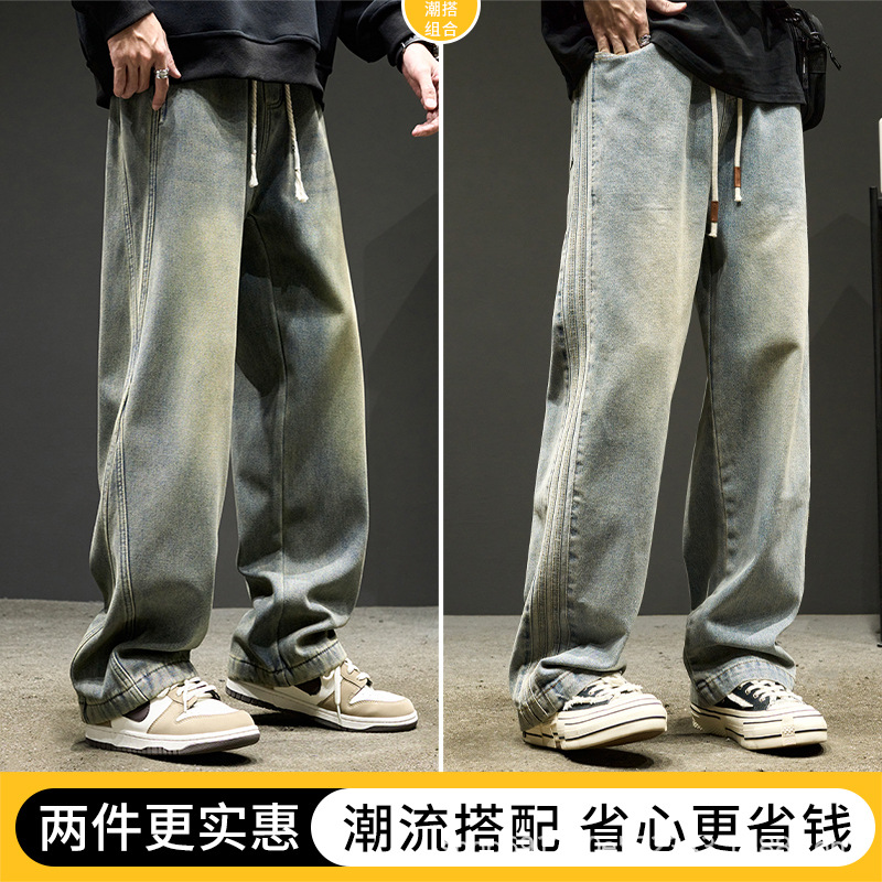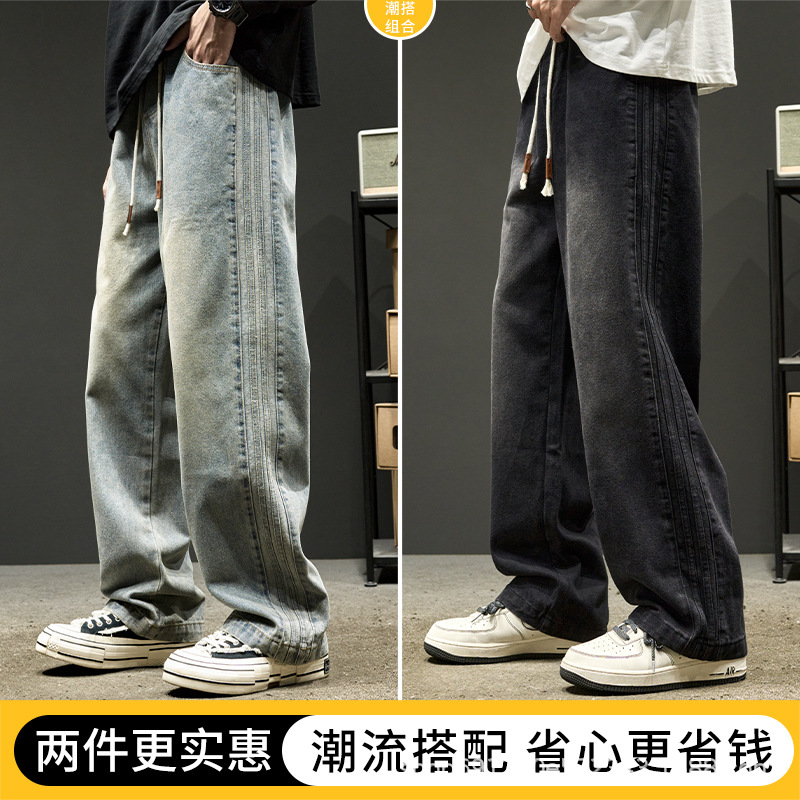 청바지 남성 2025 봄과 가을 새로운 느슨한 스트레이트 바지 미국 복고풍 바느질 유행 브랜드 바지스토어 가기