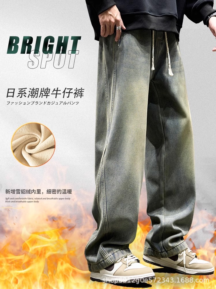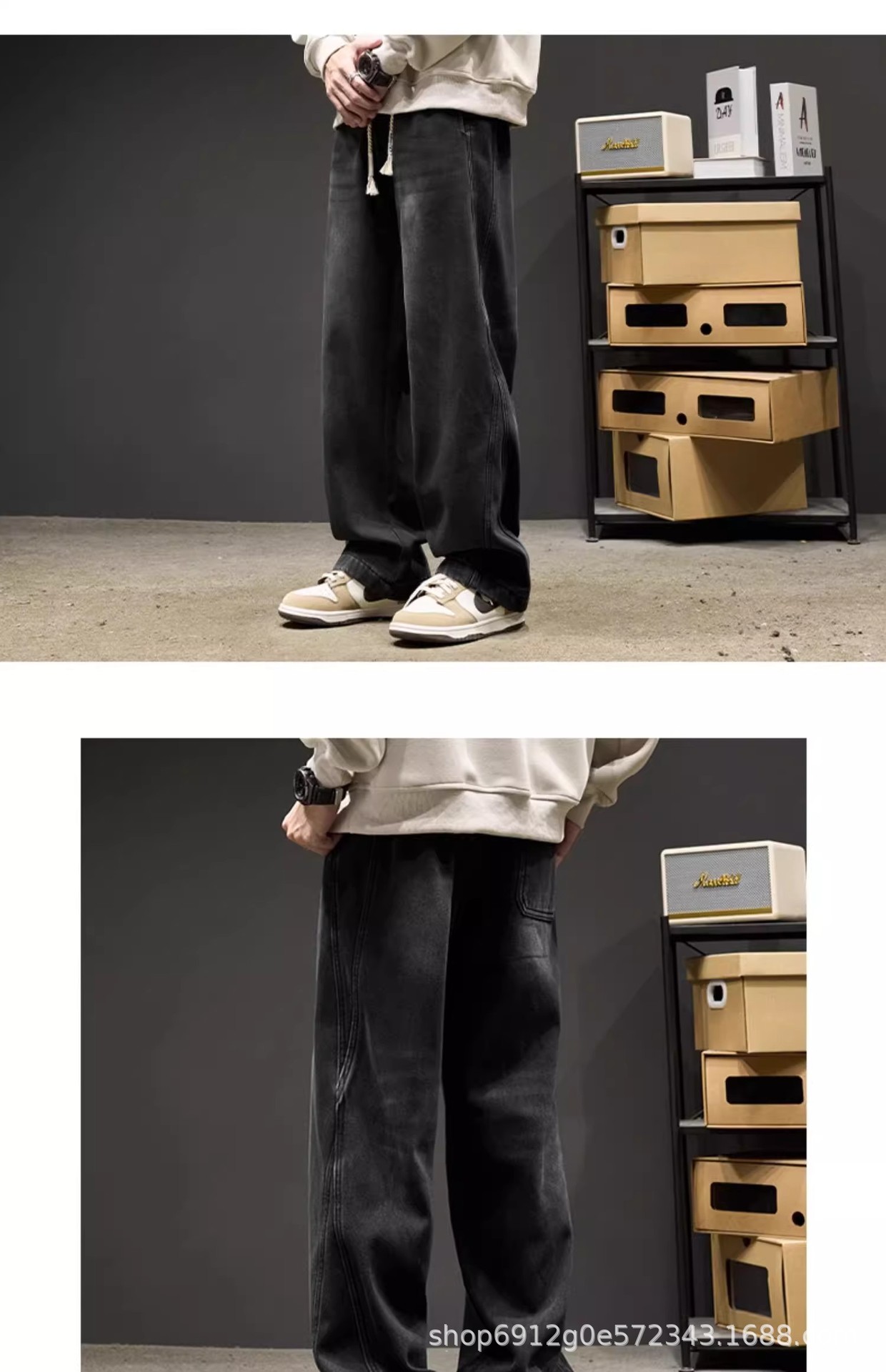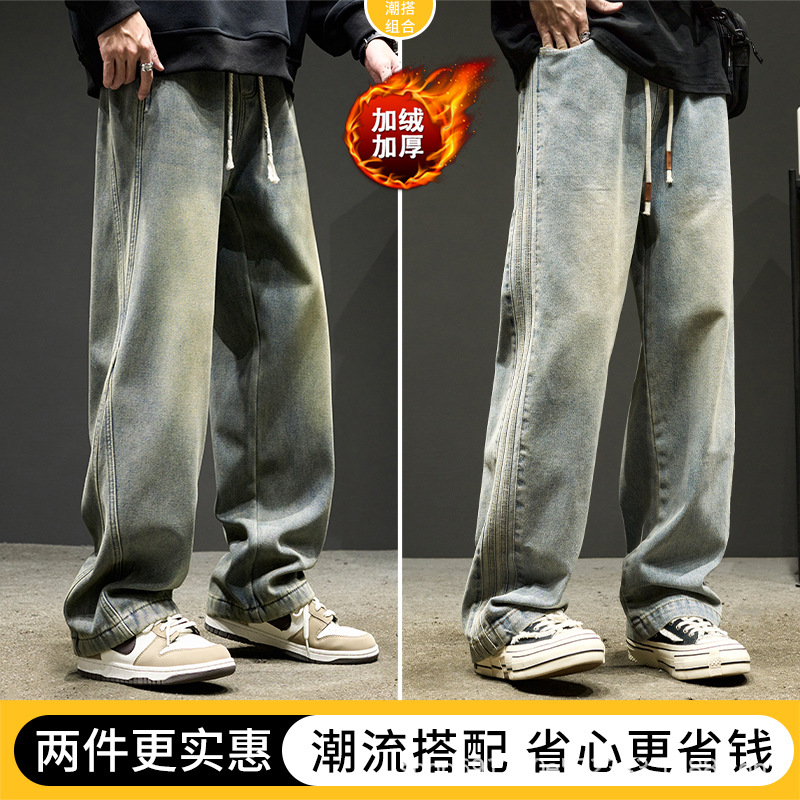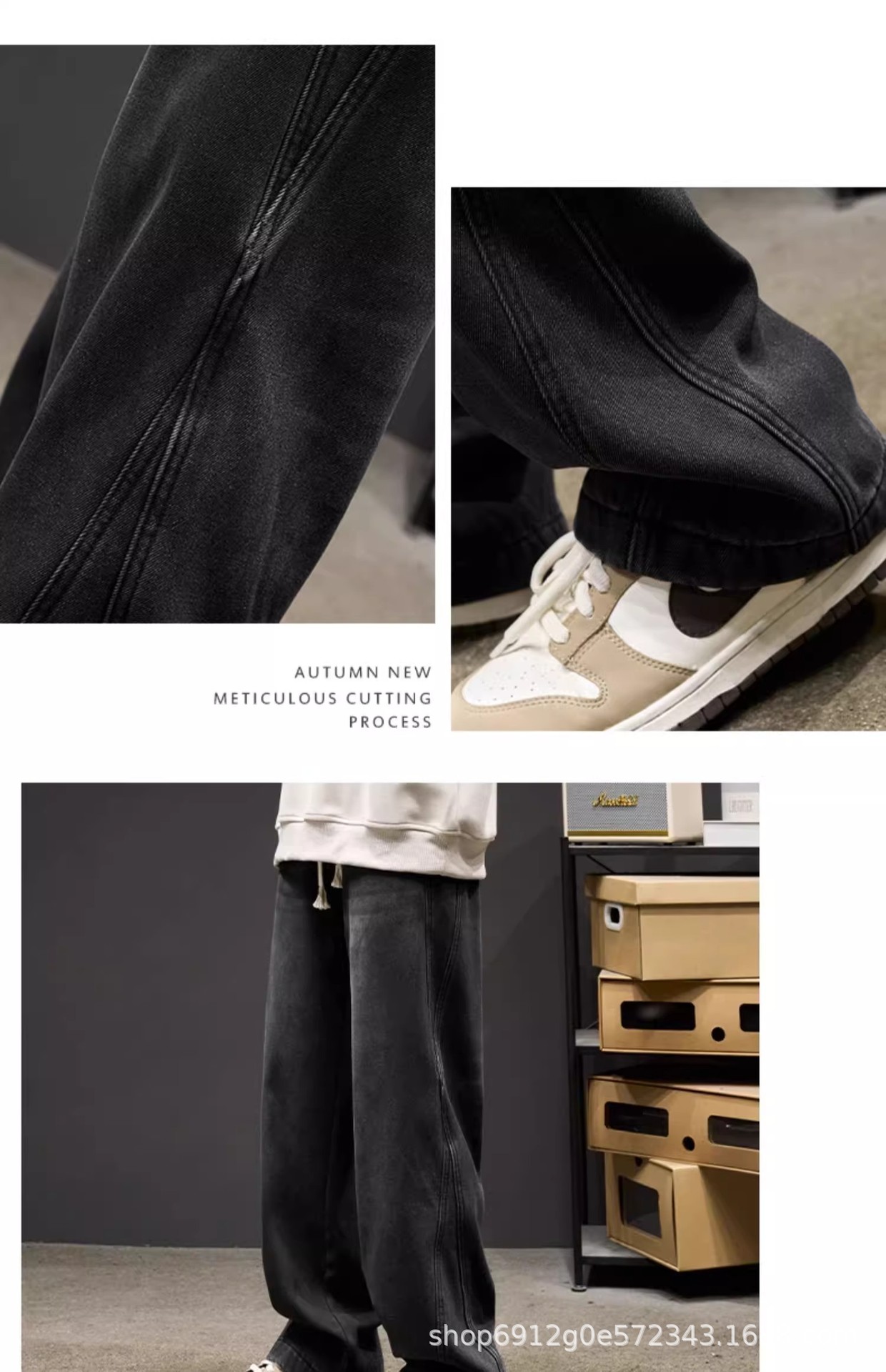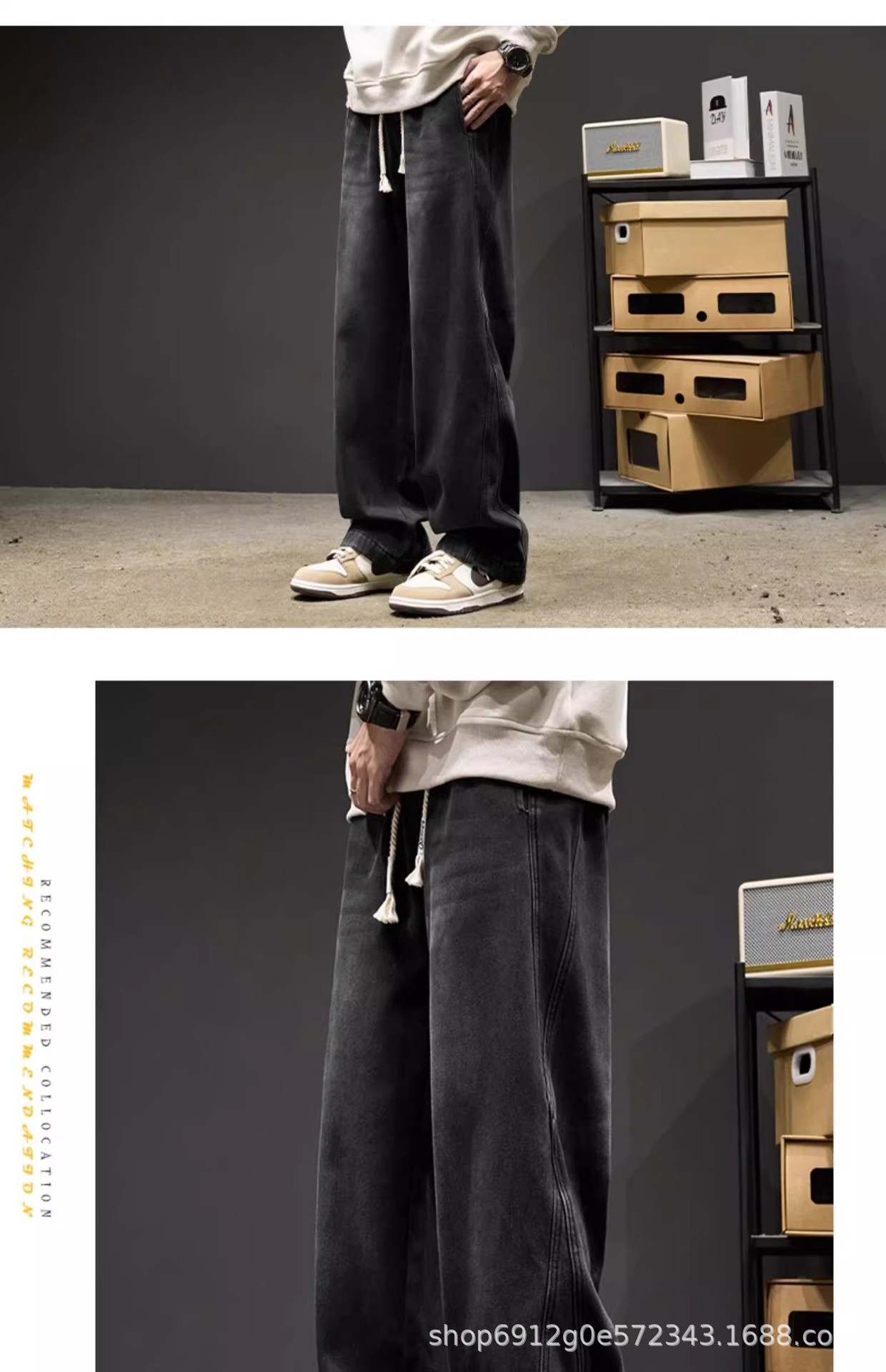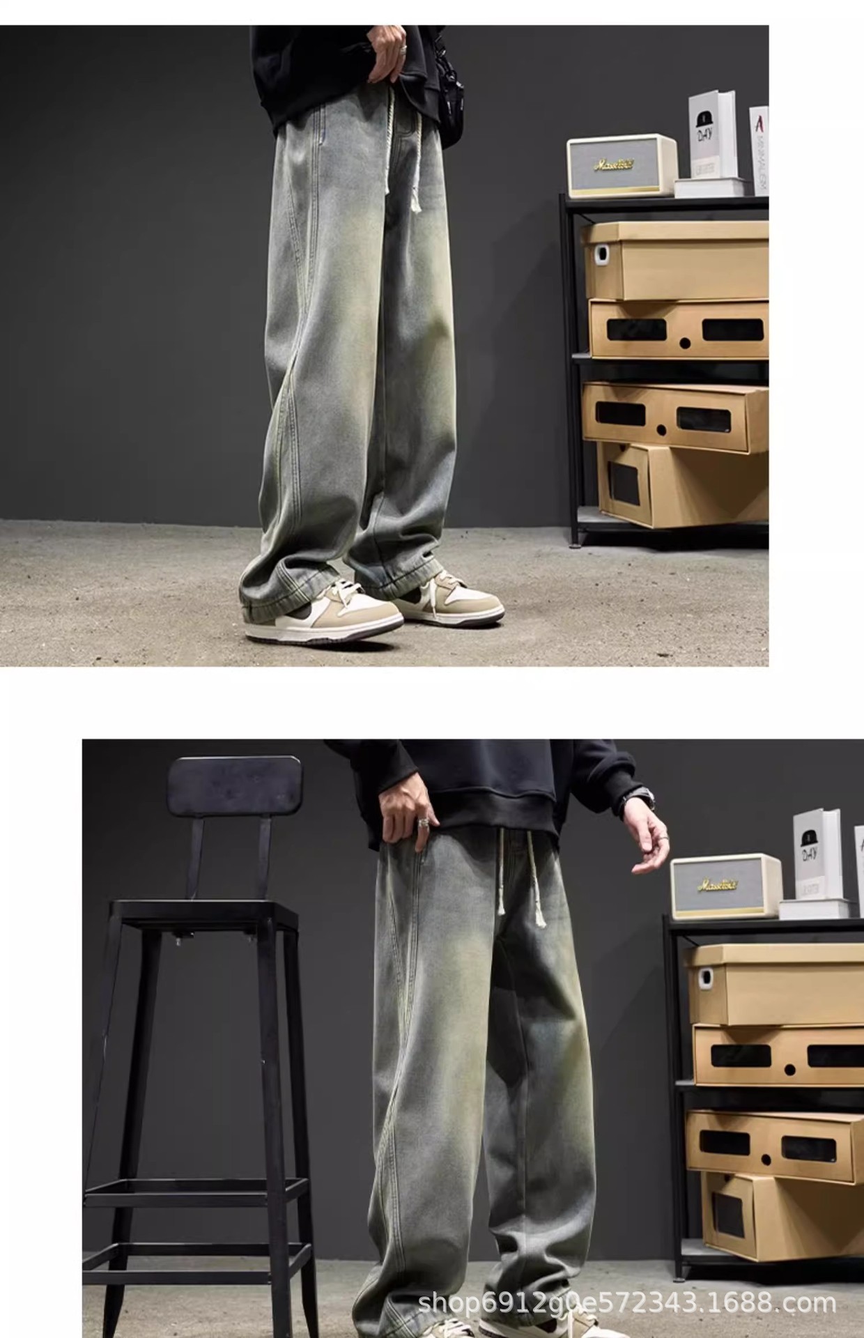 청바지 남성 2025 봄과 가을 새로운 느슨한 스트레이트 바지 미국 복고풍 바느질 유행 브랜드 바지스토어 가기