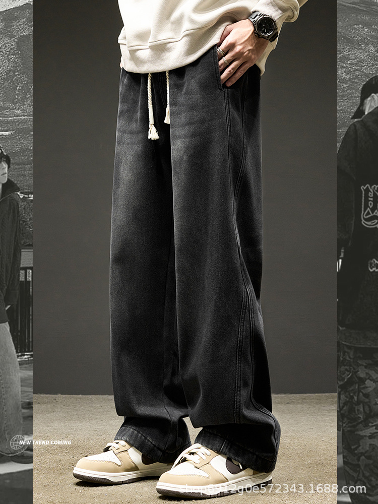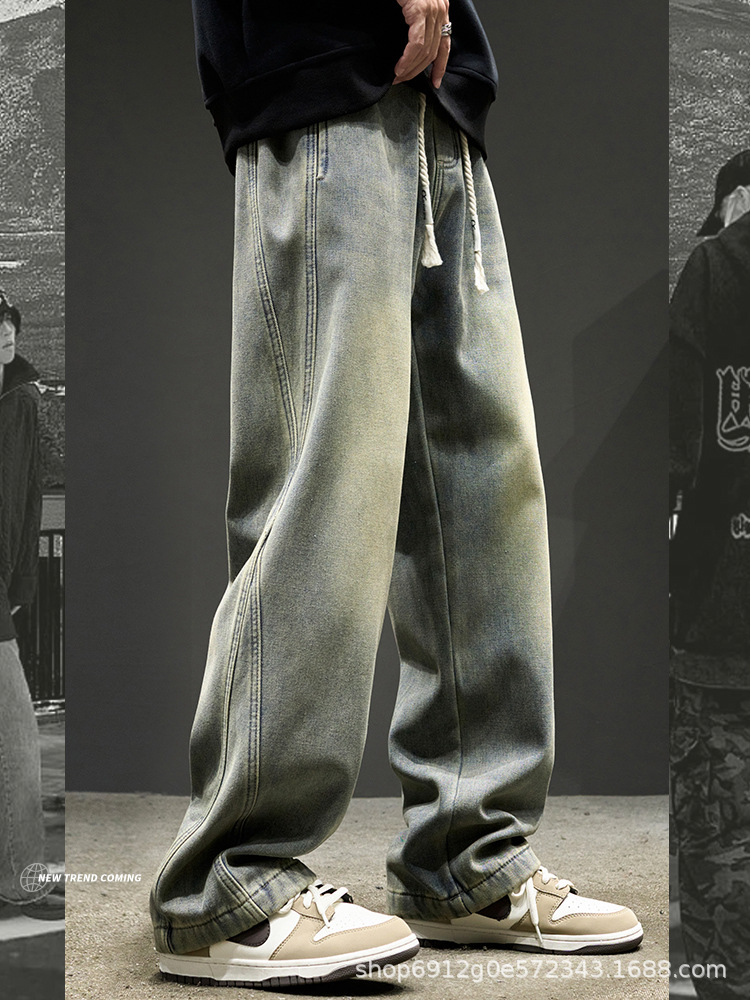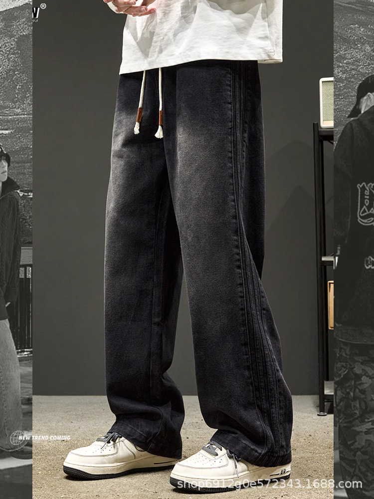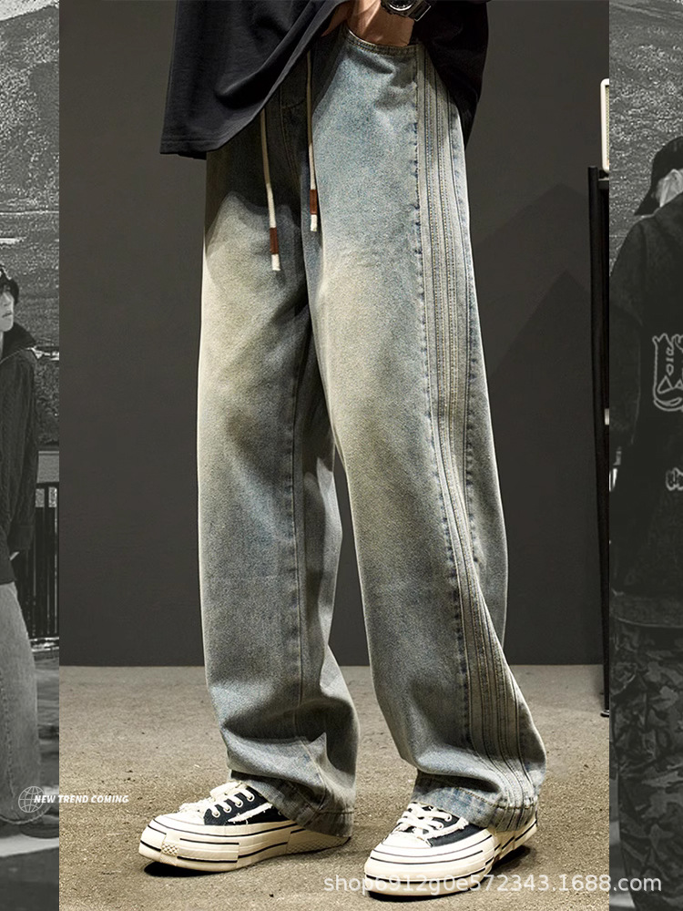 청바지 남성 2025 봄과 가을 새로운 느슨한 스트레이트 바지 미국 복고풍 바느질 유행 브랜드 바지