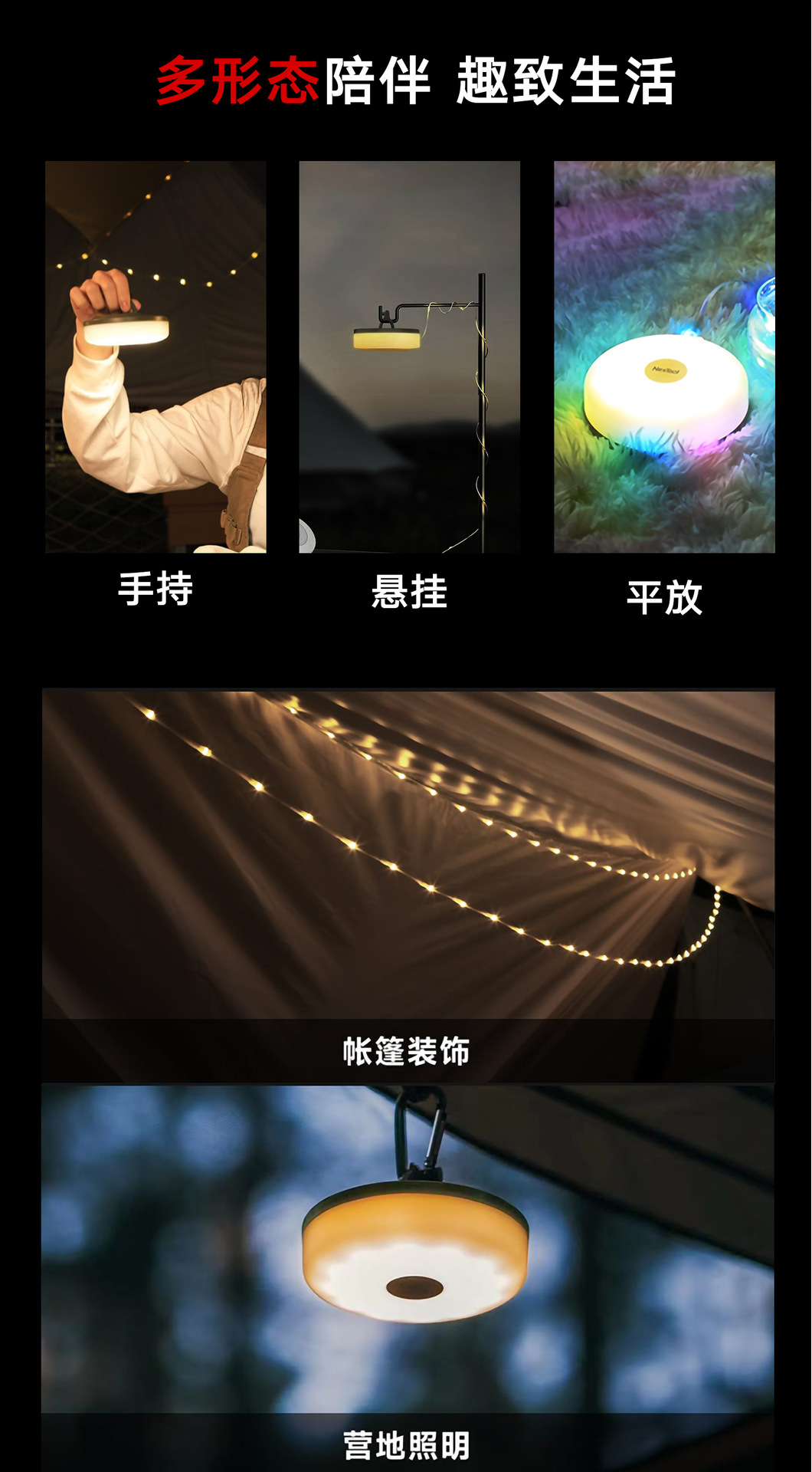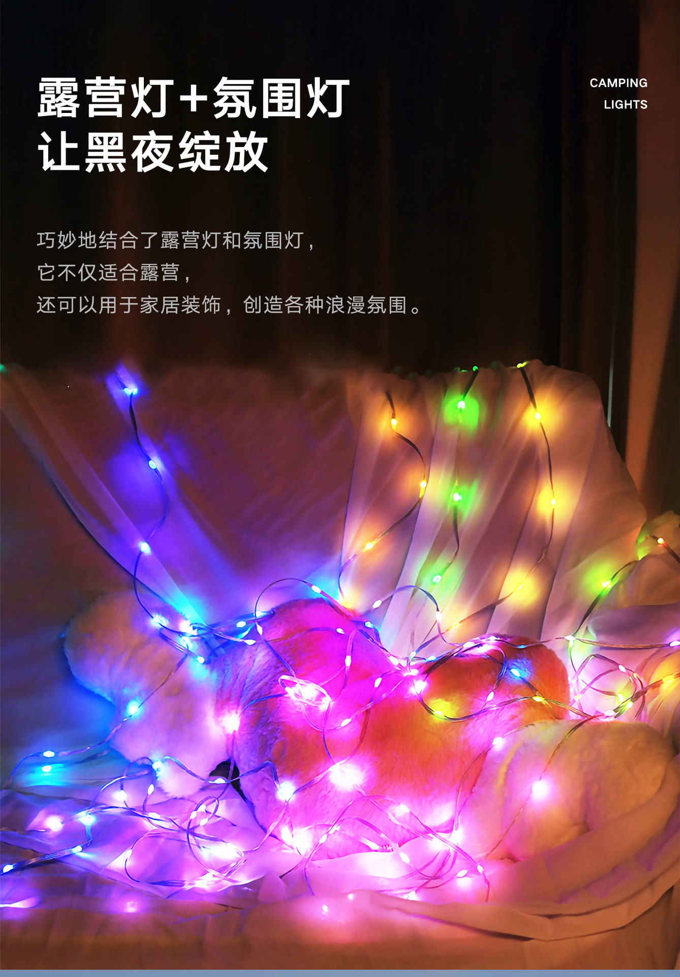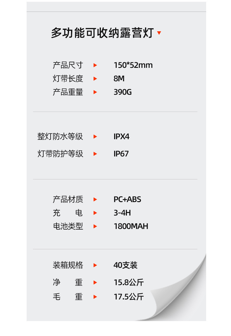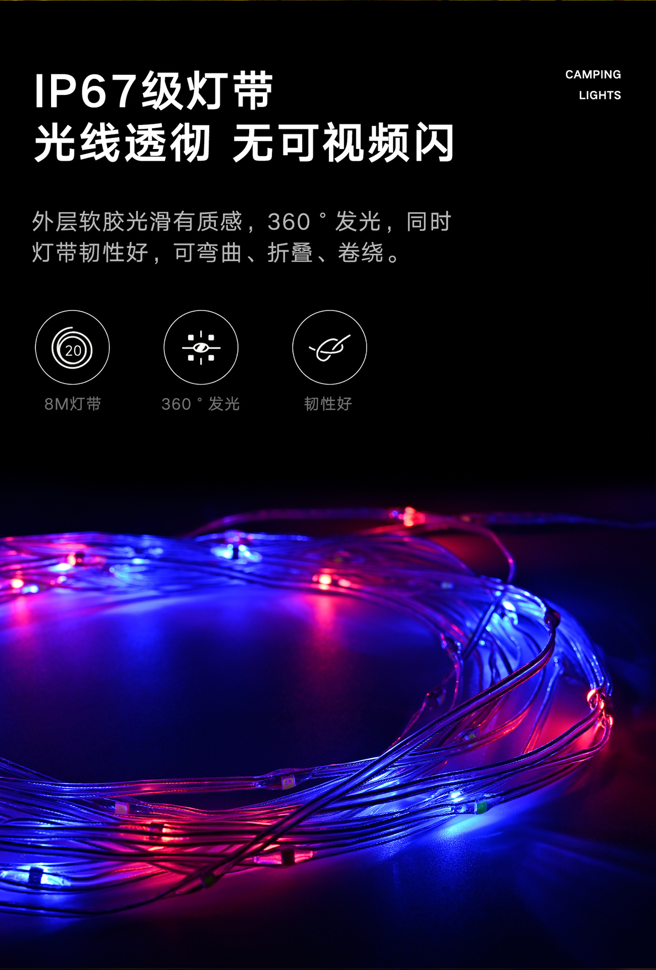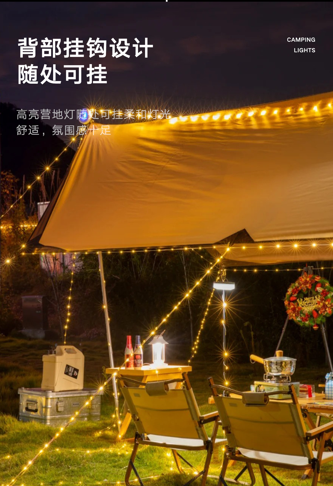 야외 캠핑 줄자등, 텐트등, 캠핑 분위기등, 방수 휴대용 수납형 조명줄, 캠프 조명, 텐트등
