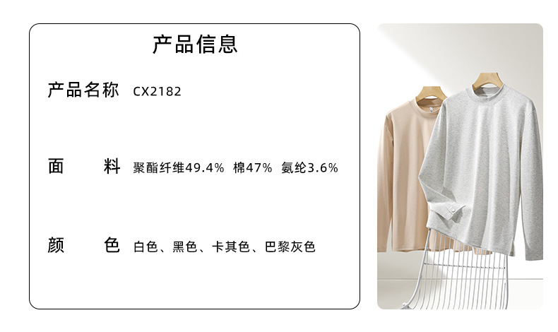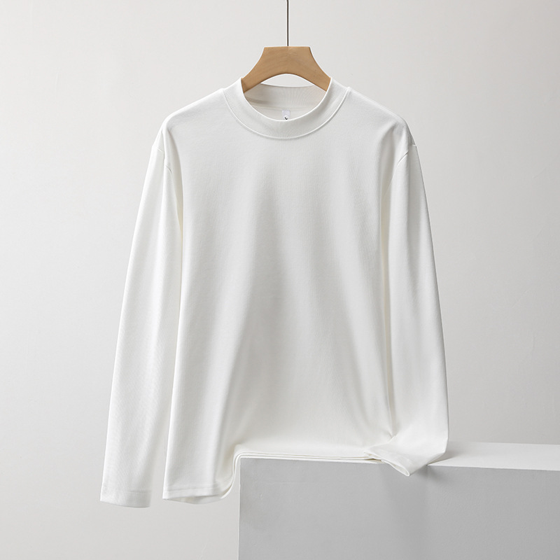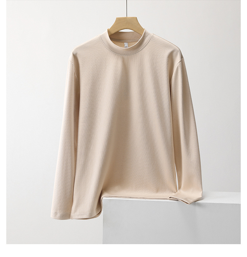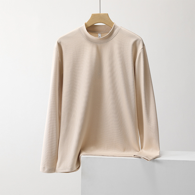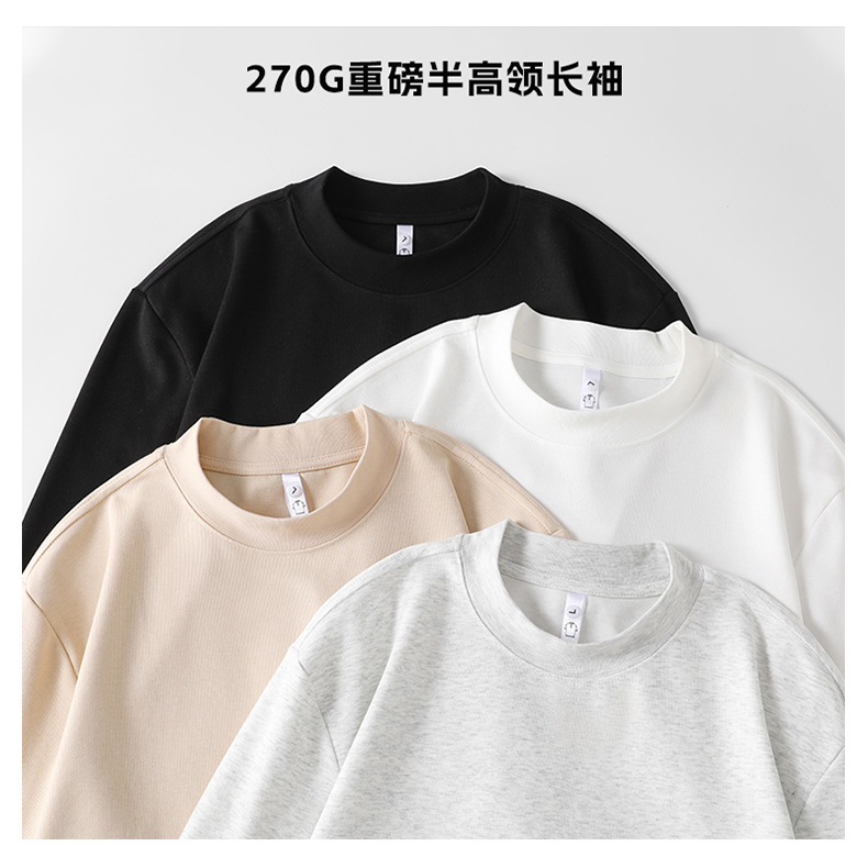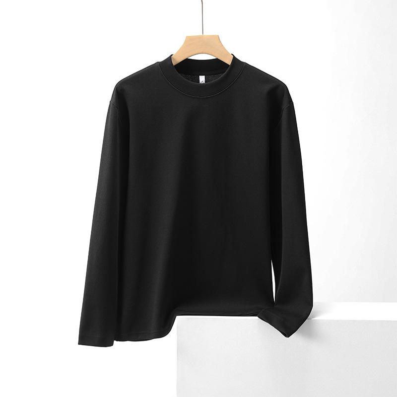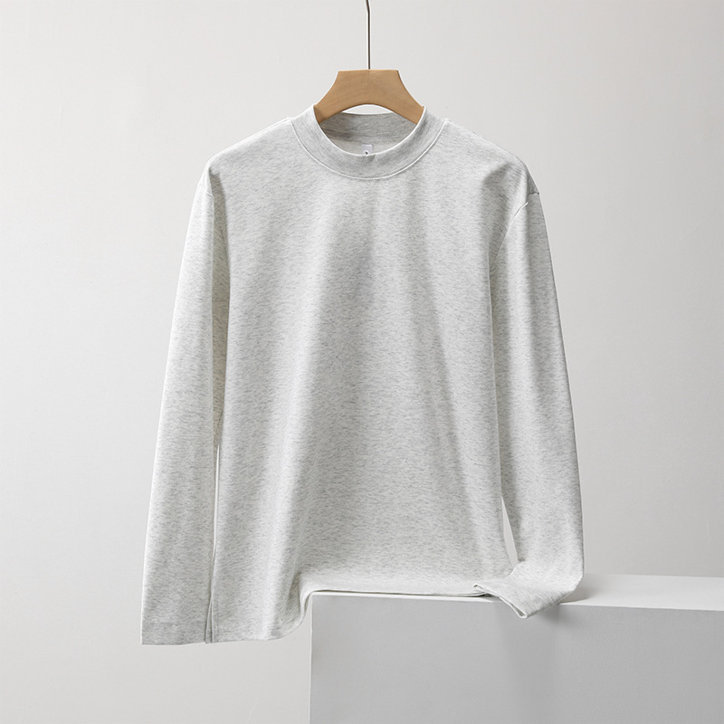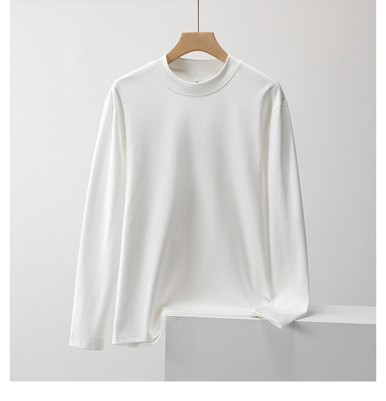 세미 하이 칼라 남성용 티셔츠 하이 센스 긴팔 헤비 270G 바닥 셔츠 크루 넥 티셔츠 남성용 작은 목선