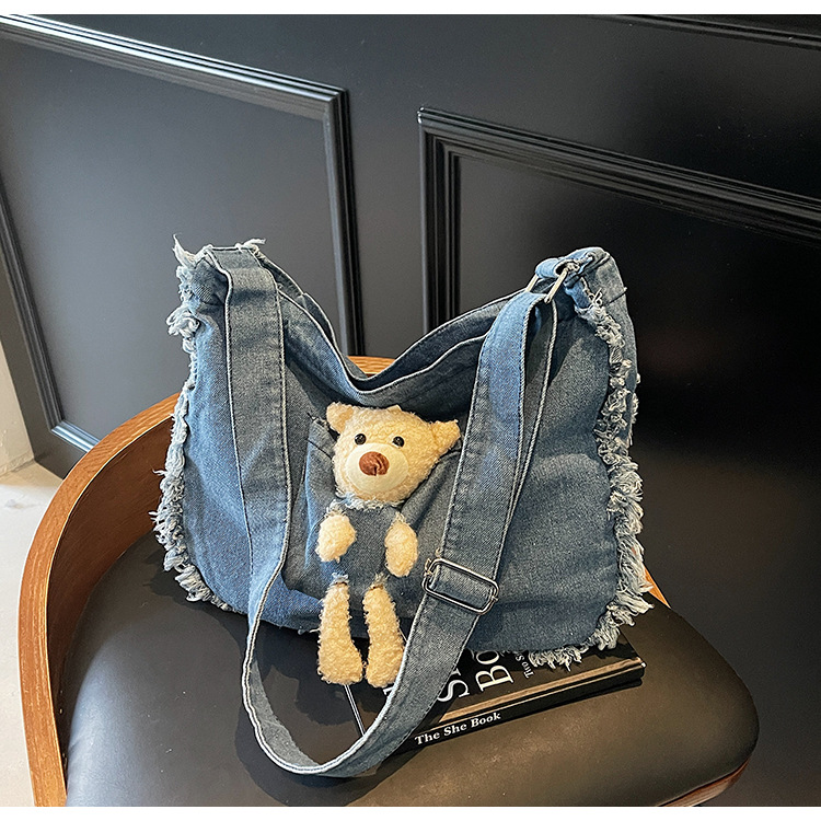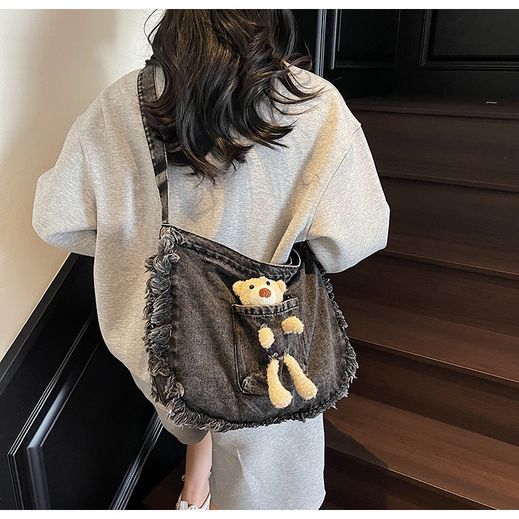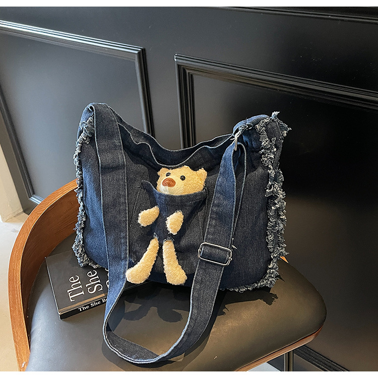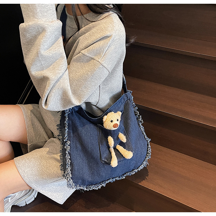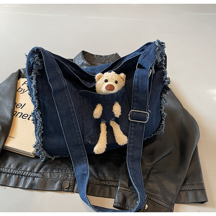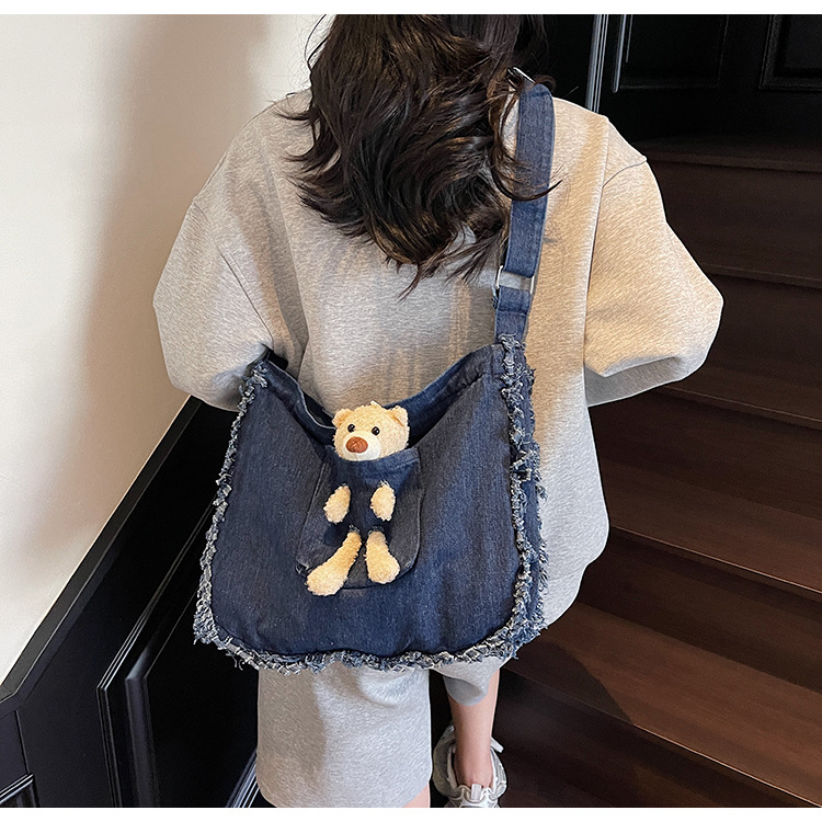 한국 스타일 귀여운 데님 곰 가방 여성의 2025 새로운 만화 어깨 가방 캐주얼 학생 크로스 바디 가방 휴대용