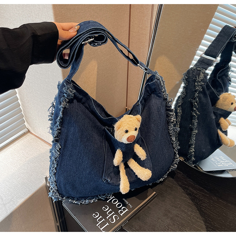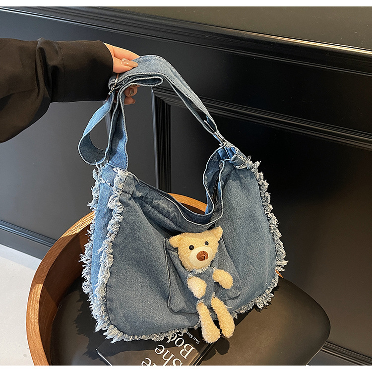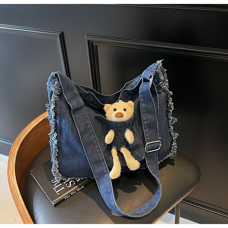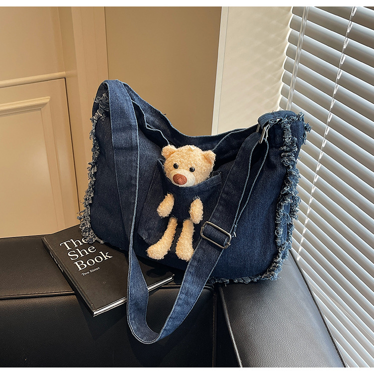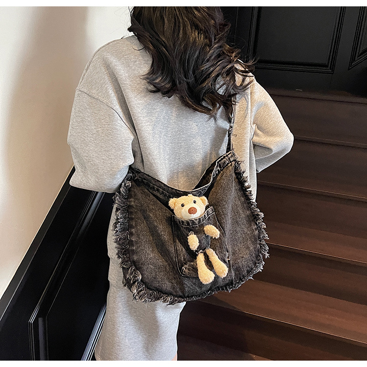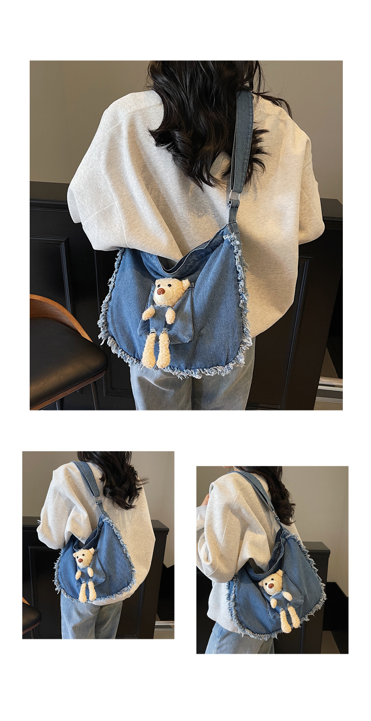 한국 스타일 귀여운 데님 곰 가방 여성의 2025 새로운 만화 어깨 가방 캐주얼 학생 크로스 바디 가방 휴대용
