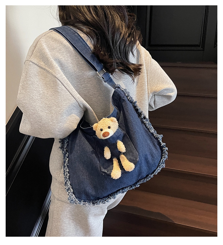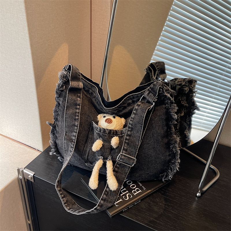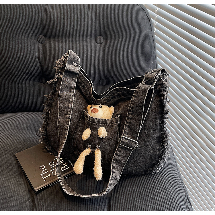 한국 스타일 귀여운 데님 곰 가방 여성의 2025 새로운 만화 어깨 가방 캐주얼 학생 크로스 바디 가방 휴대용스토어 가기