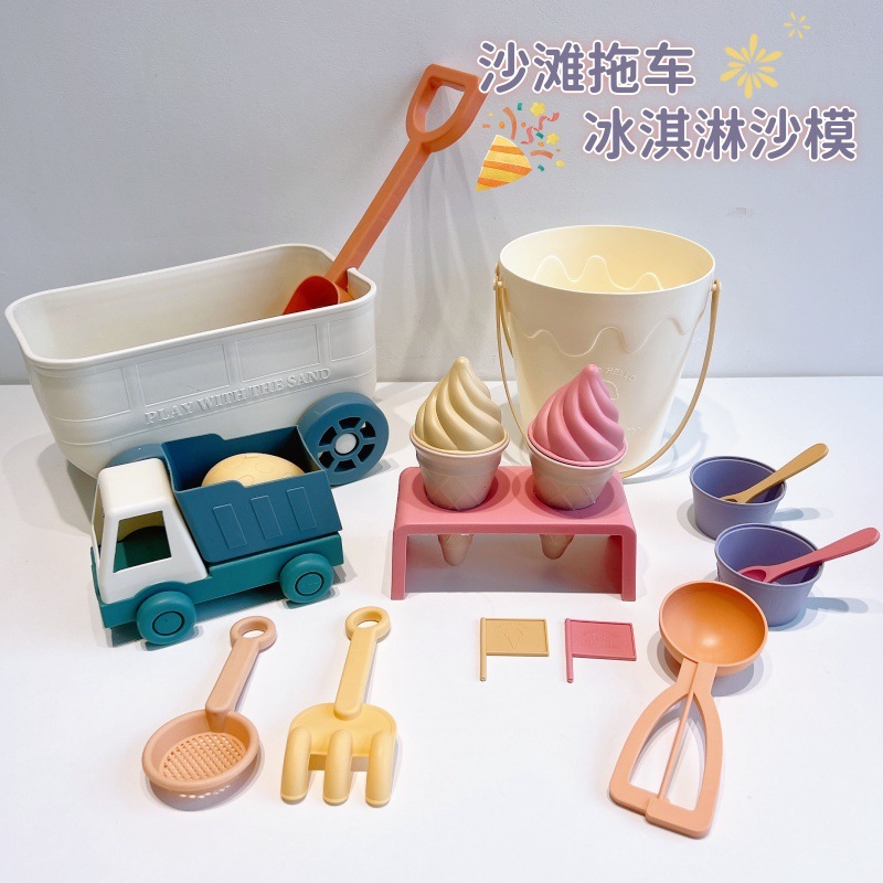 어린이 해변 오후 차 모래 파고 물 작은 트레일러 놀이 홈 아이스크림 케이크 모래 모델 시뮬레이션 장난감스토어 가기