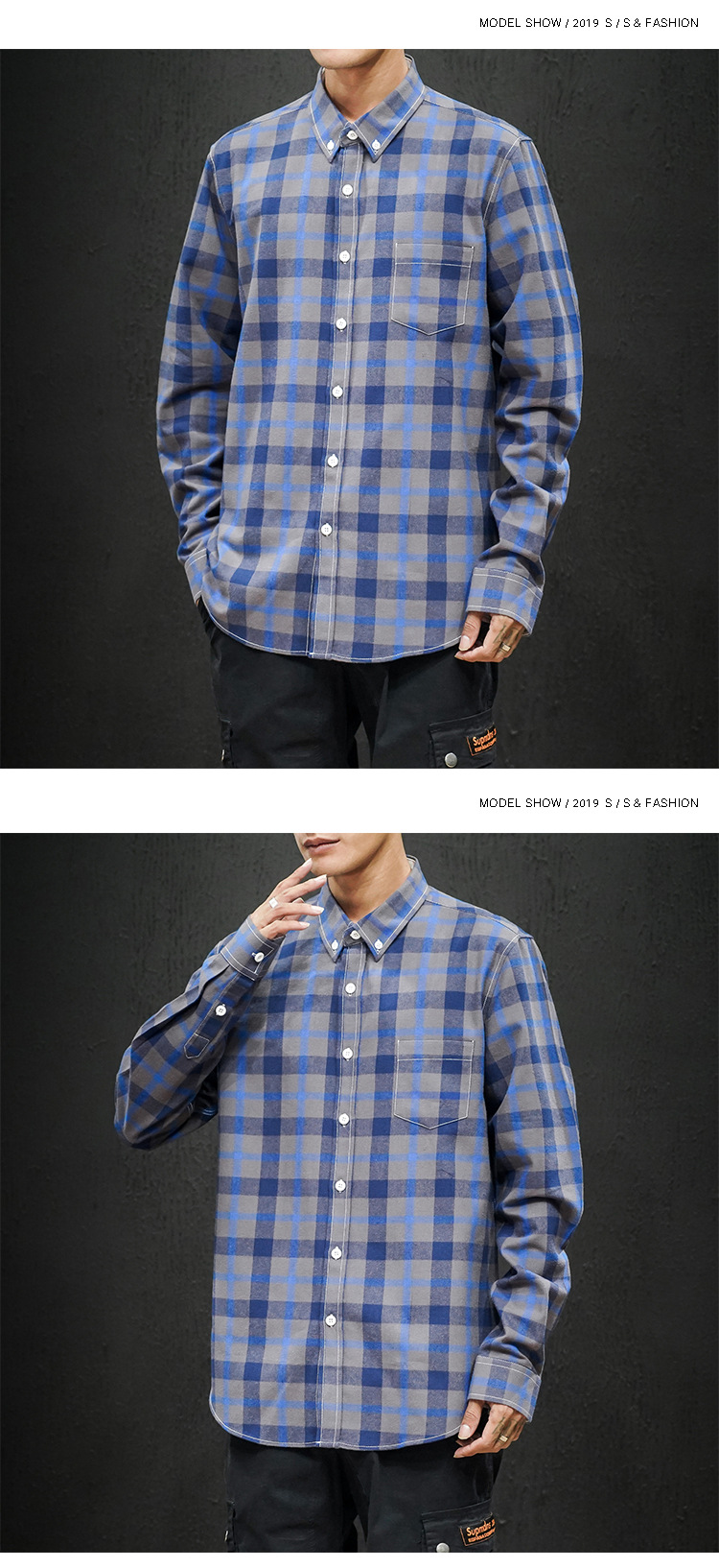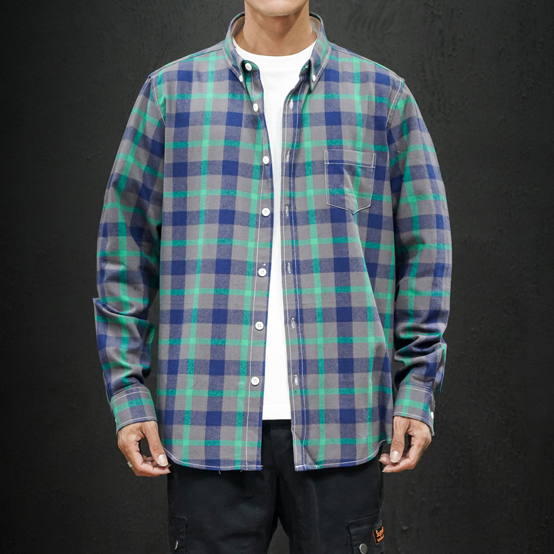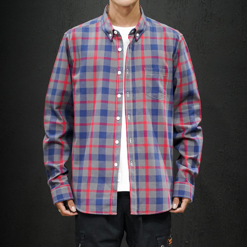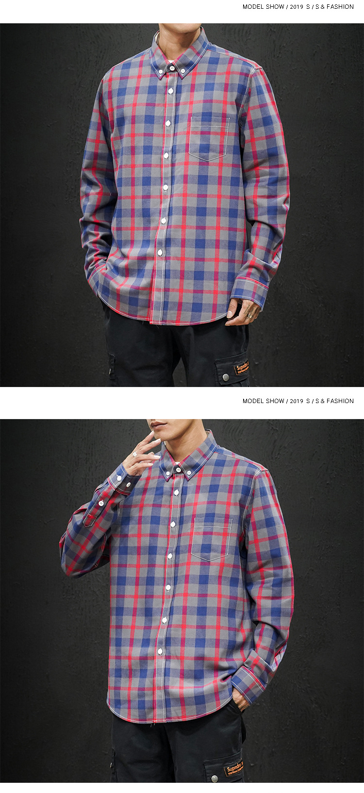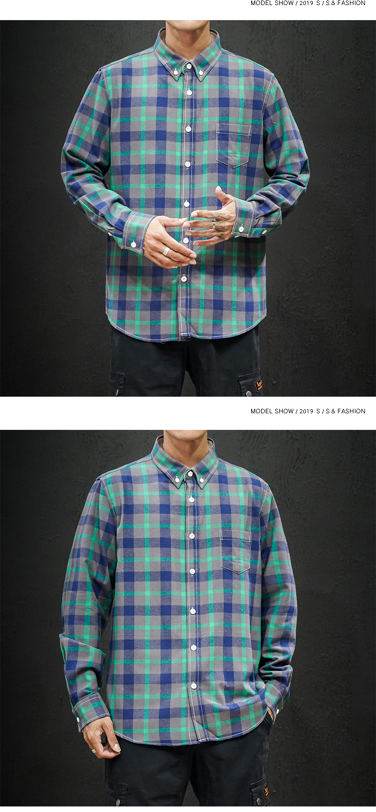 남성 조수 캐주얼 4 색 격자 무늬 셔츠 긴 소매 셔츠 세대 대외 무역 CS32-P20스토어 가기