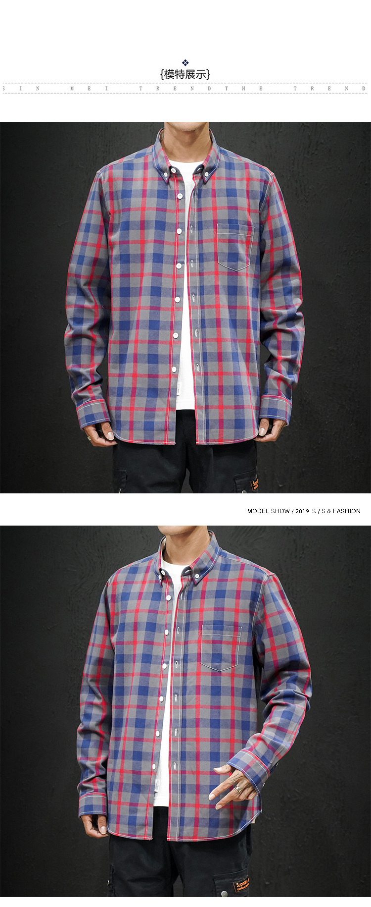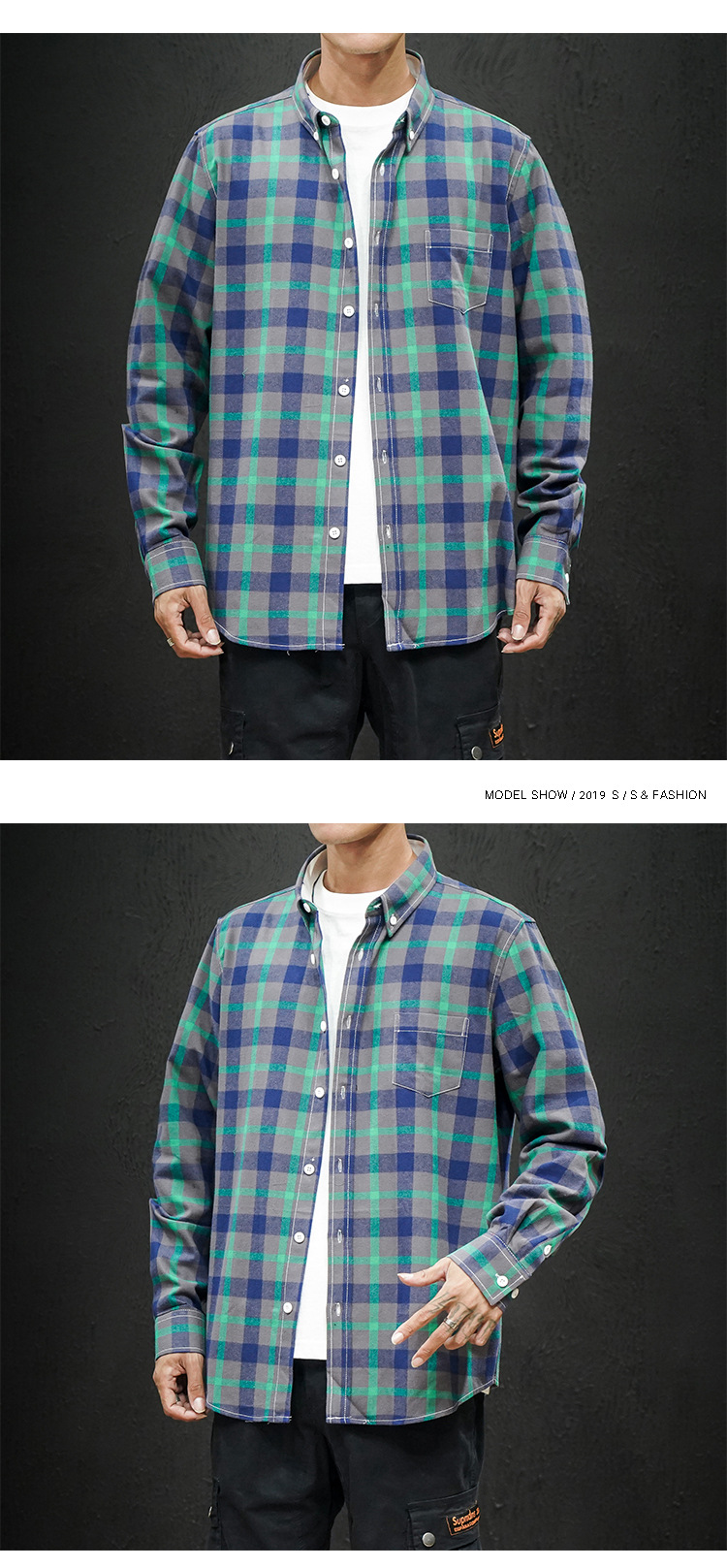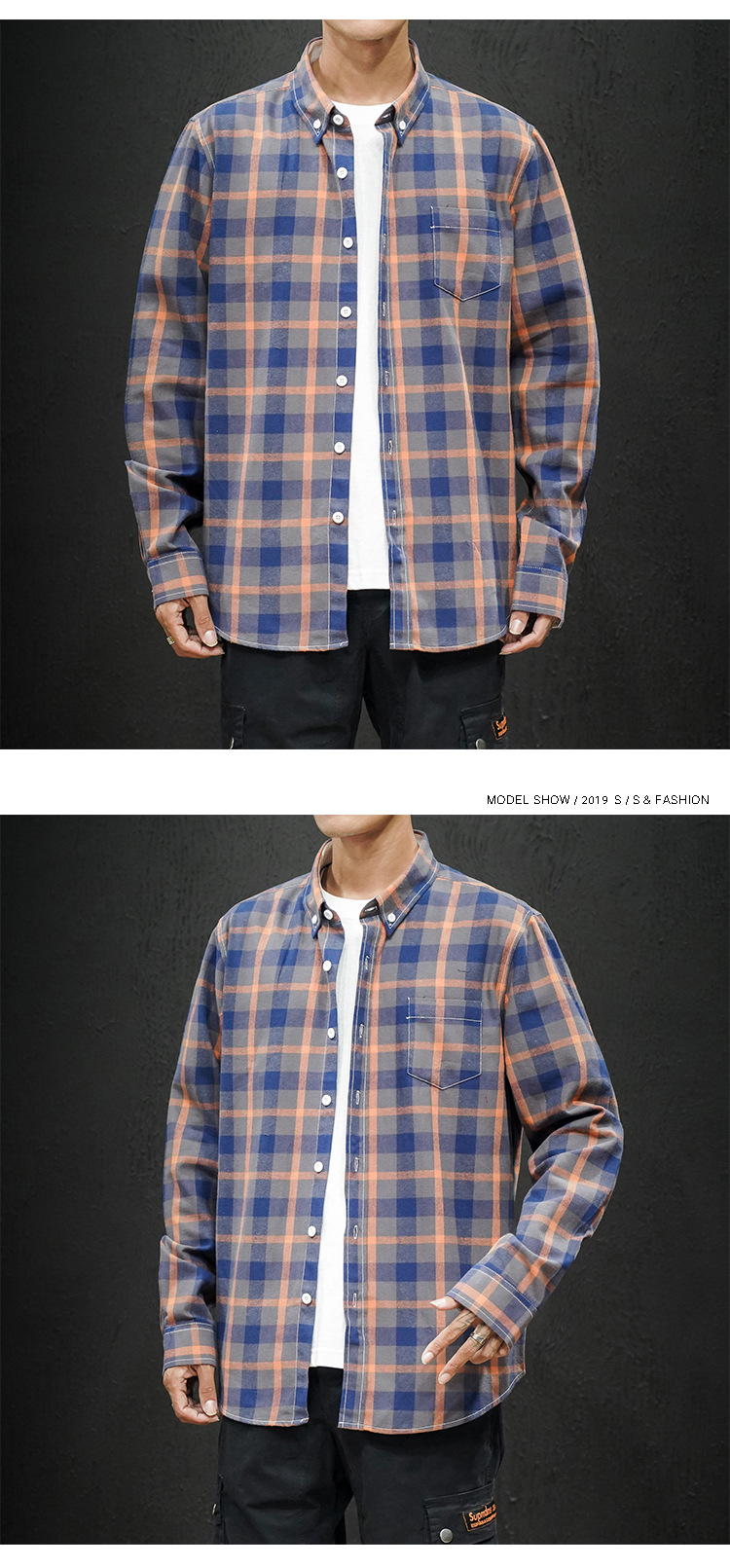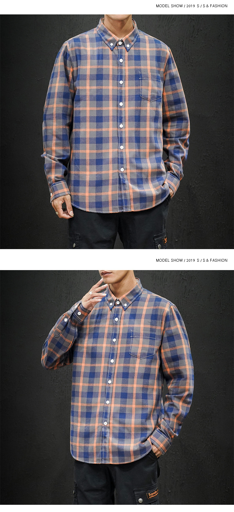 남성 조수 캐주얼 4 색 격자 무늬 셔츠 긴 소매 셔츠 세대 대외 무역 CS32-P20스토어 가기