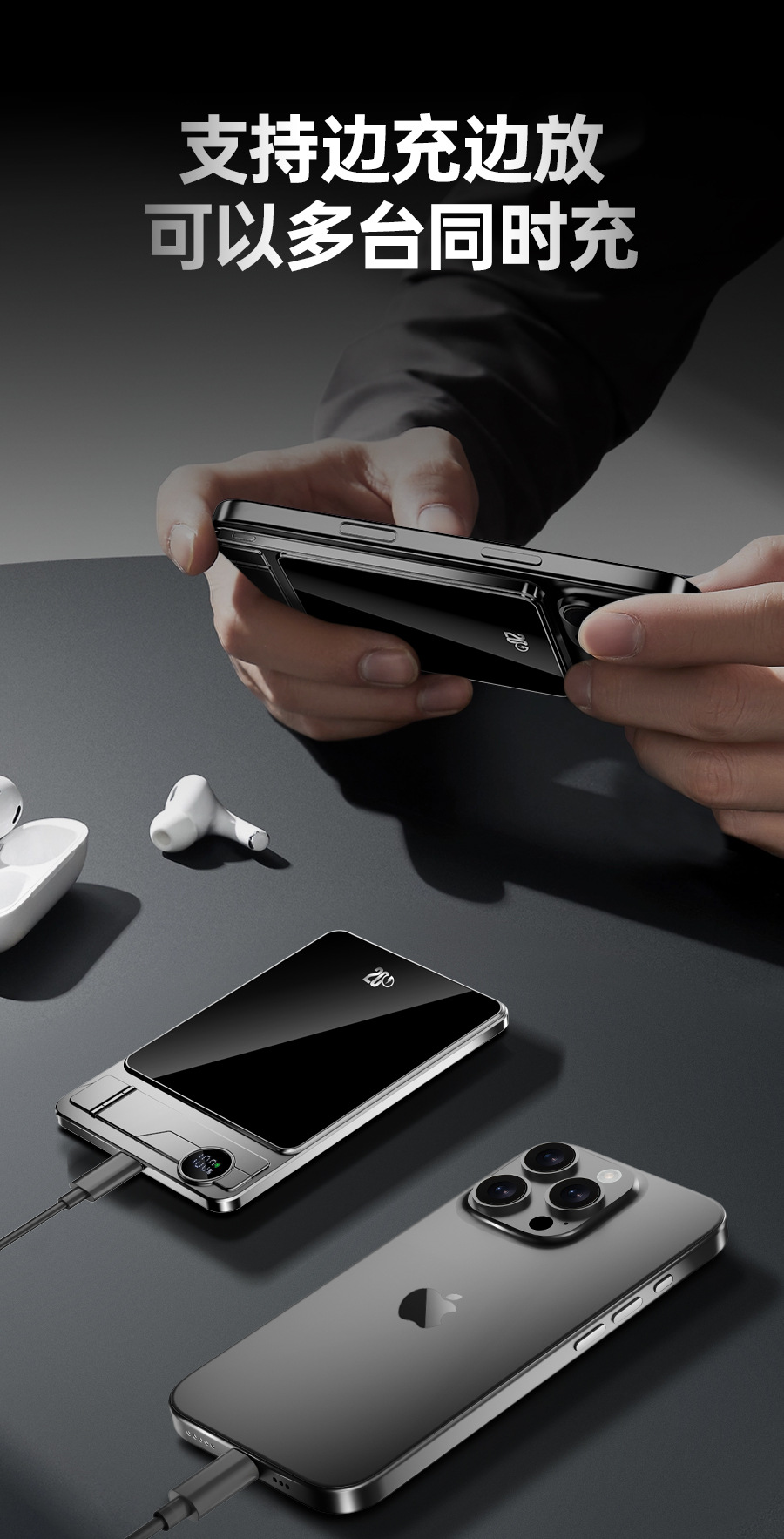 브래킷 외부 배터리 QI2 무선 자기 충전 보물 초박형 모바일 전원 더블 팝업 창을 갖춘 새로운 MagSafe