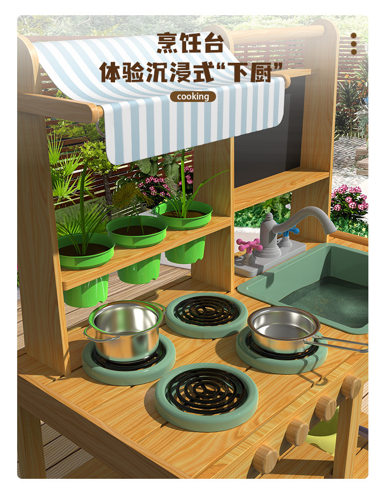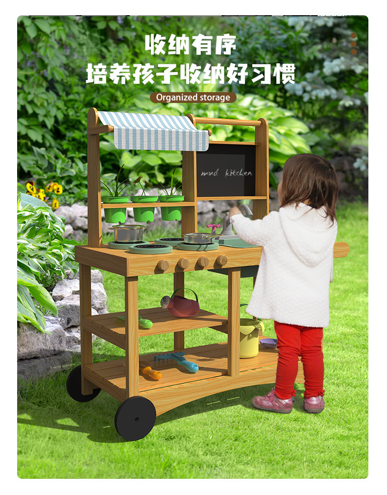 야외 단단한 나무 도구 부스 어린이 모래 테이블 메이슨 손으로 시뮬레이션 된 야외 진흙 주방스토어 가기
