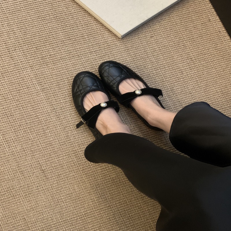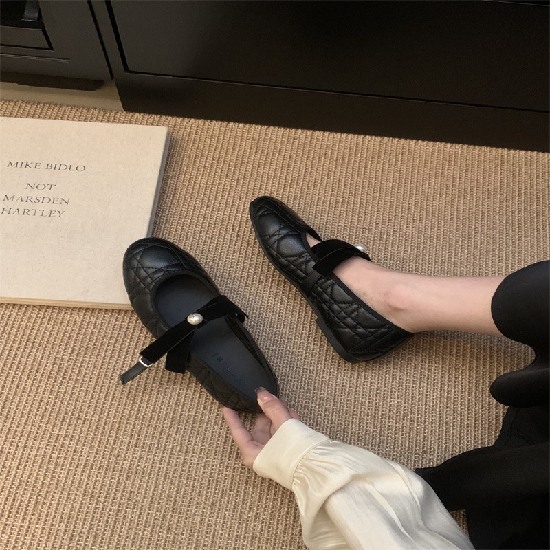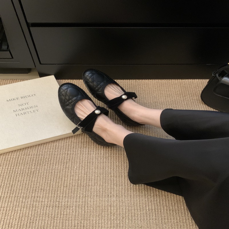 페어리 스타일 2025 봄 새로운 메리 제인 신발 얕은 입 플랫 신발 마름모 라운드 토 발레 신발 밀크 신발스토어 가기