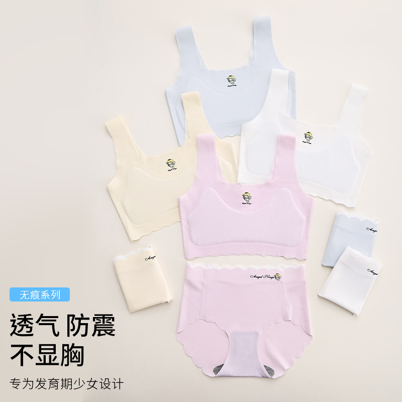 여학생을위한 발달 작은 조끼 속옷 큰 아이들 여자 초등학교 중학교 학생 추적없는 여자 얇은 브래지어 세트스토어 가기