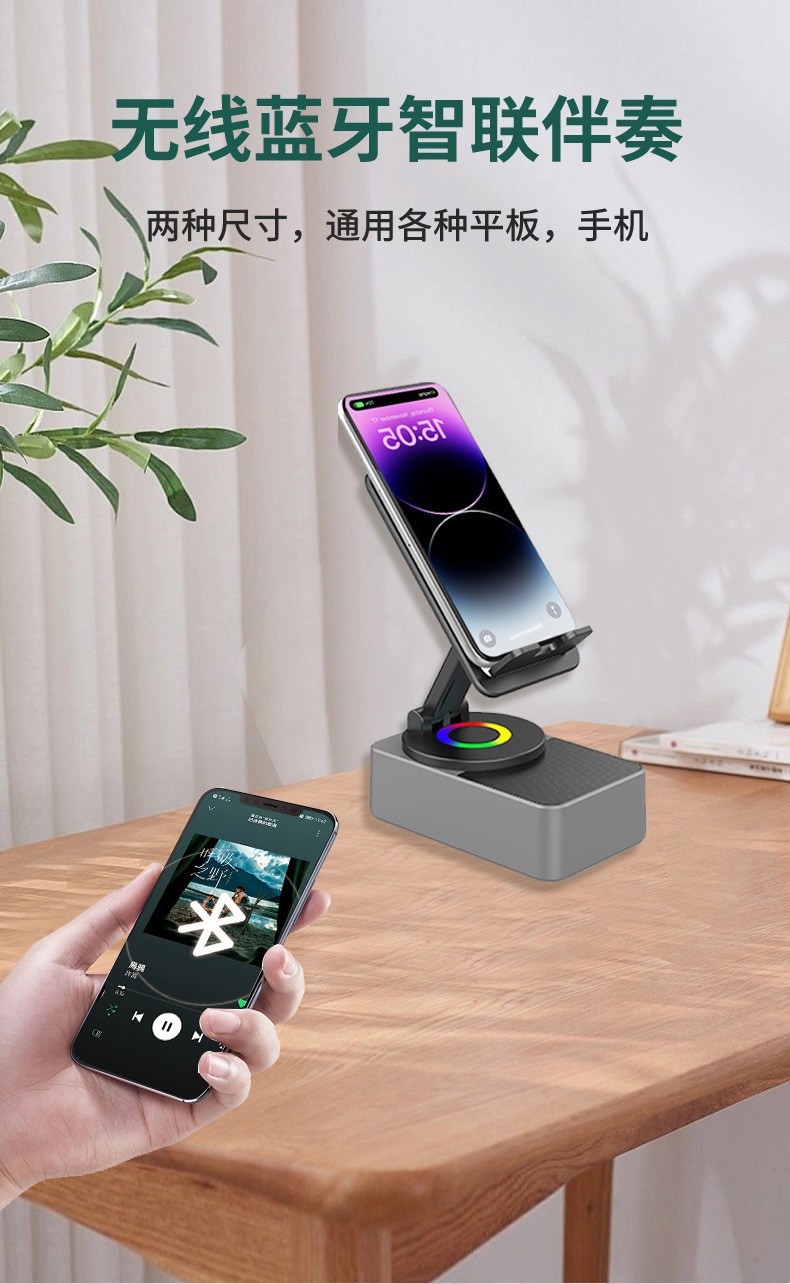 3 대 1 휴대 전화 스탠드 높은 가치의 블루투스 작은 스피커 회전 및 접이식 조명 데스크탑 다기능 오디오